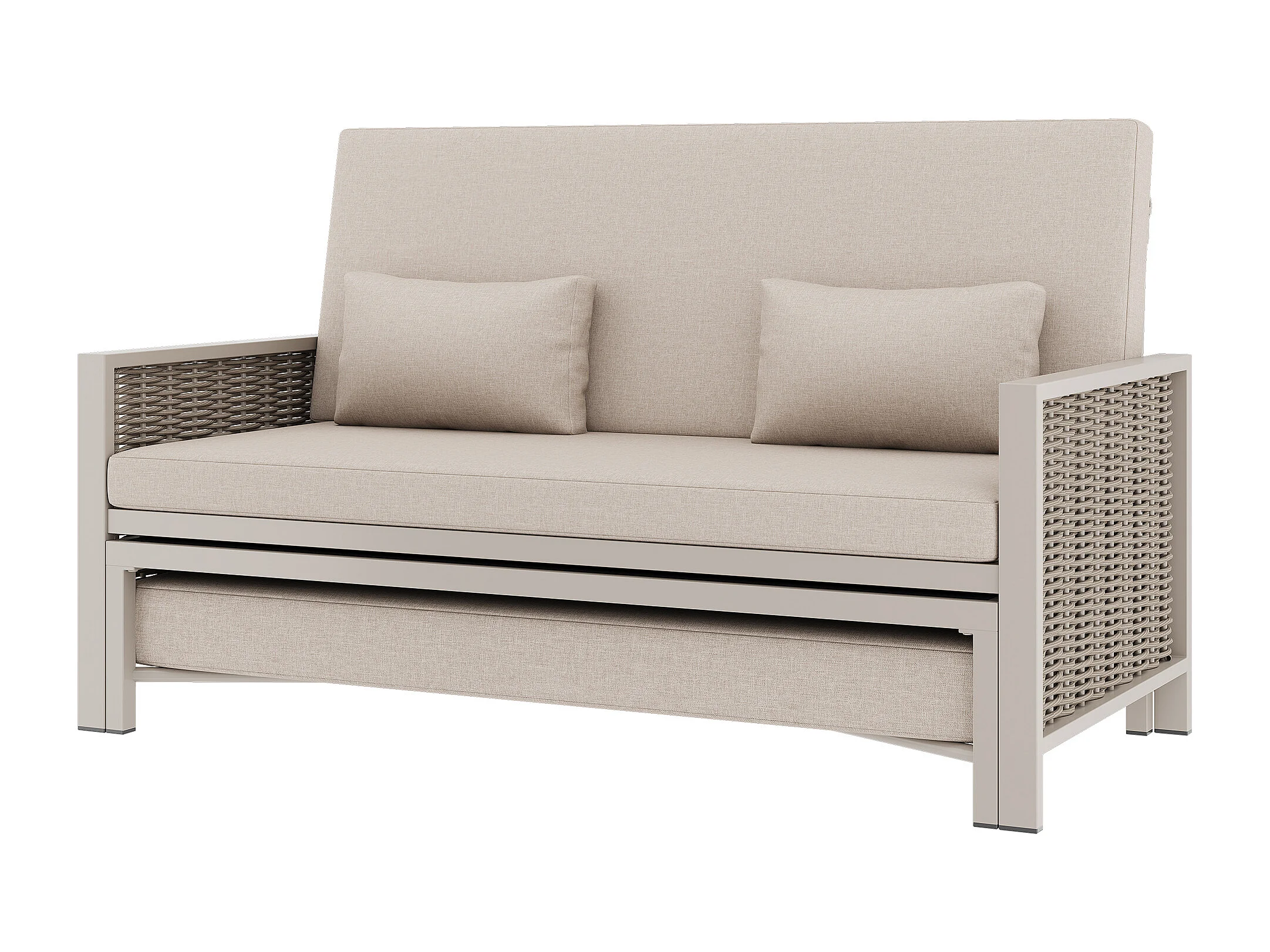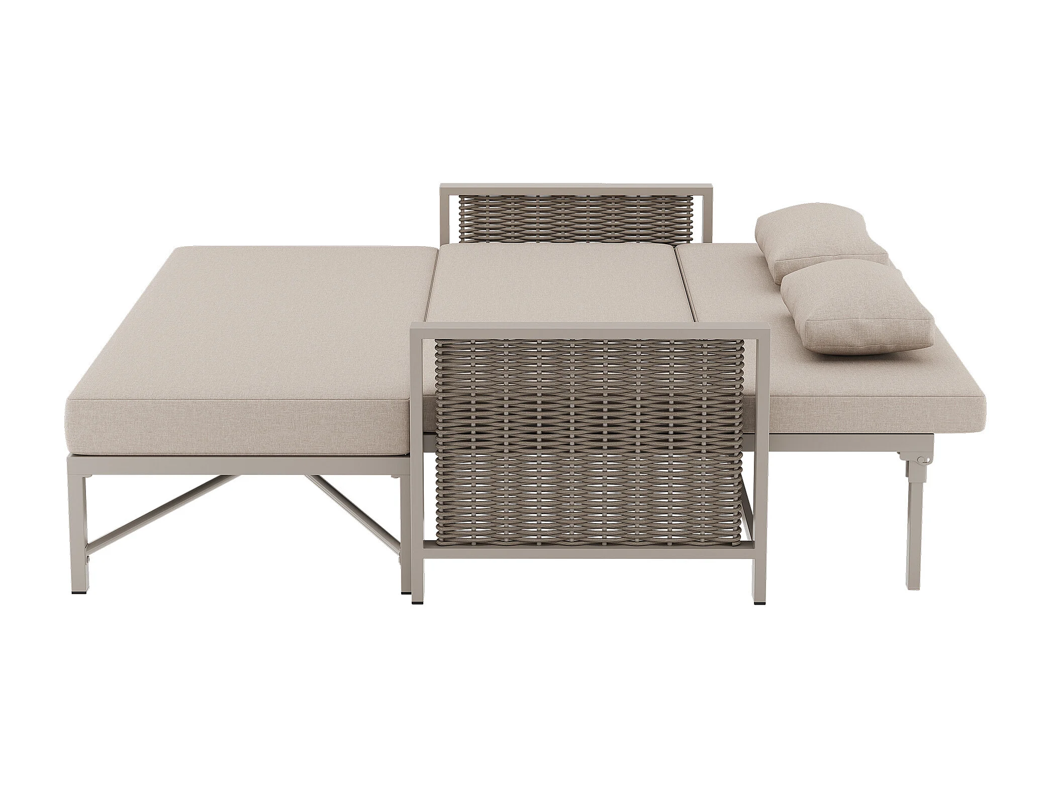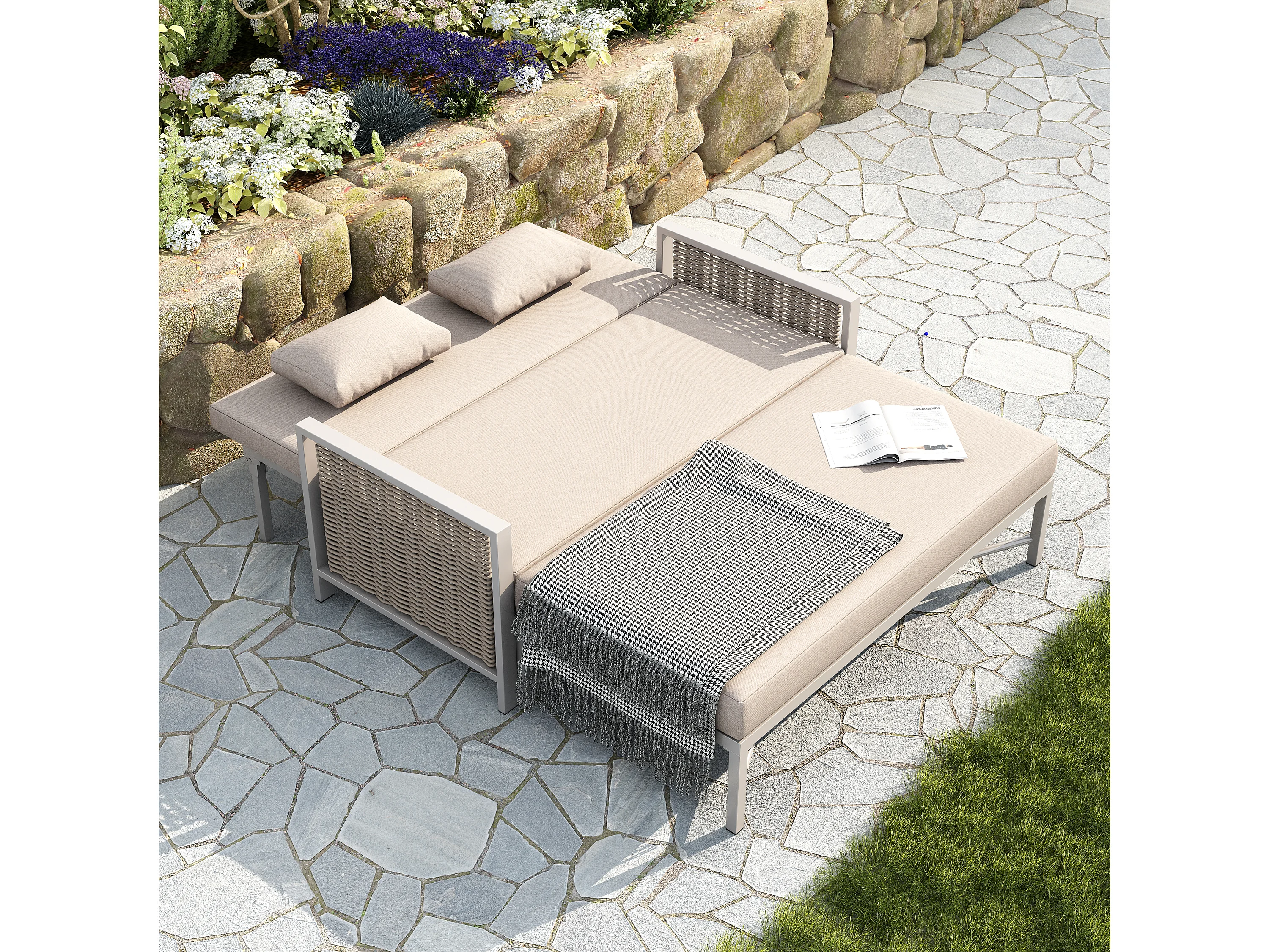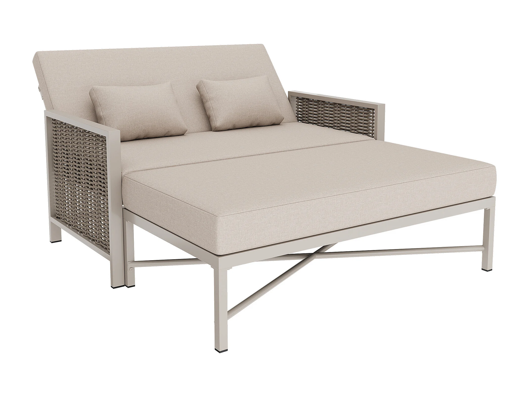 Leżak, kanapa ogrodowa - ze stali ocynkowanej i plecionej liny - 2 miejsca - Khaki