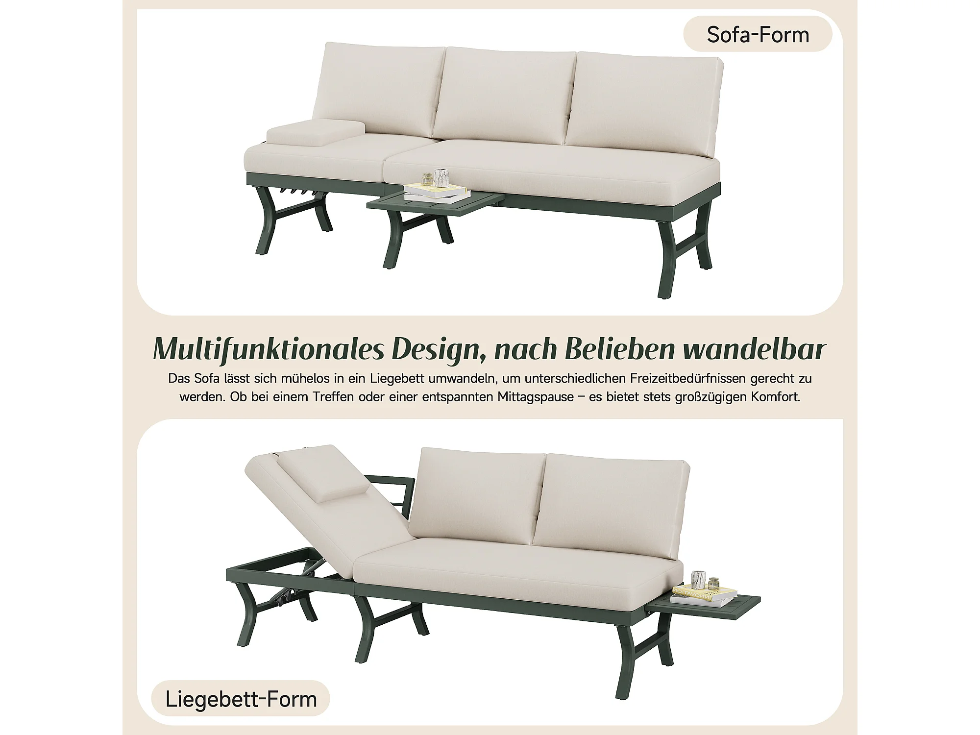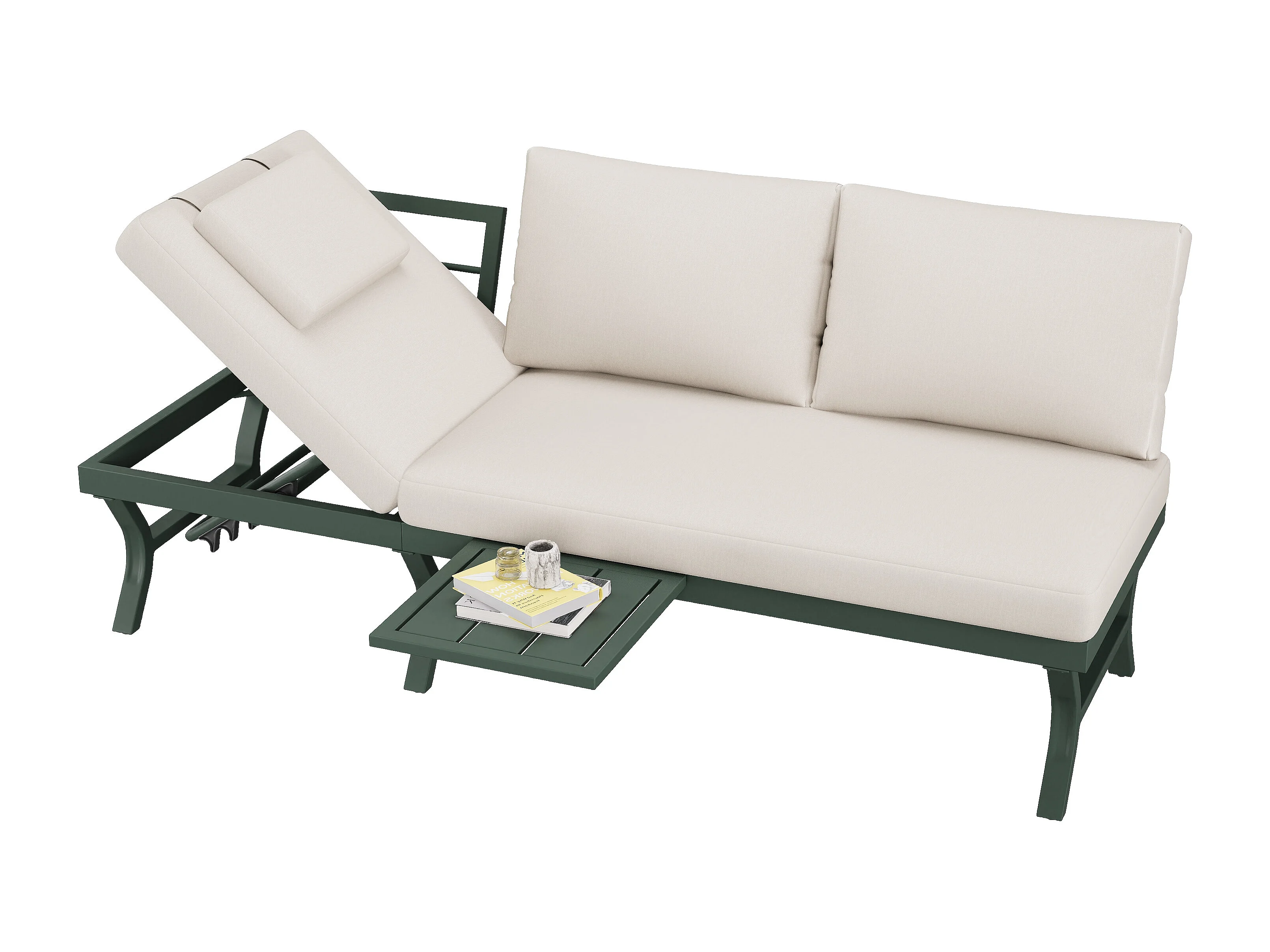 Salon Ogrodowy Narożny z Akacji - Kanapa ze Stolikiem Kawowym - Ręcznie Pleciony Sznur - Poduszki Odporny na Wilgoć - Zielony
