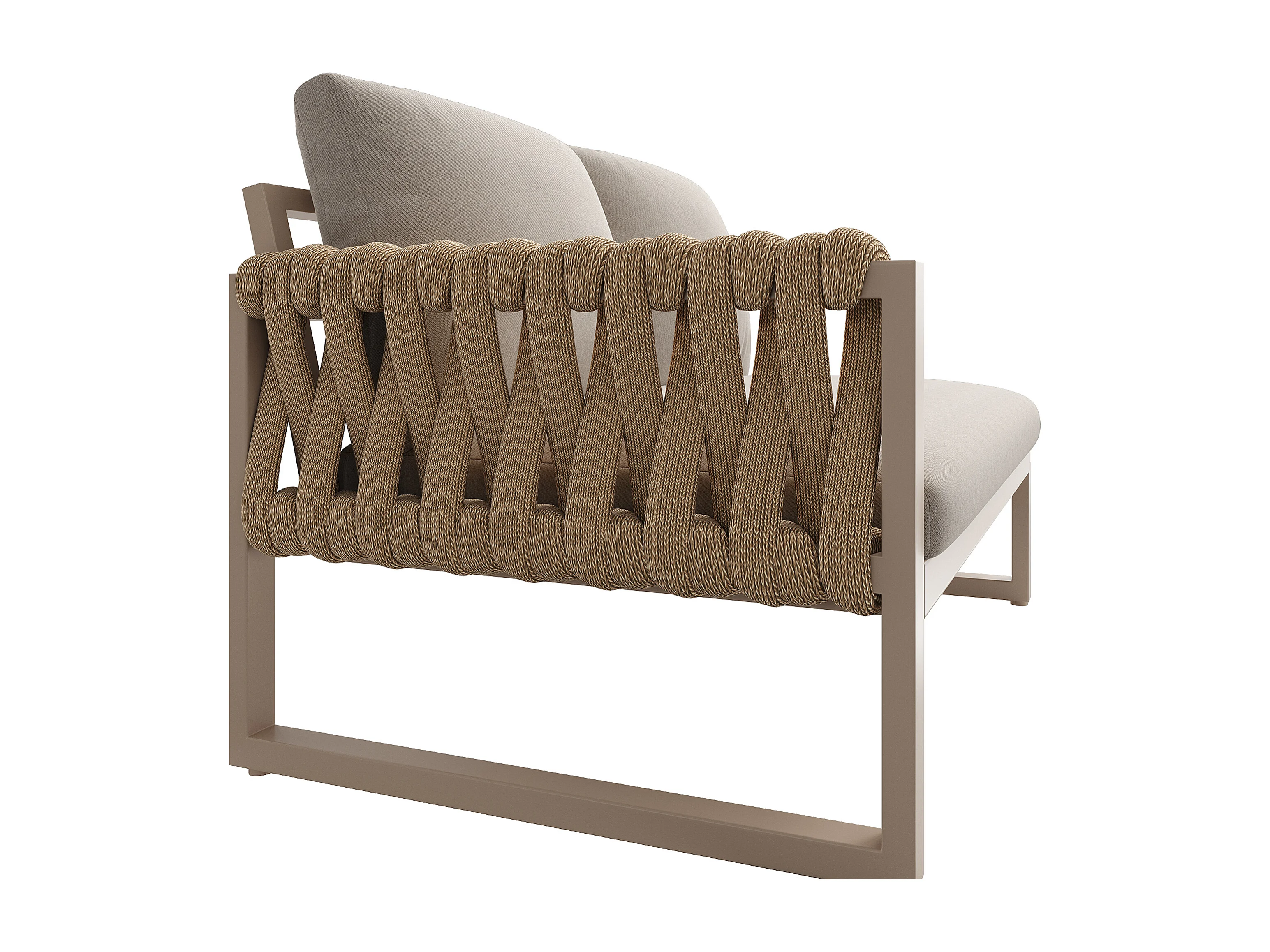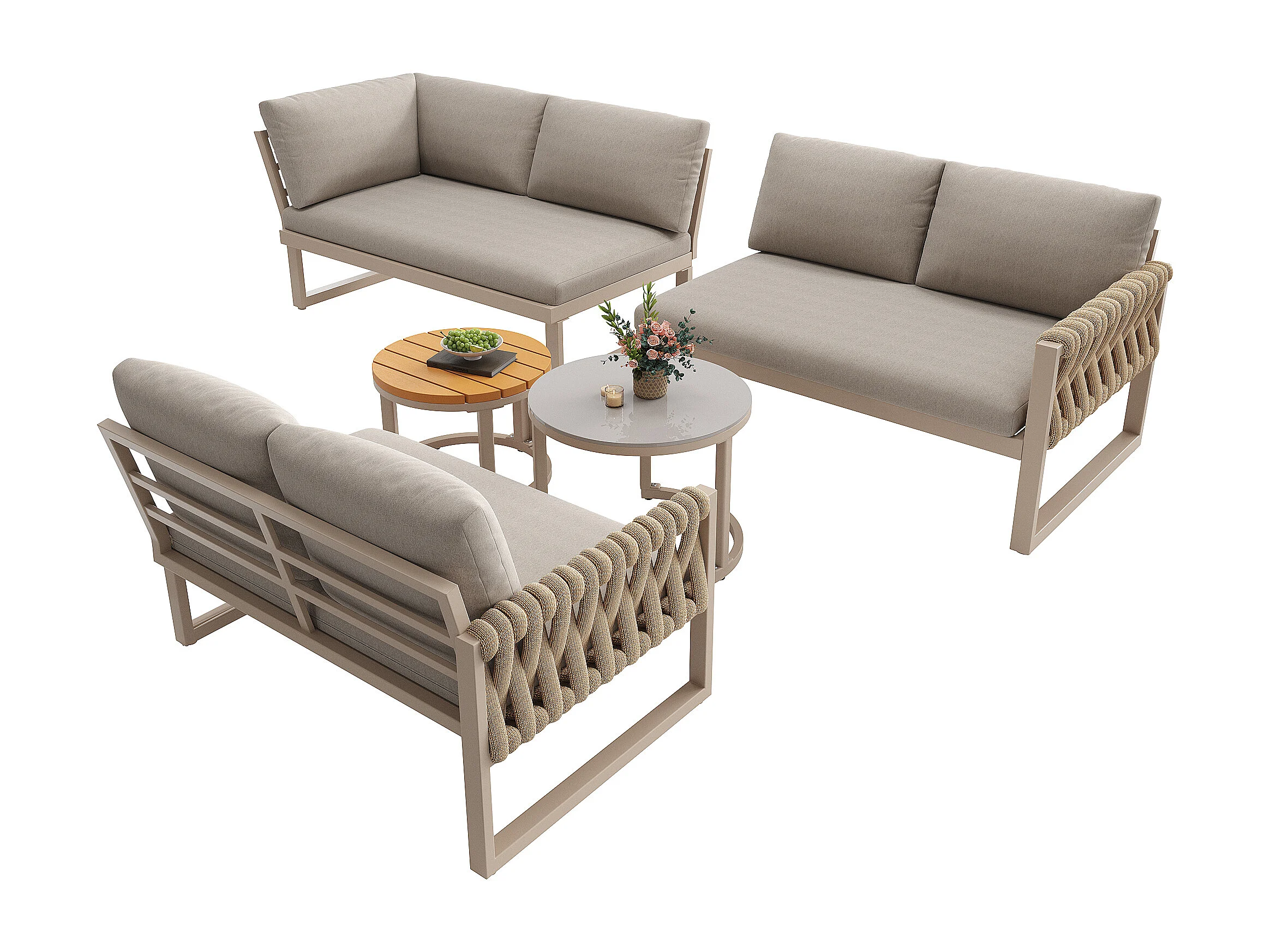Zestaw mebli ogrodowych z liną dla 4 osób, konstrukcja z ocynkowanej stali, regulowane nogi, 1 kanapa - 1 fotel kanapowy - 1 fotel i 2 stoliki kawowe, beżowy