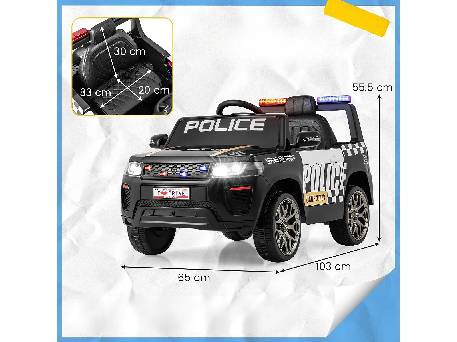 Policyjne auto na akumulator Elektryczny pojazd dla dzieci