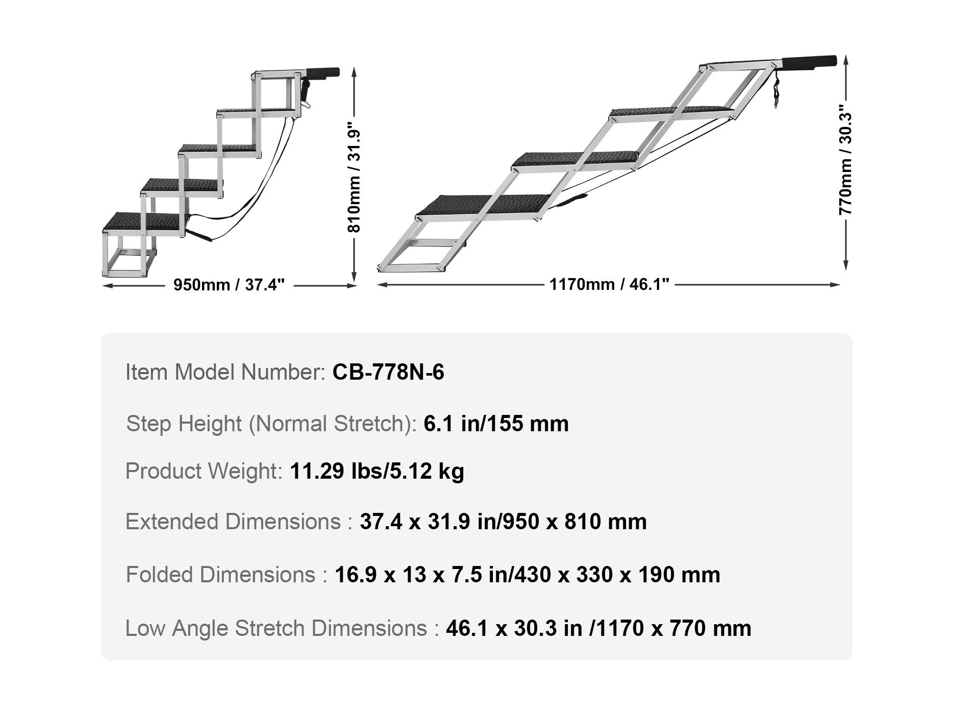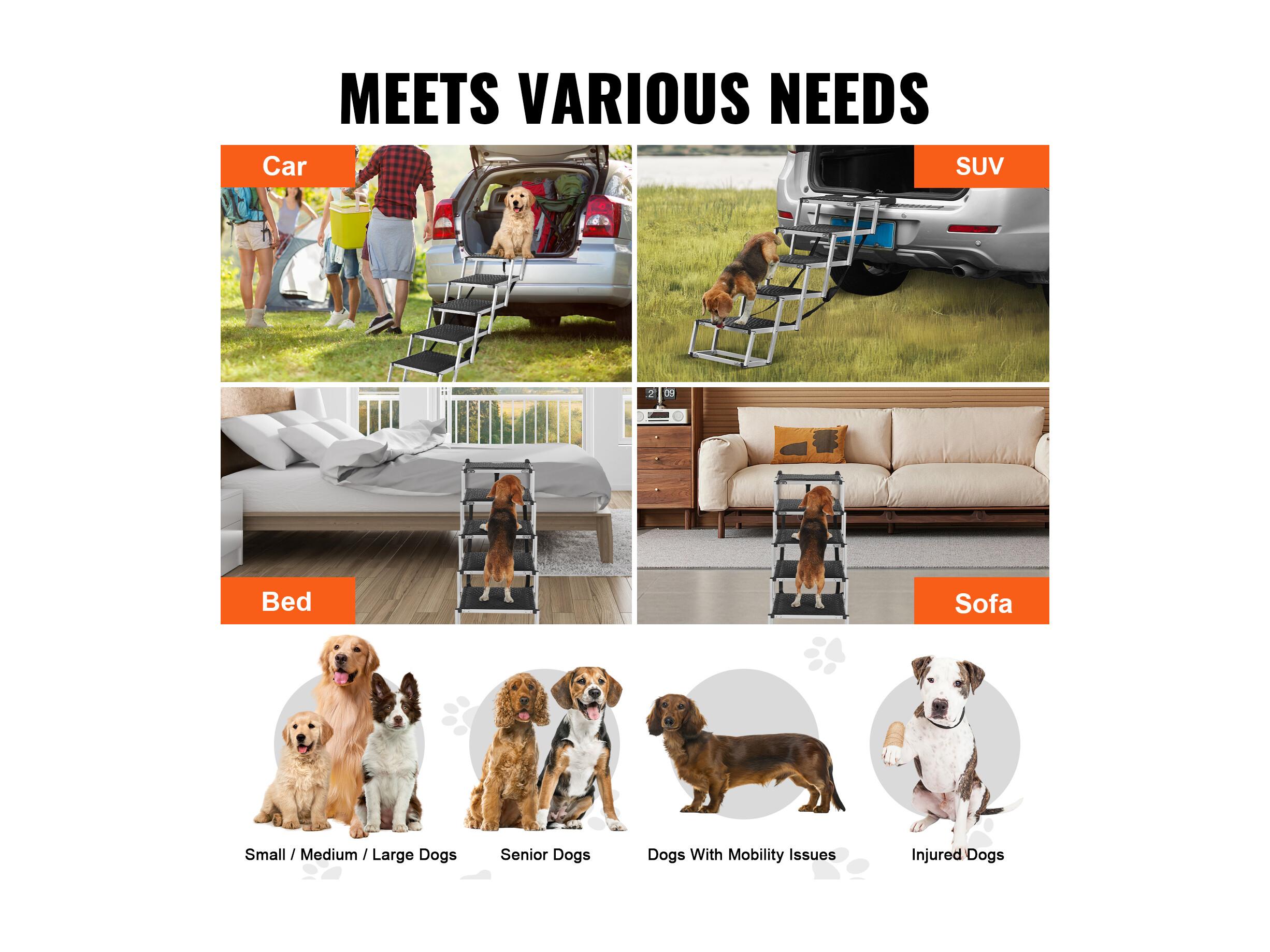 Schody dla Psa, SucceBuy Schody dla Psa do Samochodu 5 Stopni Składane 68 kg Aluminium