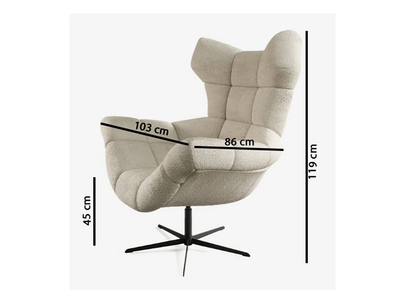 Fotel CATCH ME, Wygodna poduszka, Tkanina 3D, Wysoka odporność, Drewniane detale, Kremowy