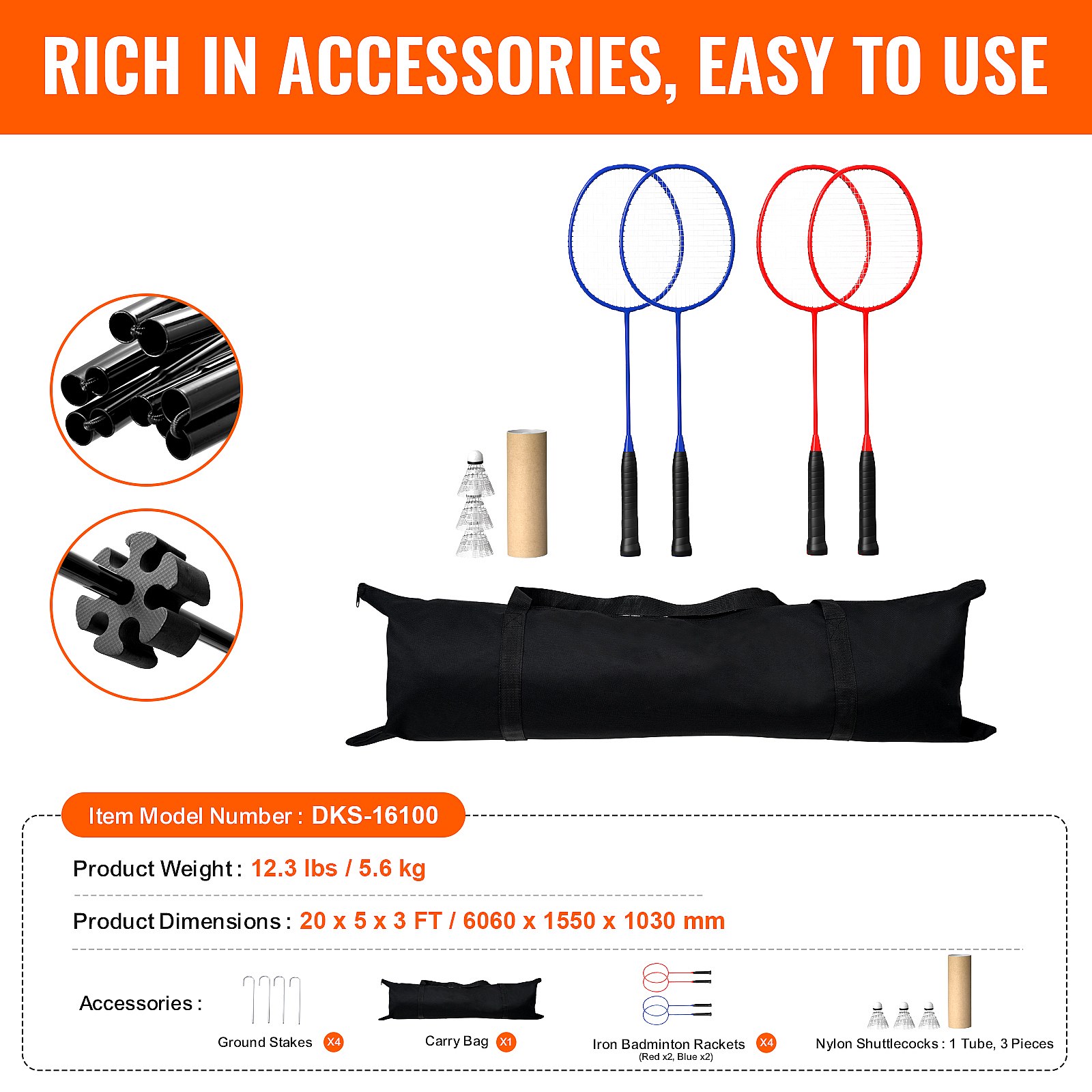 Siatka do Badmintona, SucceBuy 6,06 m Siatka do Badmintona, Przenośna Siatka do Tenisa na Zewnątrz do Siatkówki i Pickleballa