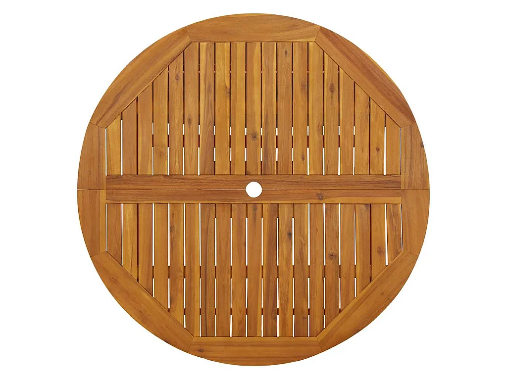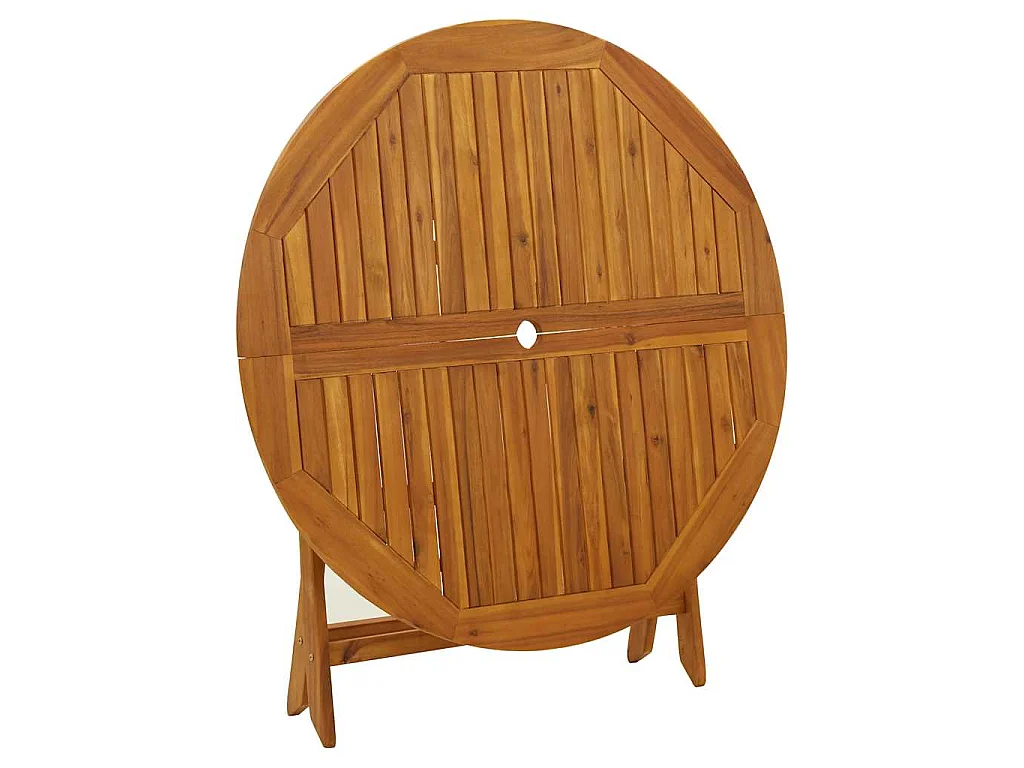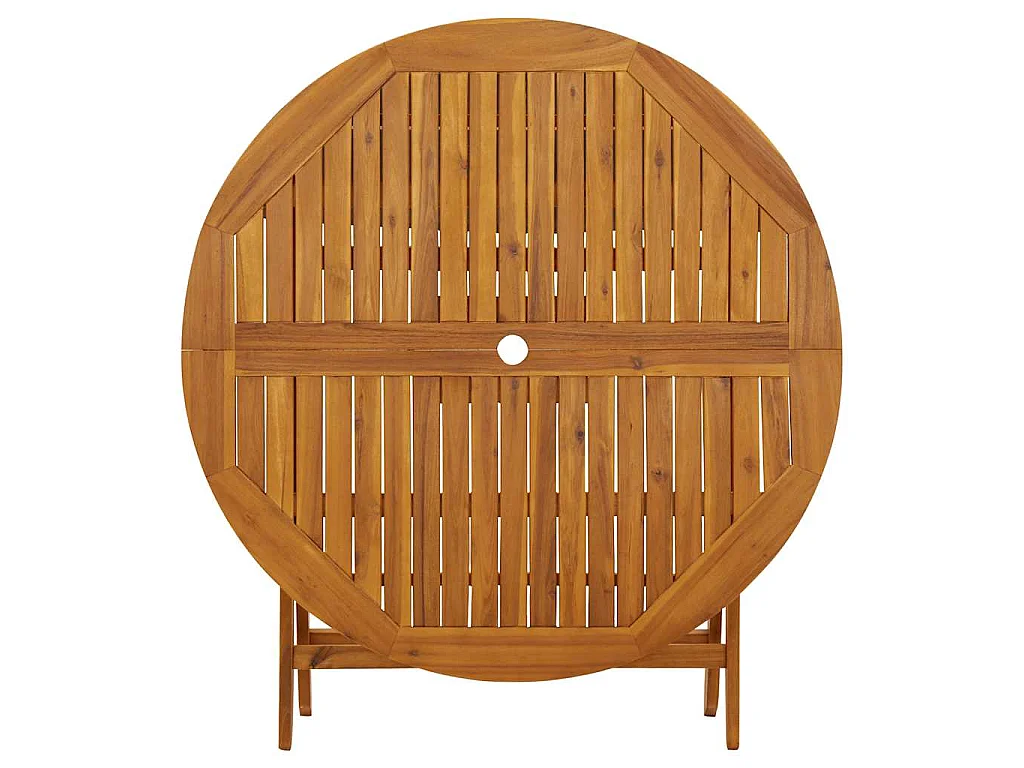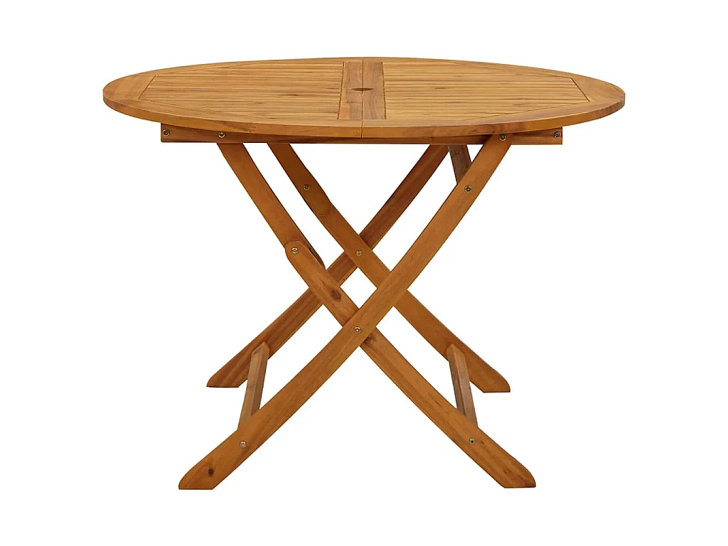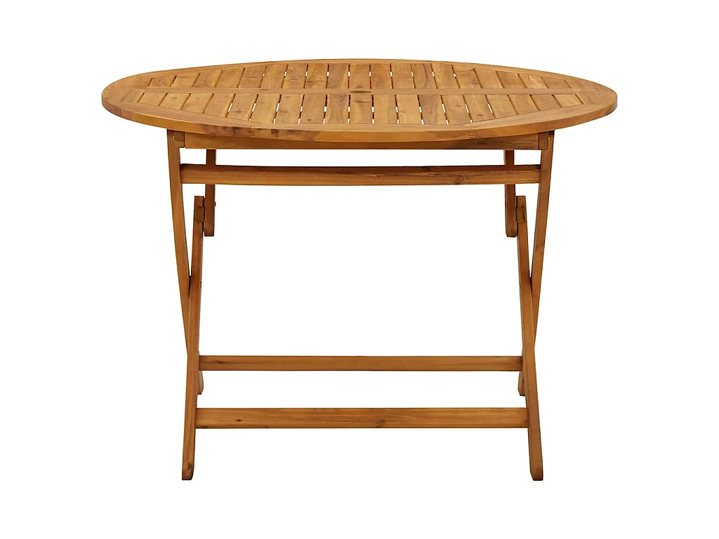 Składany stół ogrodowy o długości 110 cm, wykonany z litego drewna akacjowego.