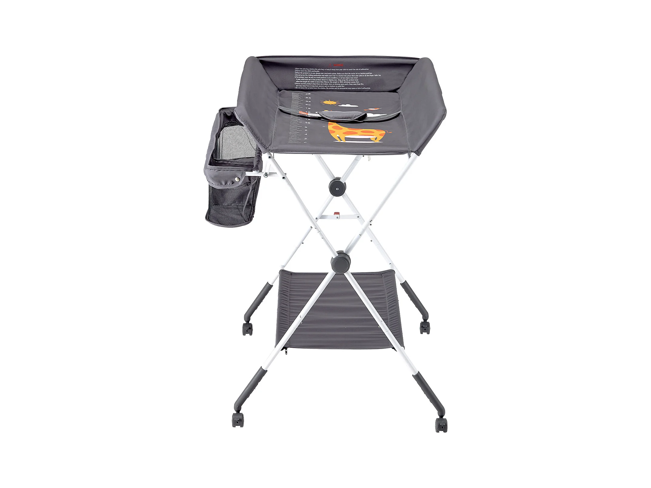 Skladany Stolik do Przewijania SucceBuy Blat do Przewijania z Bocznym Koszem i Blokowanymi Kółkami, Wielofunkcyjne Miejsce do Przechowywania w Pokoju Dziecięcym