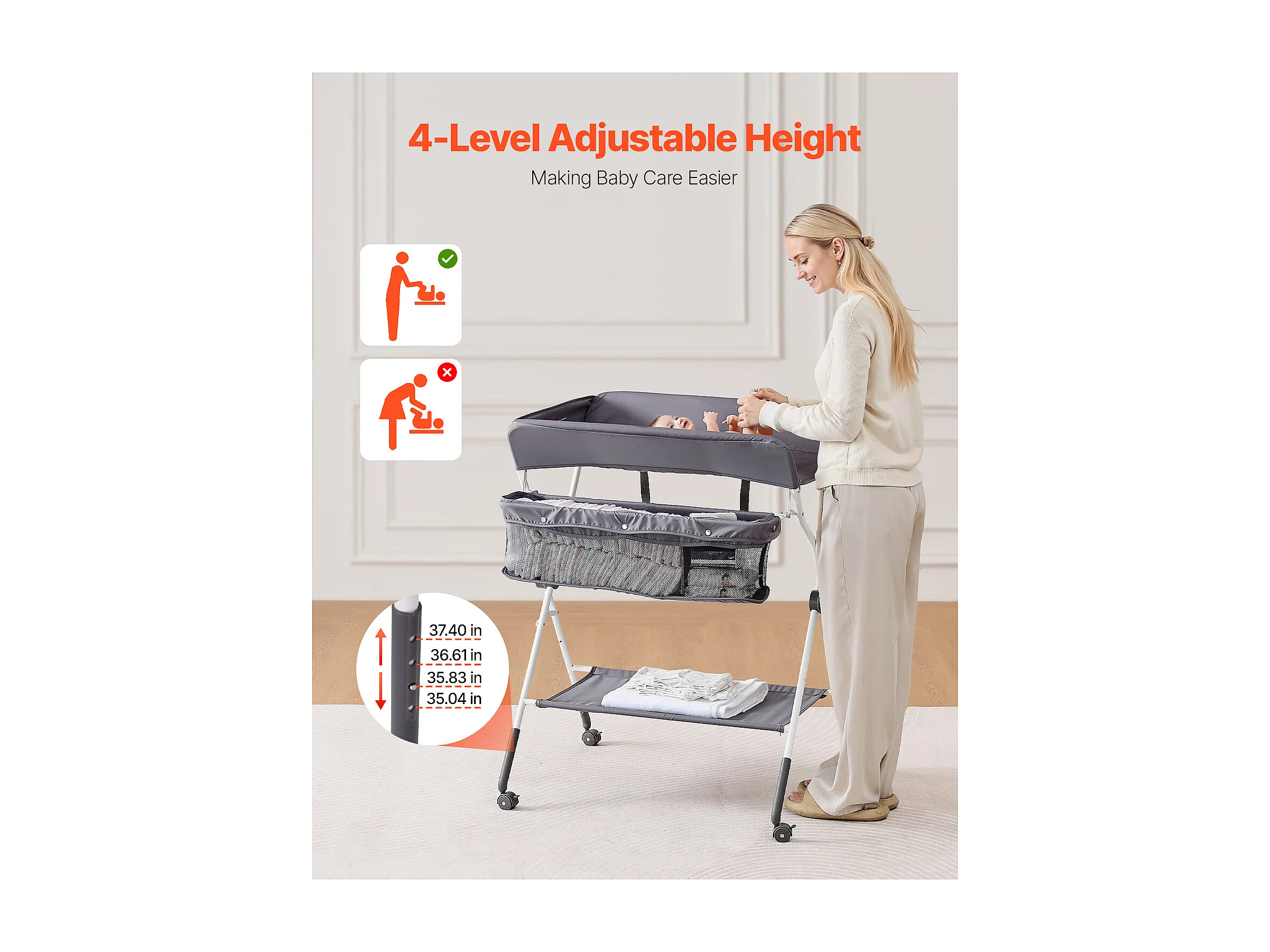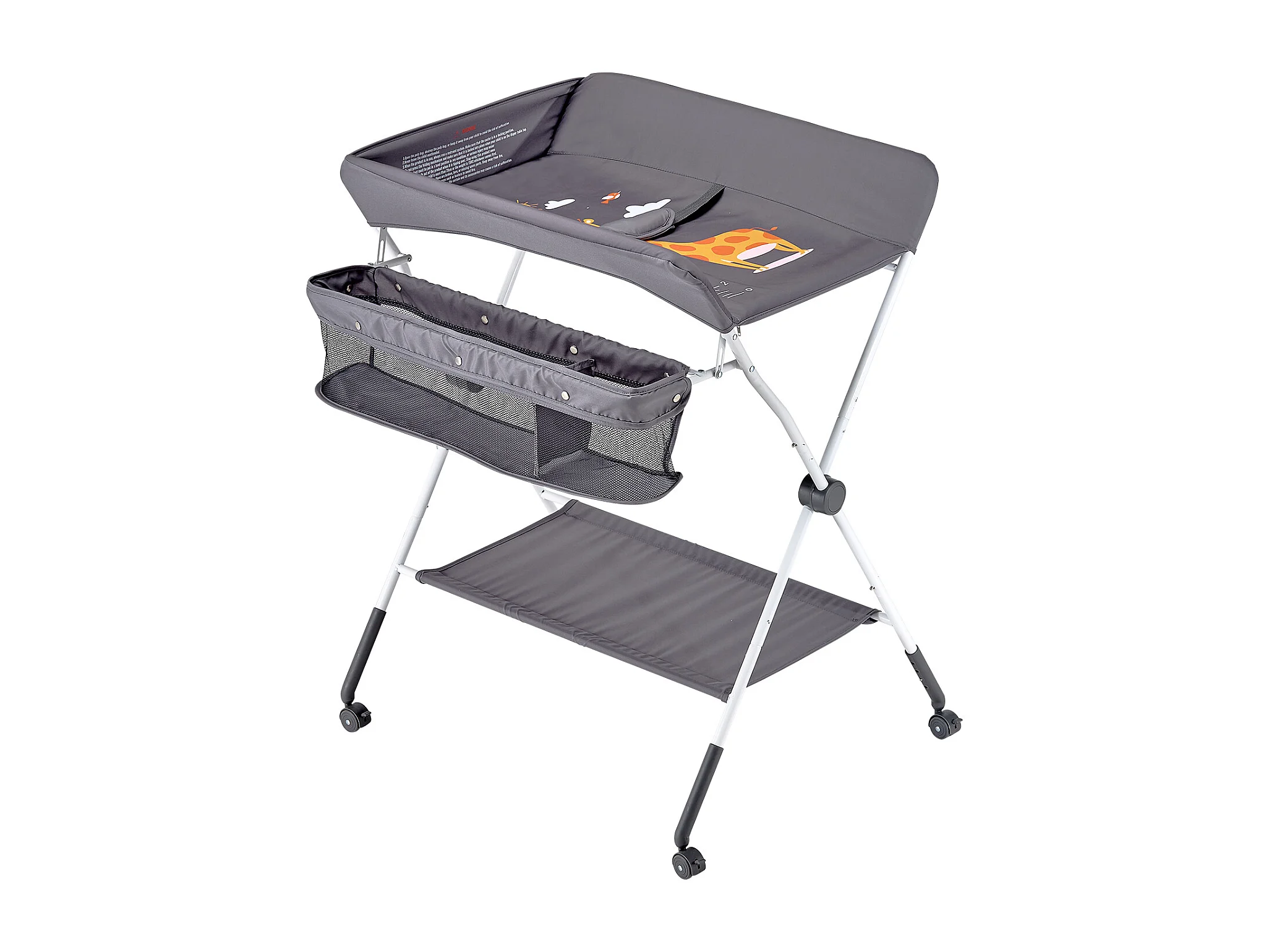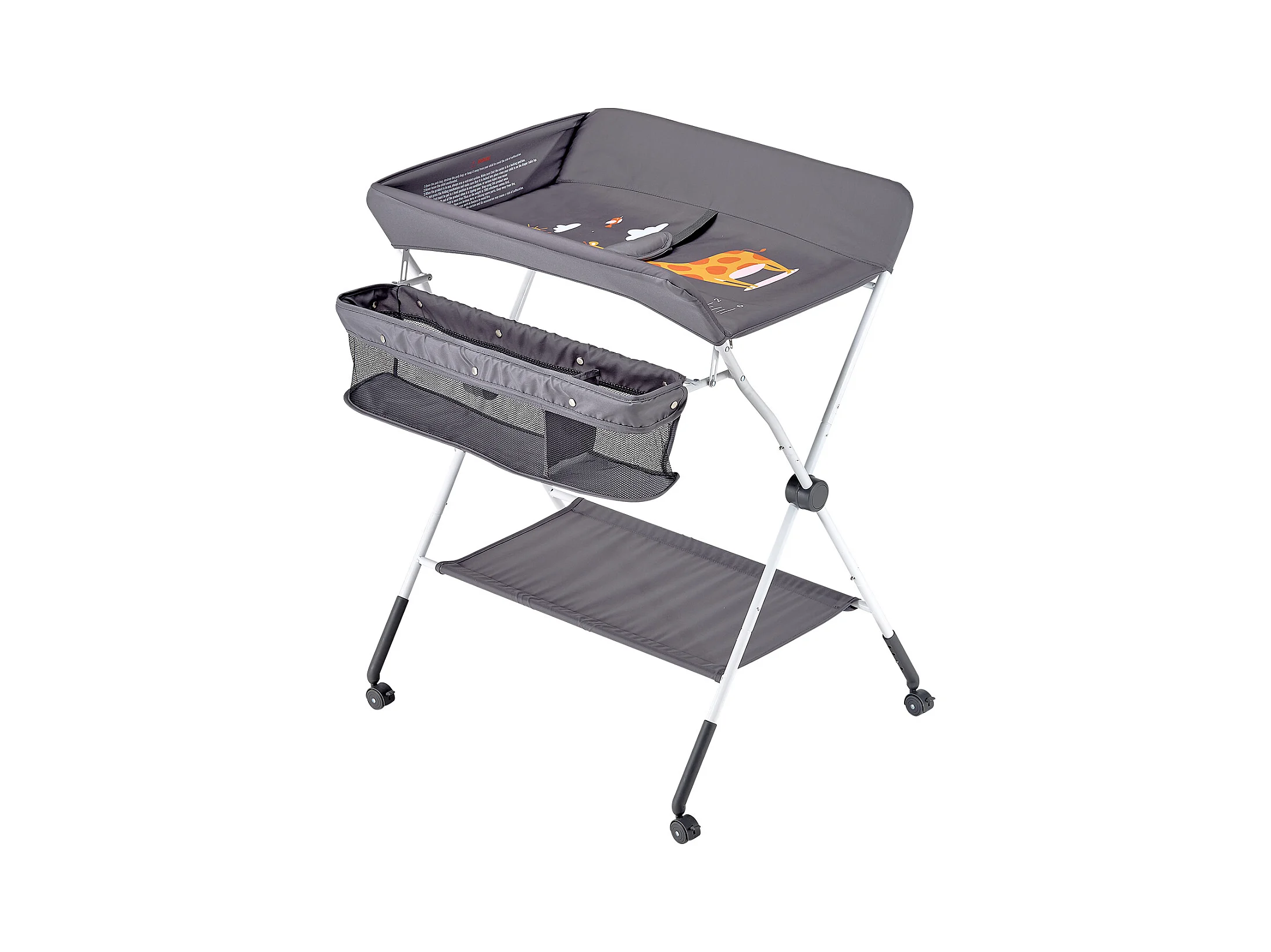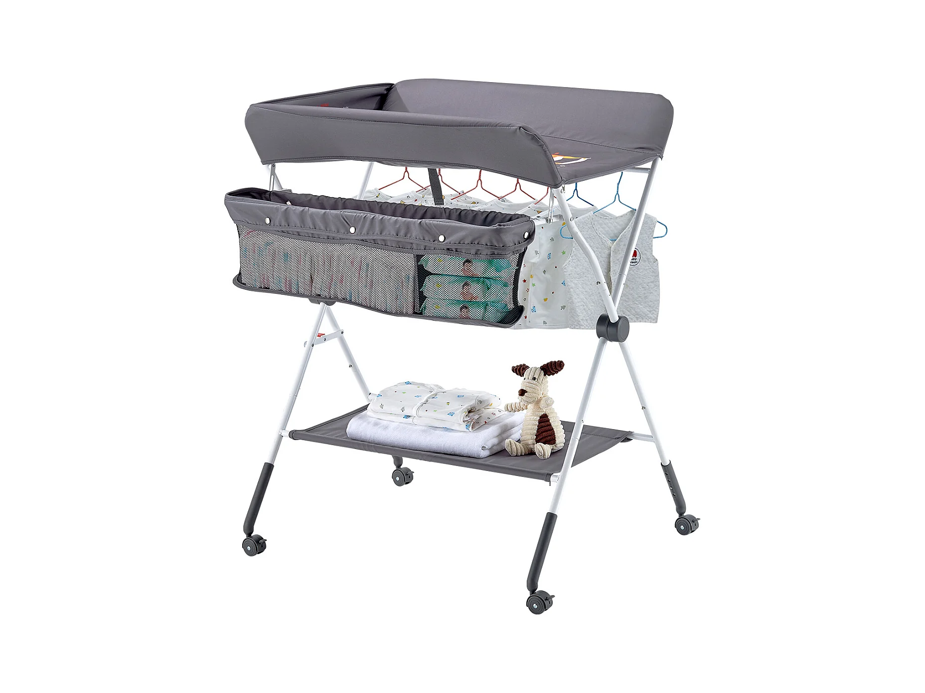 Skladany Stolik do Przewijania SucceBuy Blat do Przewijania z Bocznym Koszem i Blokowanymi Kółkami, Mebel dla Niemowląt z Regulowaną Wysokością, Jasnoszary