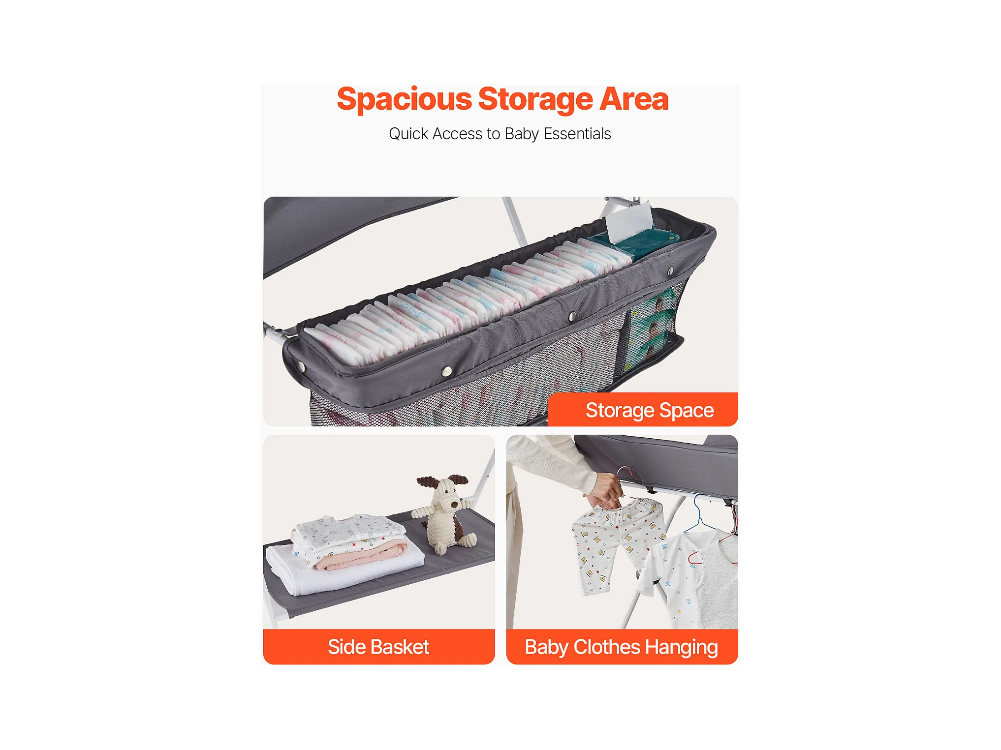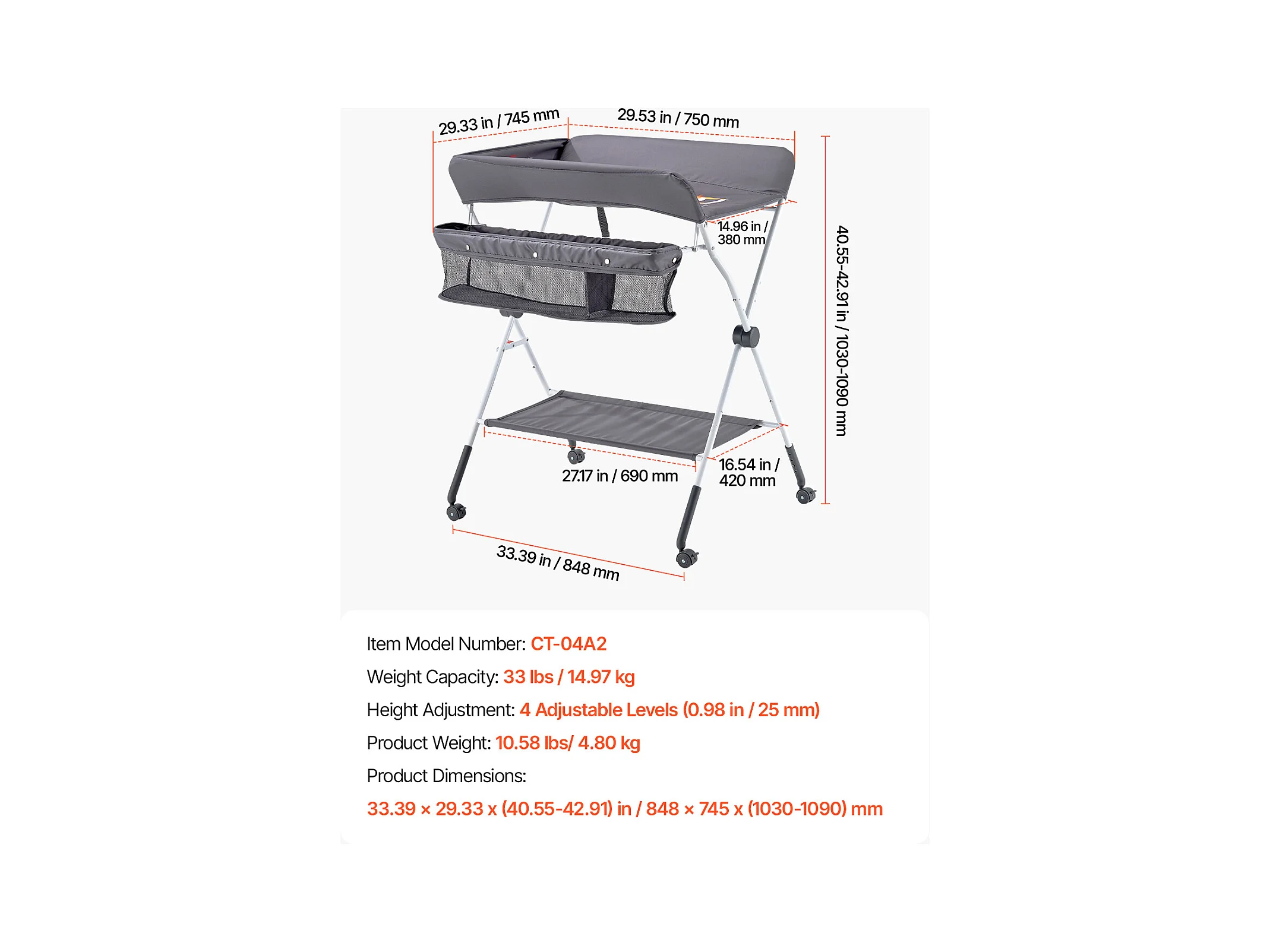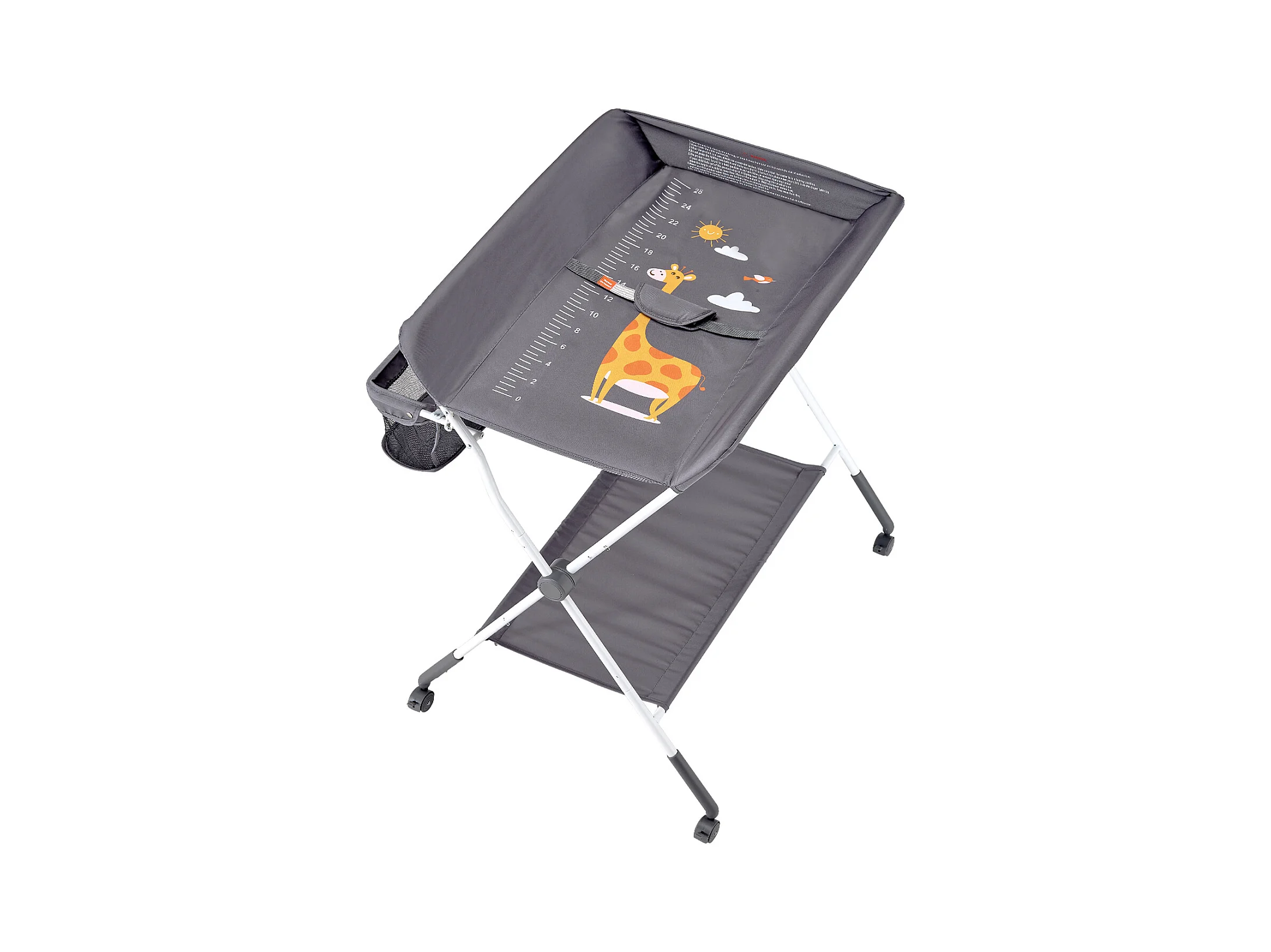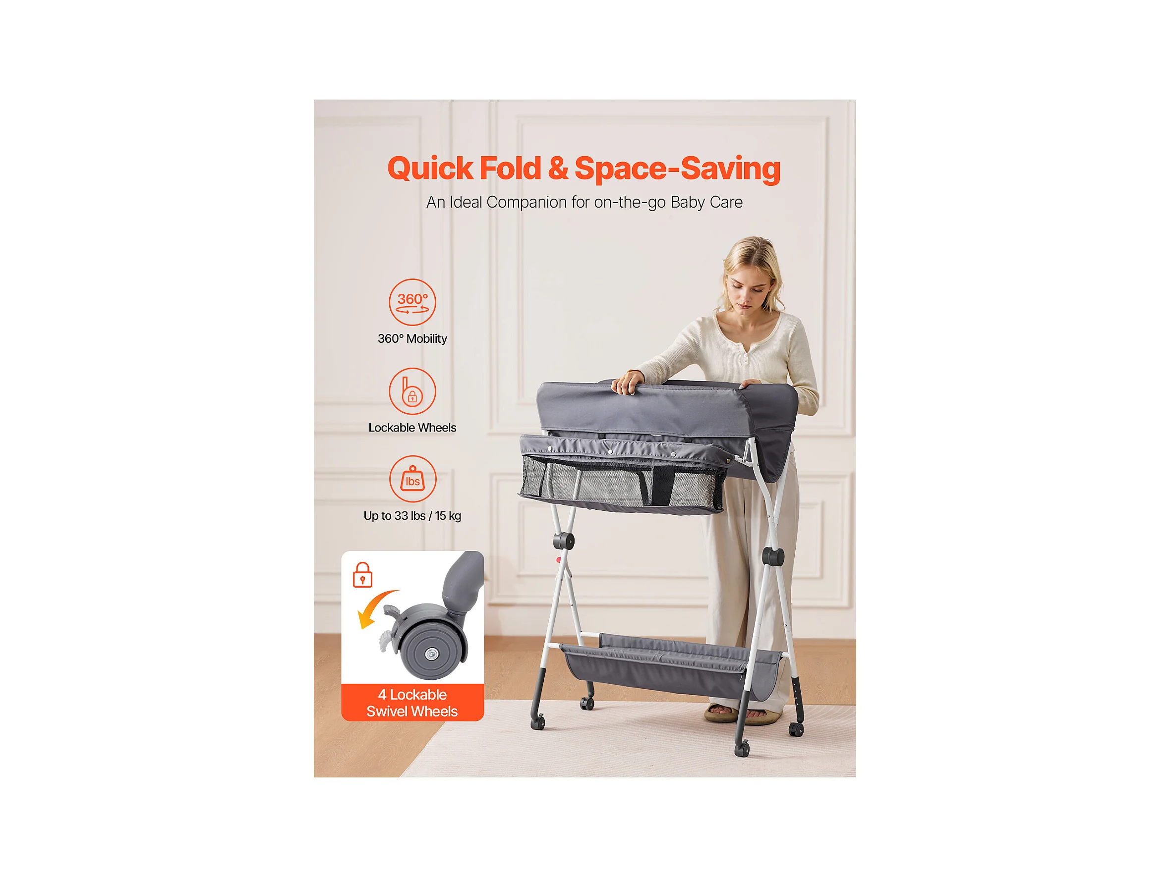 Skladany Stolik do Przewijania SucceBuy Blat do Przewijania z Bocznym Koszem i Blokowanymi Kółkami, Mebel dla Niemowląt z Regulowaną Wysokością, Jasnoszary