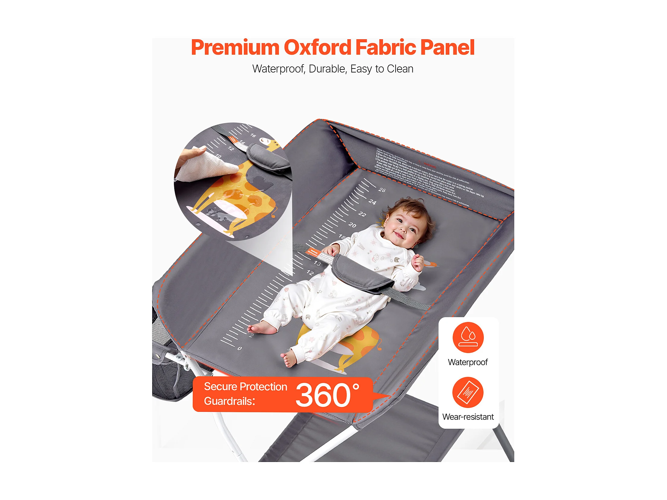 Skladany Stolik do Przewijania SucceBuy Blat do Przewijania z 2 Szufladami z Tkaniny, Boczny Kosz i Drążek do Zawieszania, Blokowane Kółka, Kolor Szary