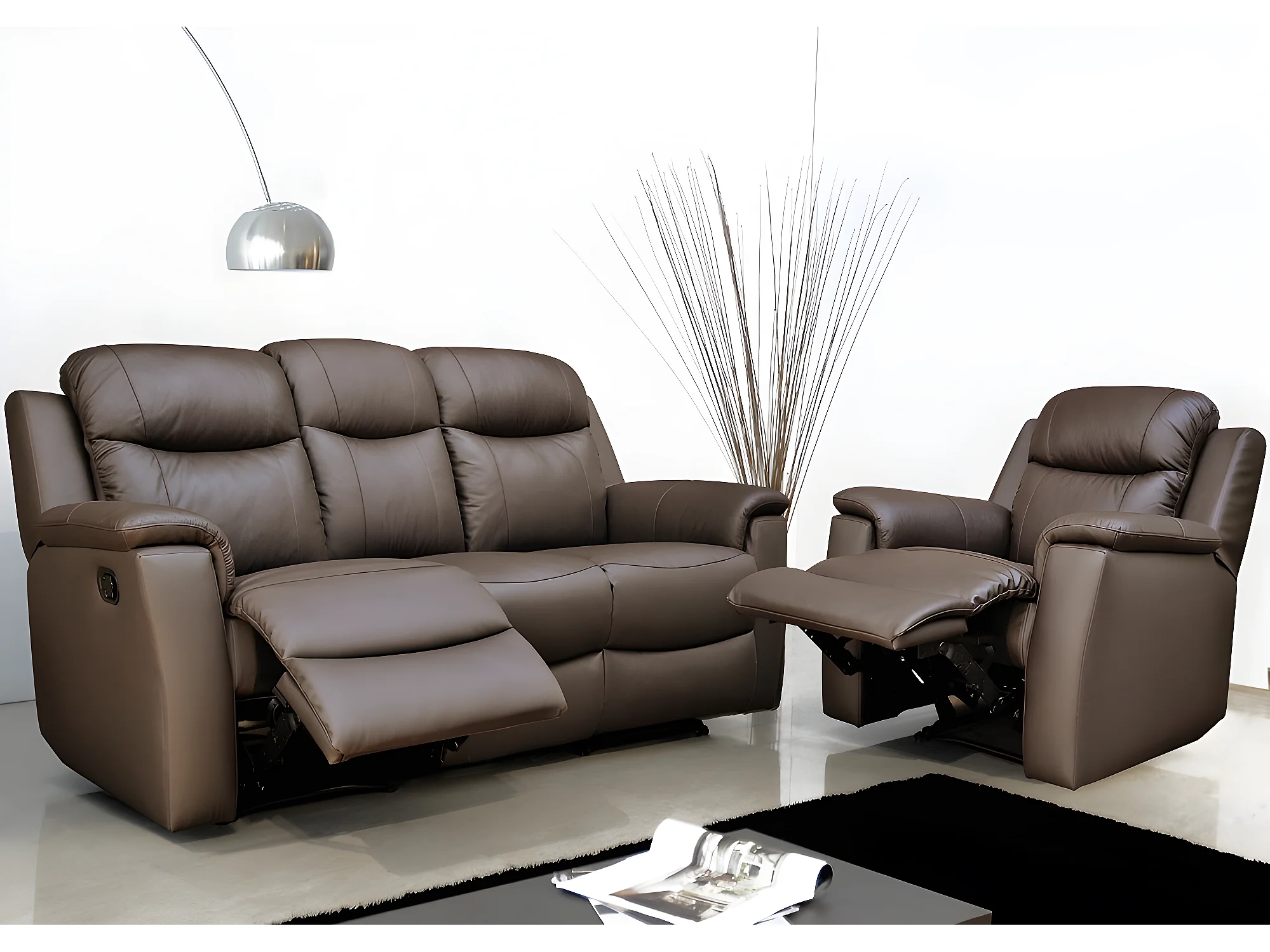 Fotel z funkcją relax EVASION ze skóry - brązowy