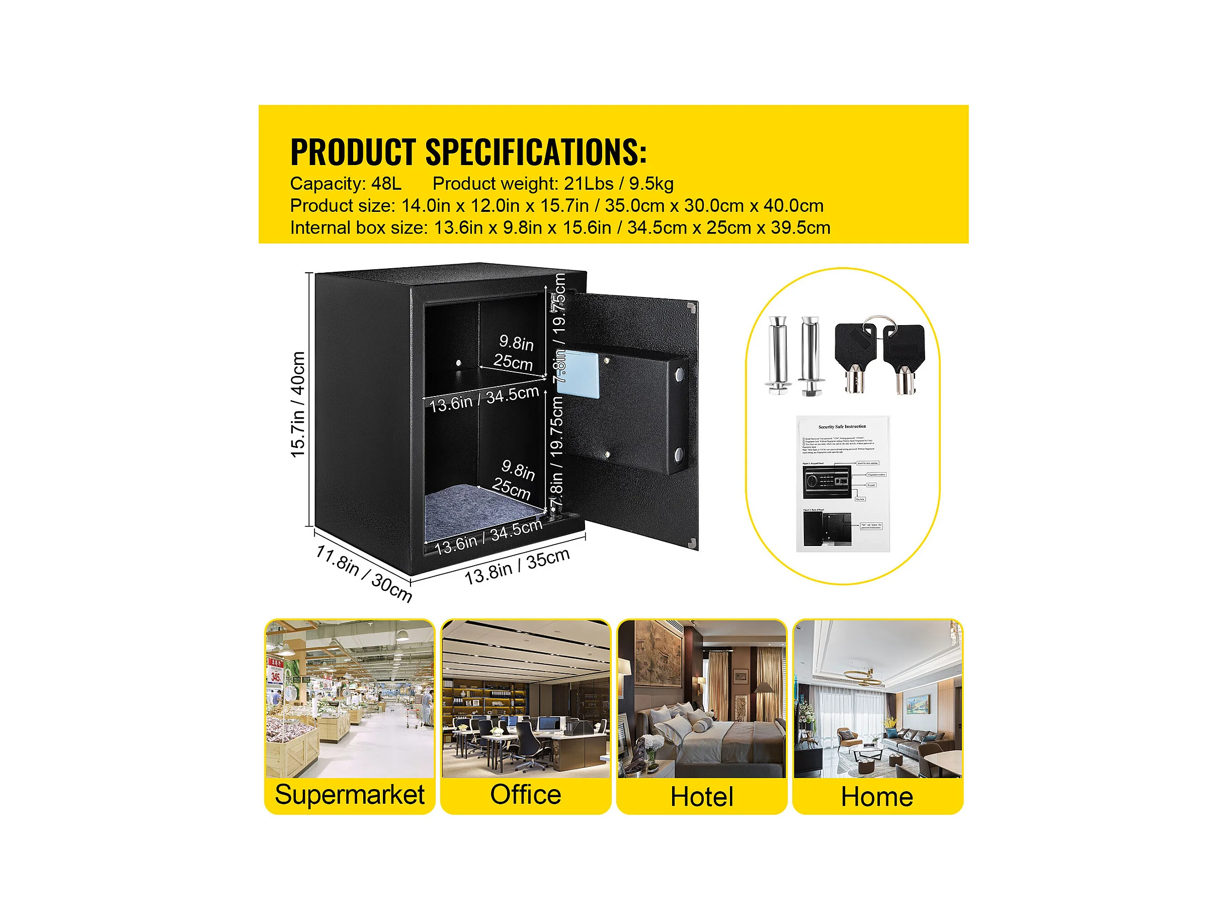 Skrytka Bezpieczeństwa SucceBuy, z Zamkiem Kluczem Cyfrowym, 48 L, Dla Domu i Biura