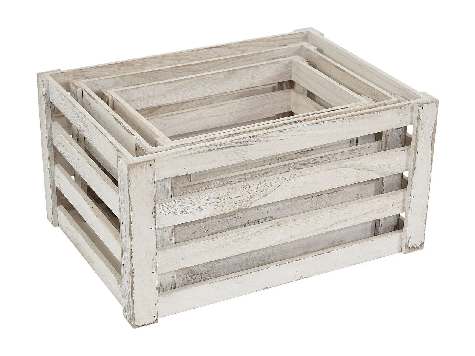 Skrzynka drewniana MCW-C56 (zestaw 3 szt.), biała, shabby