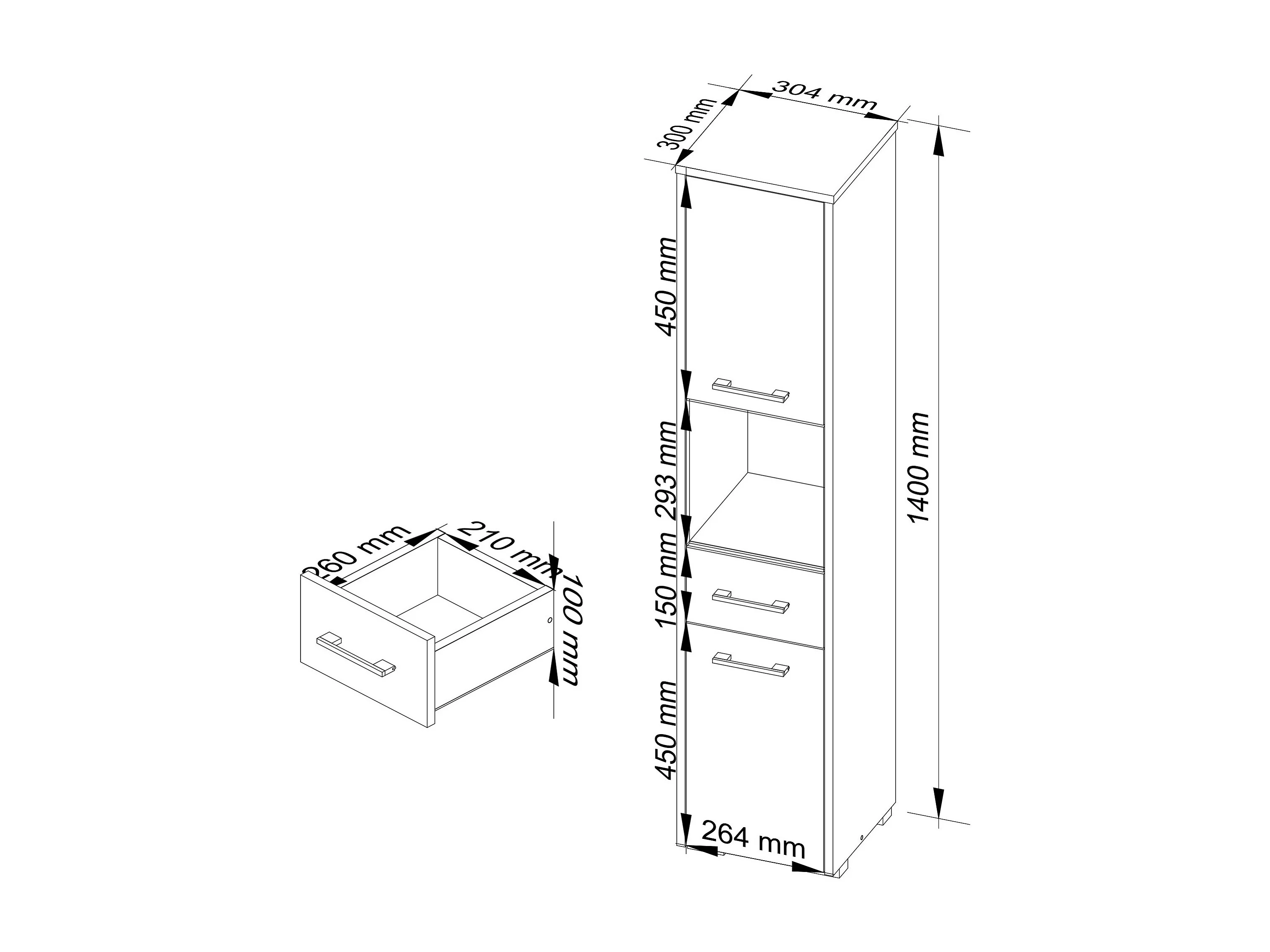 Słupek łazienkowy AKORD FIN Dąb Sonoma 30 cm 2 drzwi 1 szuflada kolor Biały mat 5 półek 30x30x140 cm