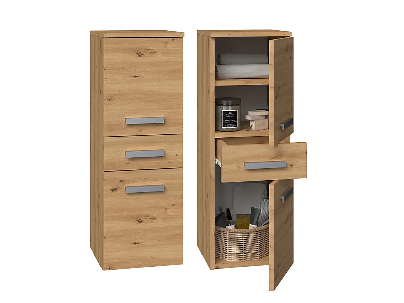 Szafka Łazienkowa SARA S33 | Dąb Artisan | 30x30x170 cm | 3 Drzwi, Półki