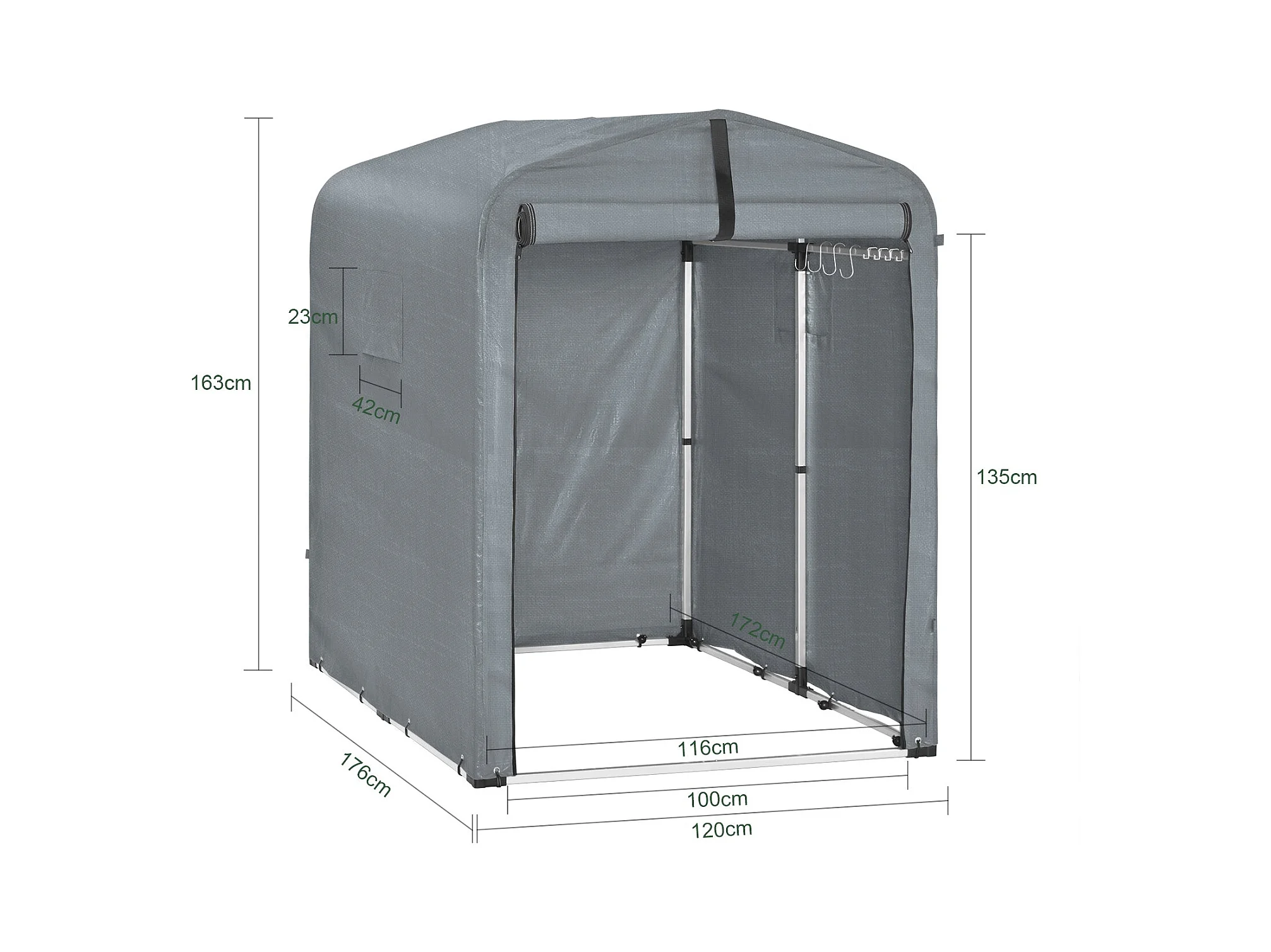 Sobuy Outdoor Car Garage Bicycle Box Tent Wodoodporny namiot na samochody, motocykle i narzędzia Szopa ogrodowa i schowek zewnętrzny Szary 120x176x163 cm KLS11-DG