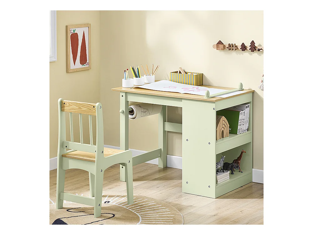 SoBuy stół dziecięcy z krzesłem i uchwytem na papier, zielony