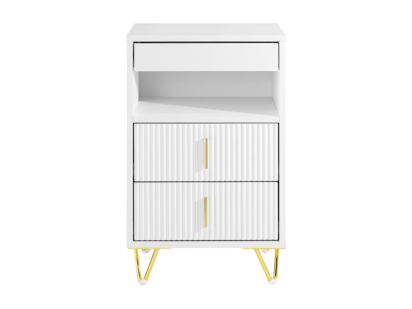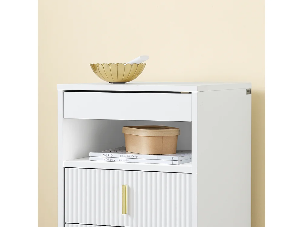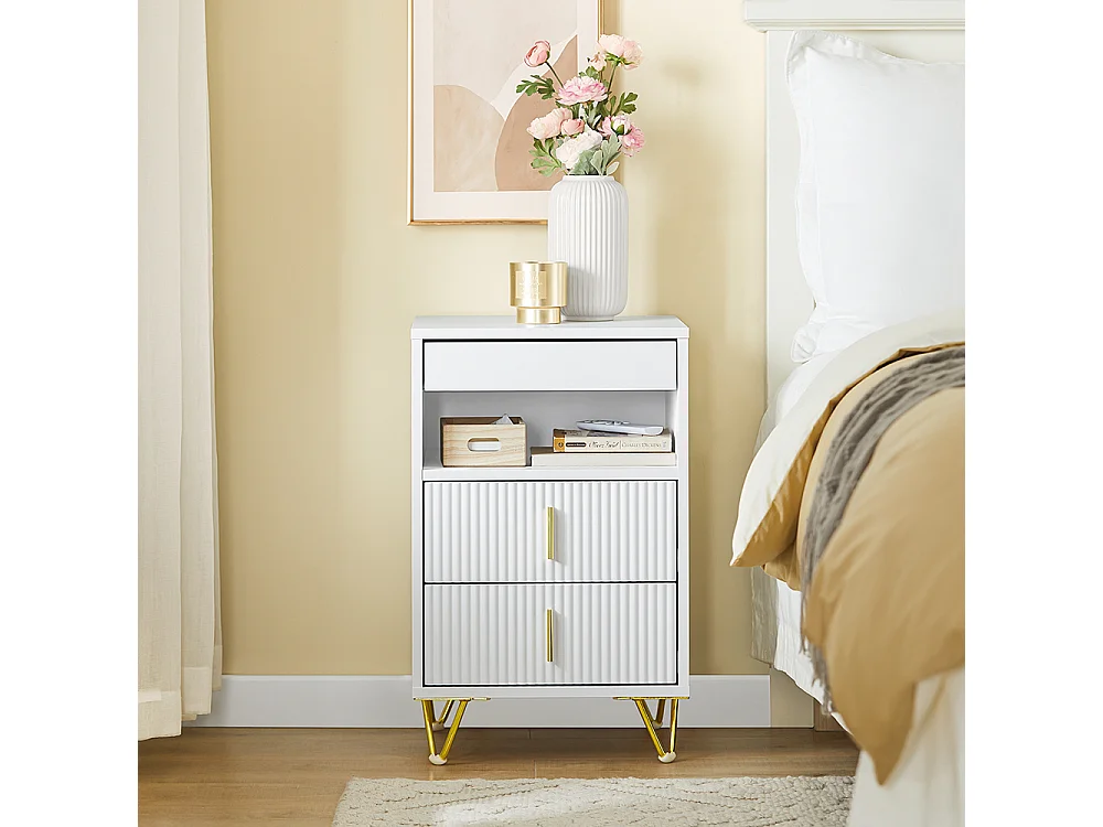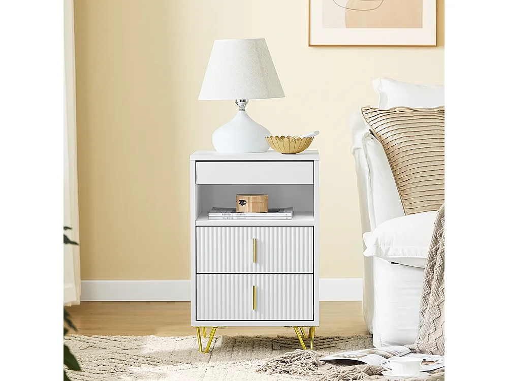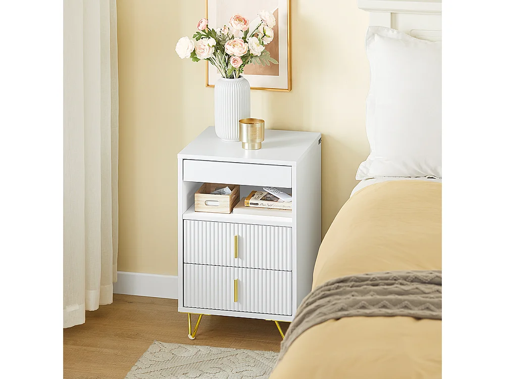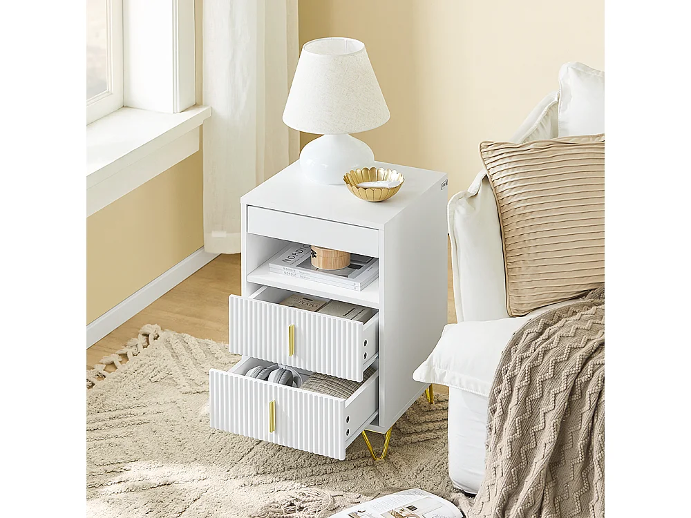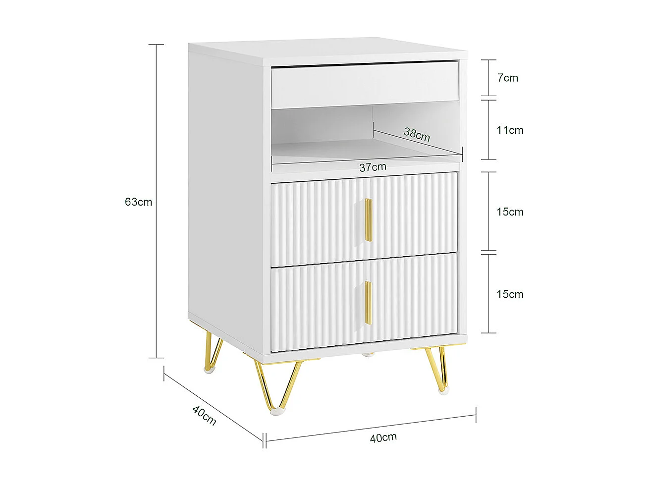 SoBuy Stolik nocny z 3 szufladami i półką, biały, 40x40x63 cm, FBT168-W