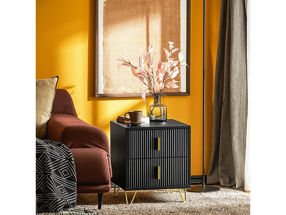 SoBuy Szafka nocna z dwiema szufladami Czarny 40.01x40.01x46.99cm Funkcjonalny FBT115-SCHX2