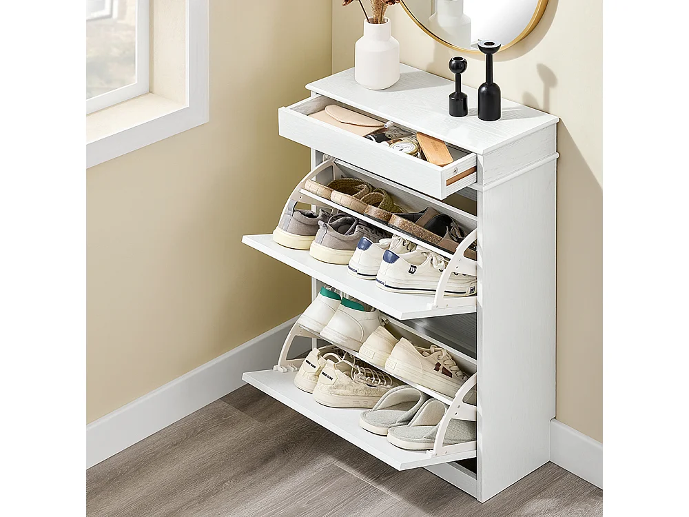 SoBuy Wąska szafka na buty oszczędzająca miejsce z 4 składanymi drzwiami efekt postarzanego drewna biała 103x23x82cm