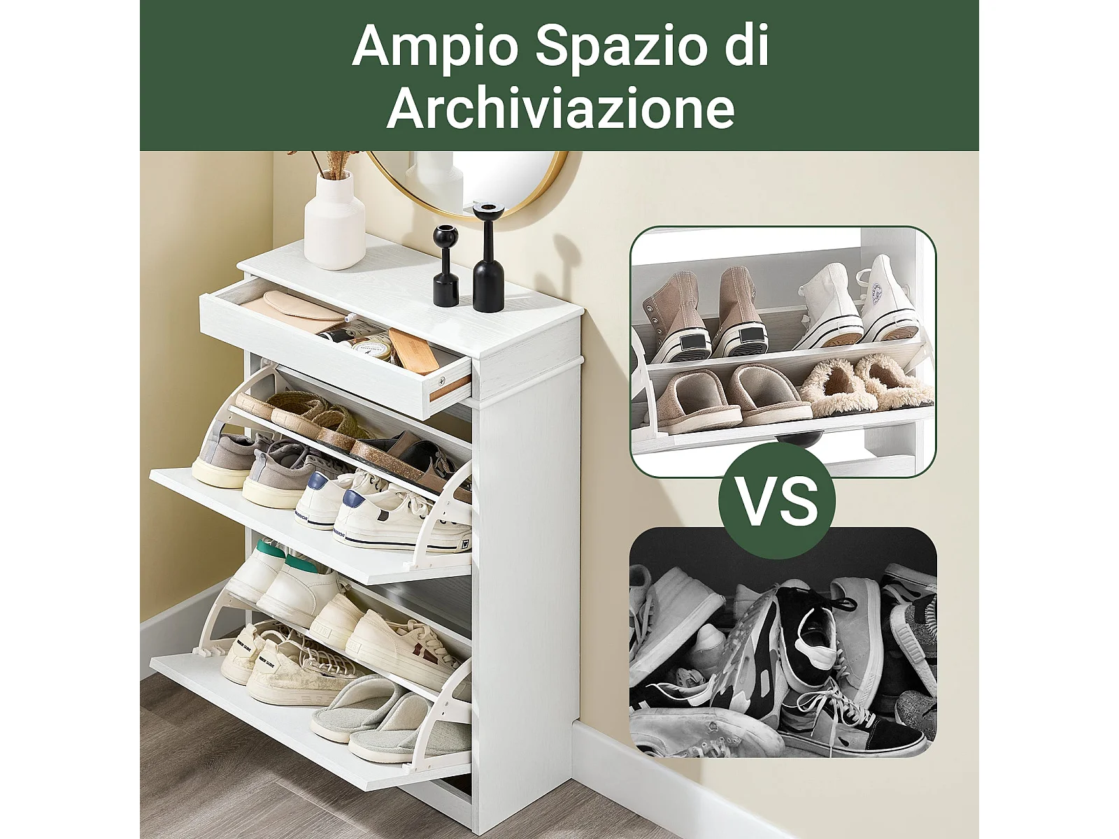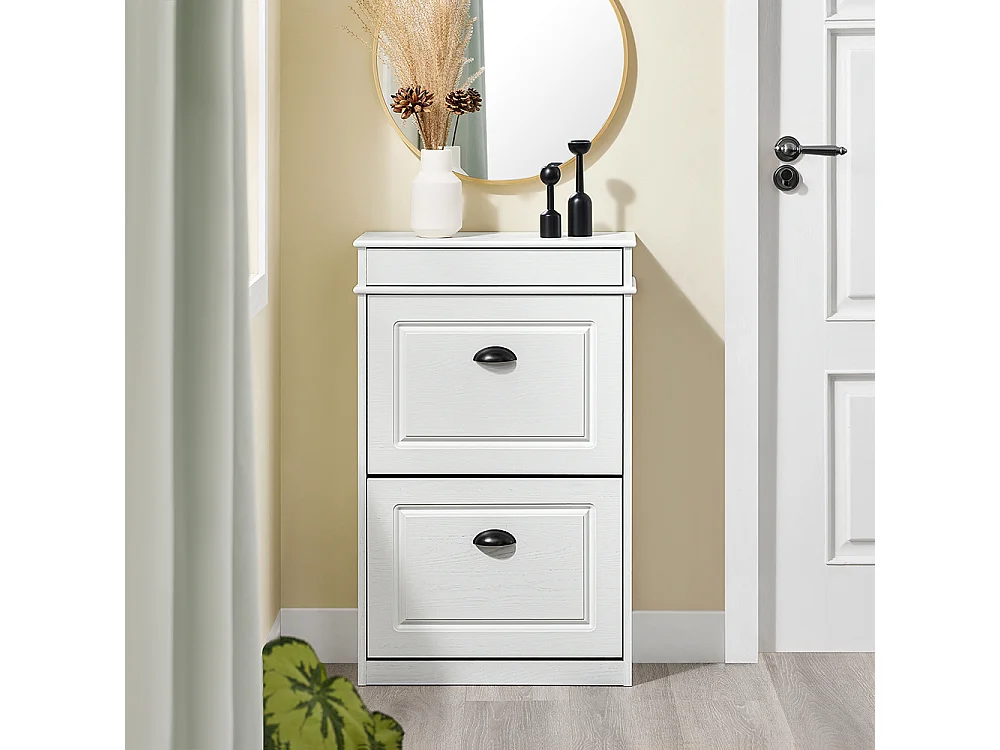SoBuy szafka na buty oszczędzająca miejsce smukła z 3 składanymi drzwiczkami efekt postarzanego drewna biały 53x24x118 cm