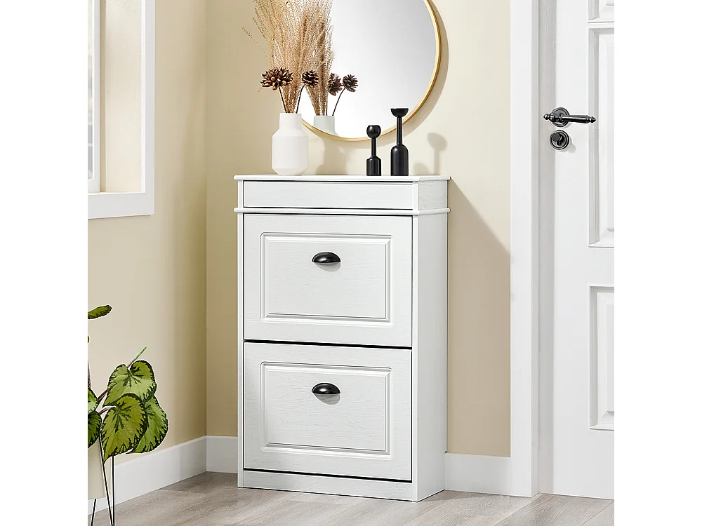 SoBuy Wąska szafka na buty oszczędzająca miejsce z 2 składanymi drzwiami nowoczesna biały efekt postarzanego drewna 54x24x82cm