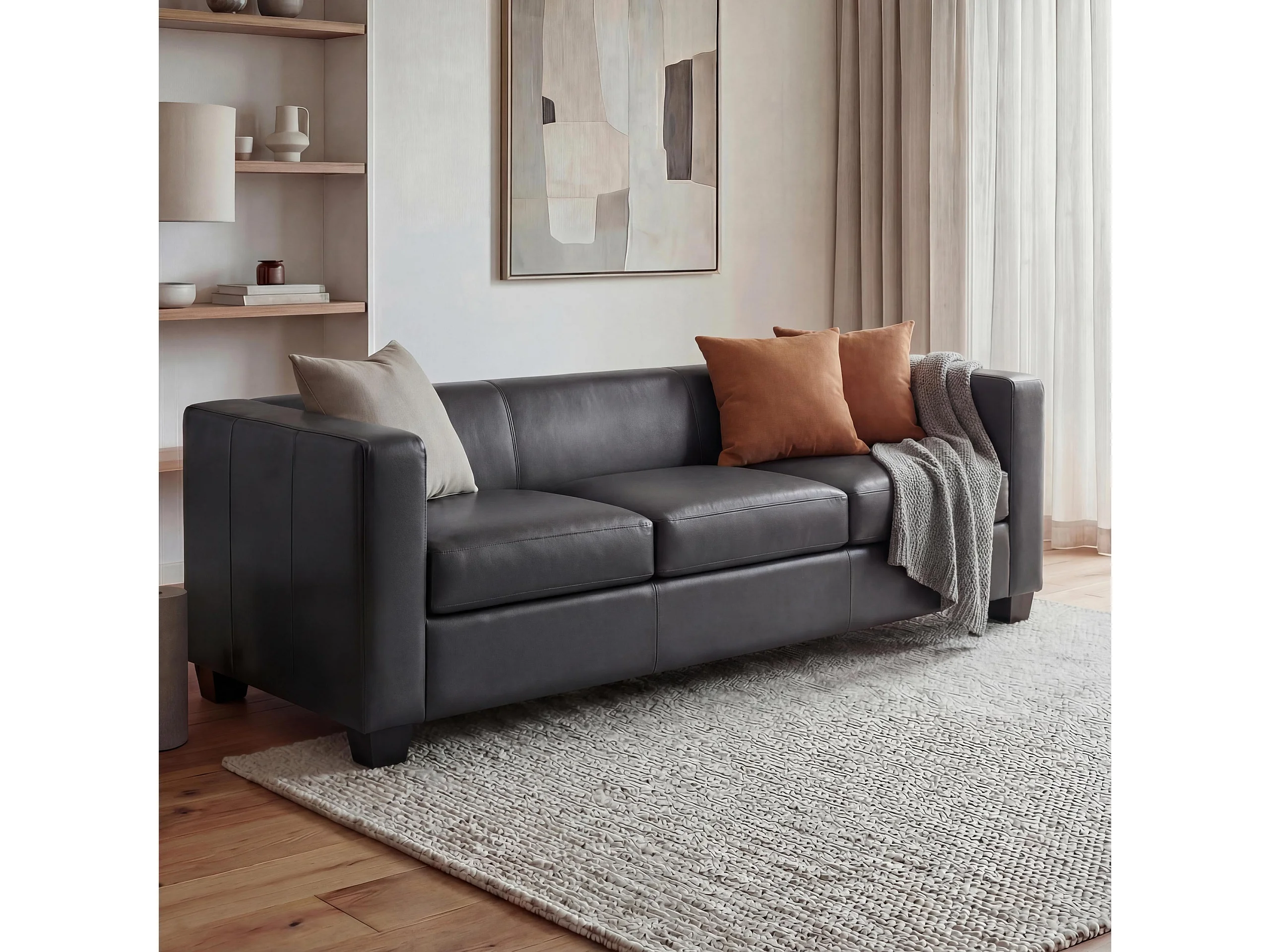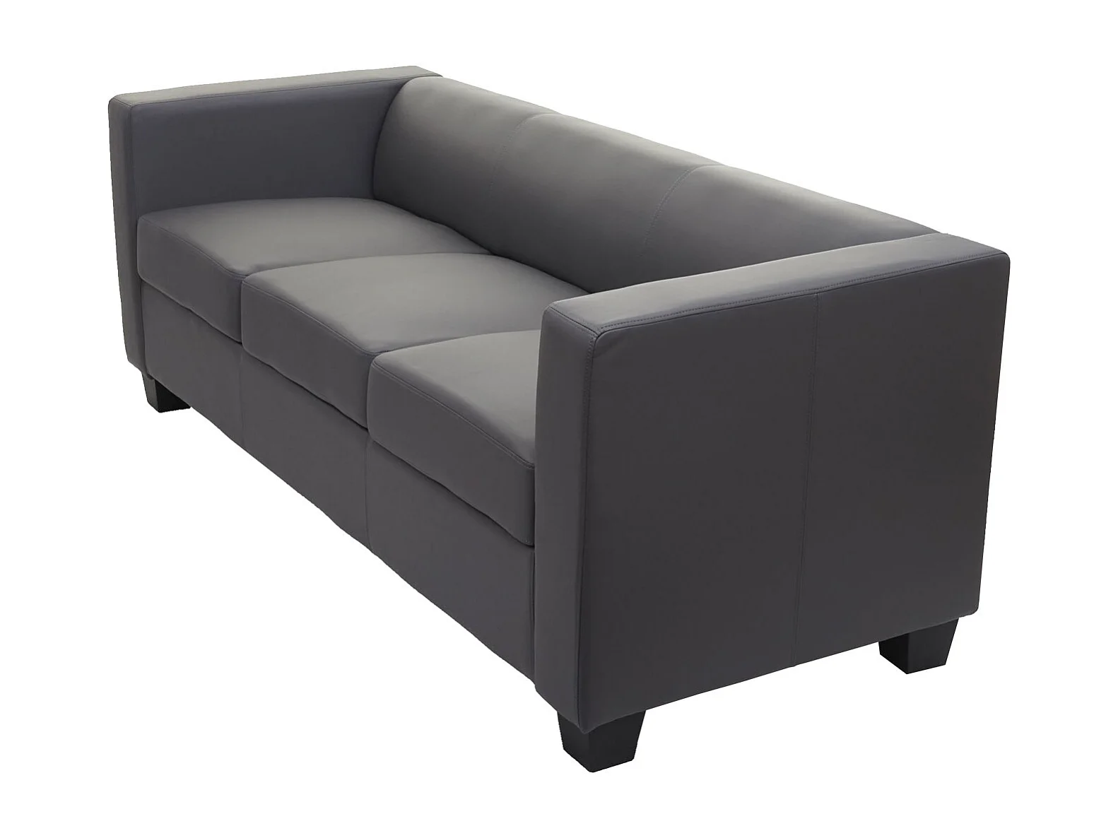 Sofa 3-osobowa Lille, sztuczna skóra, ciemnoszara