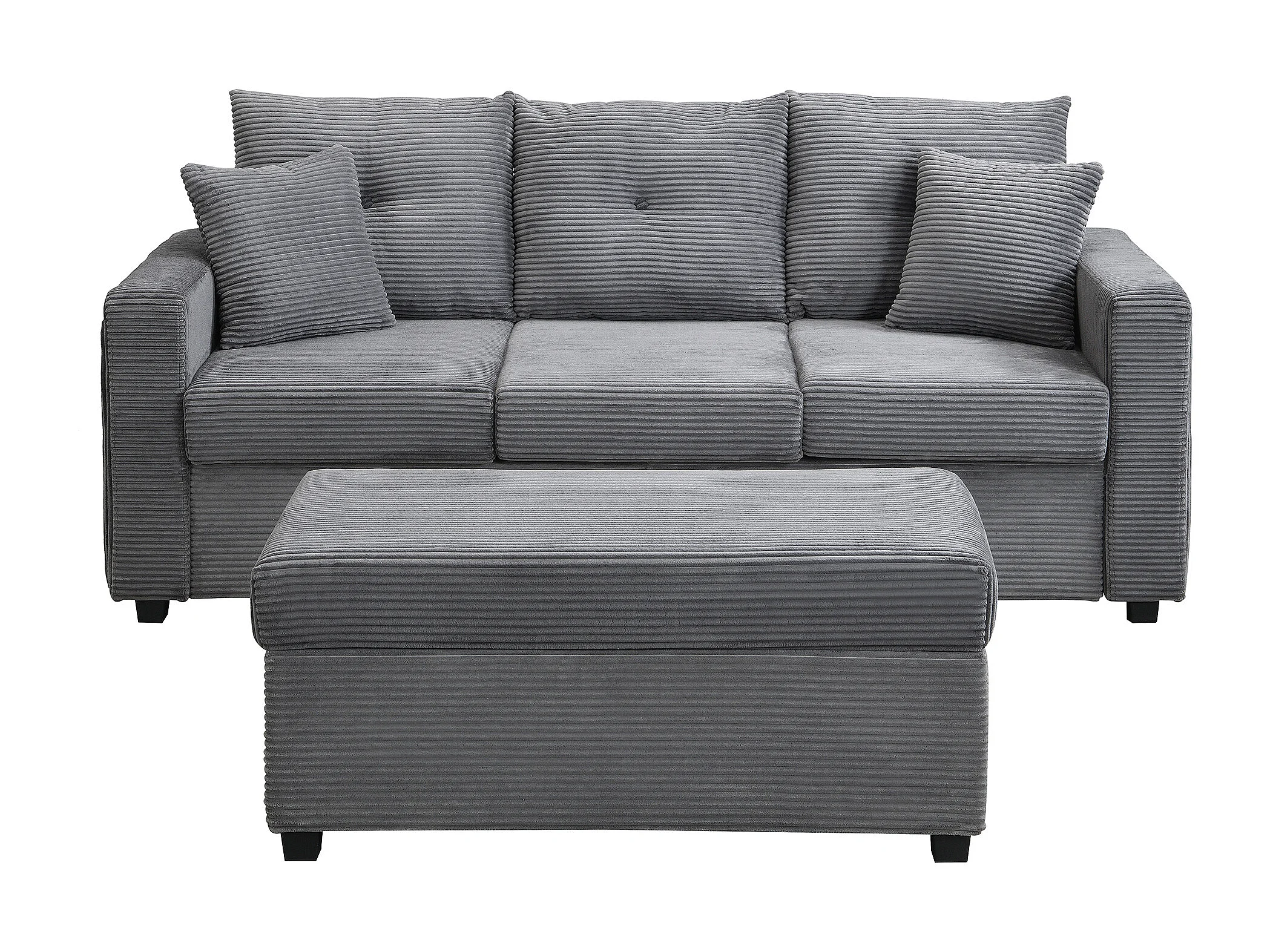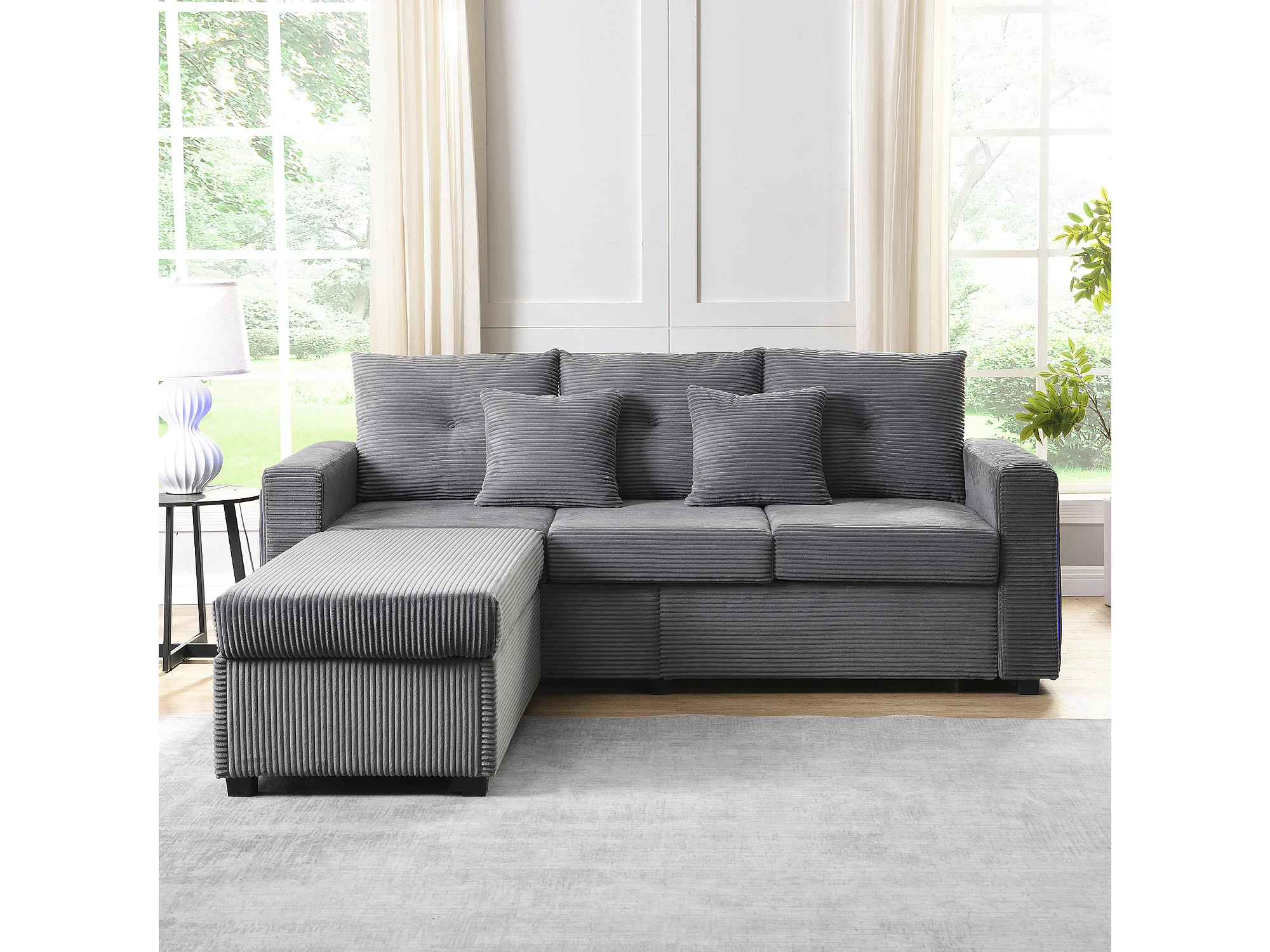 Sofa 3-osobowa, Narożnik z oświetleniem LED i podnóżkiem - ciemnoszary sztruks