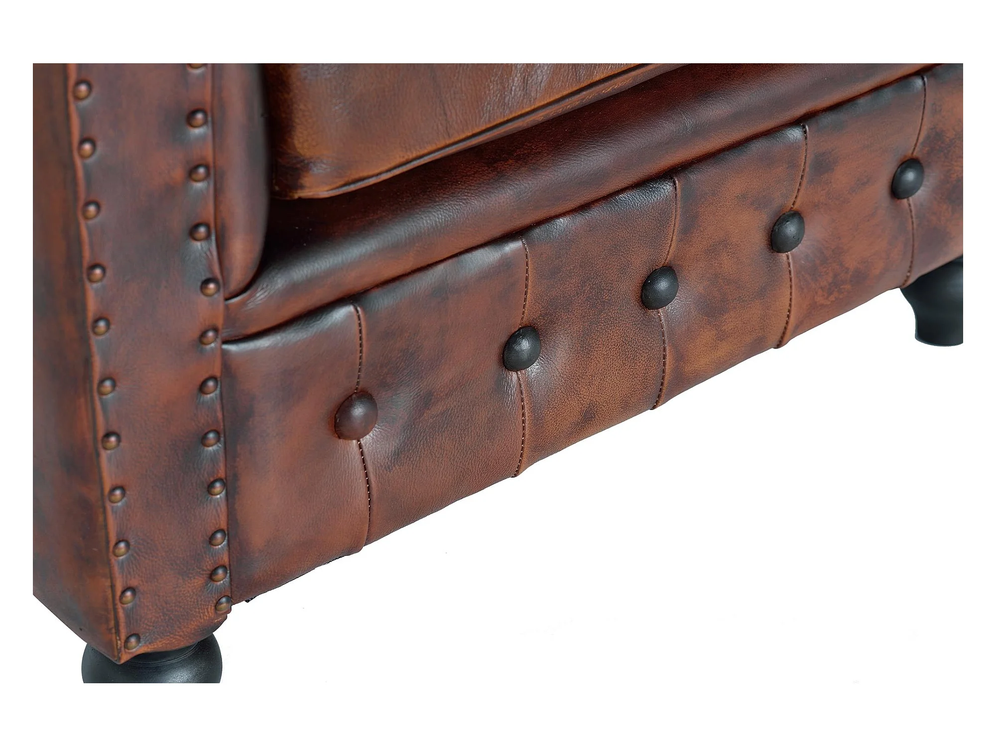 Sofa Chesterfield w brązowej naturalnej skórze, 3 miejsca