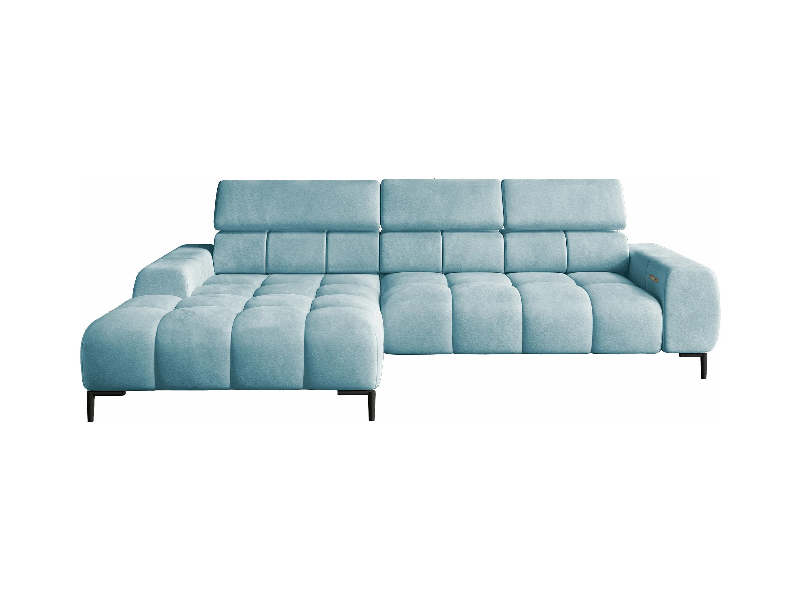 Narożnik LUIS z funkcją spania - Nowoczesny narożnik ze schowkiem 255x165 cm, Sofa Boxspring, Kolor jasnoniebieski, Lewy