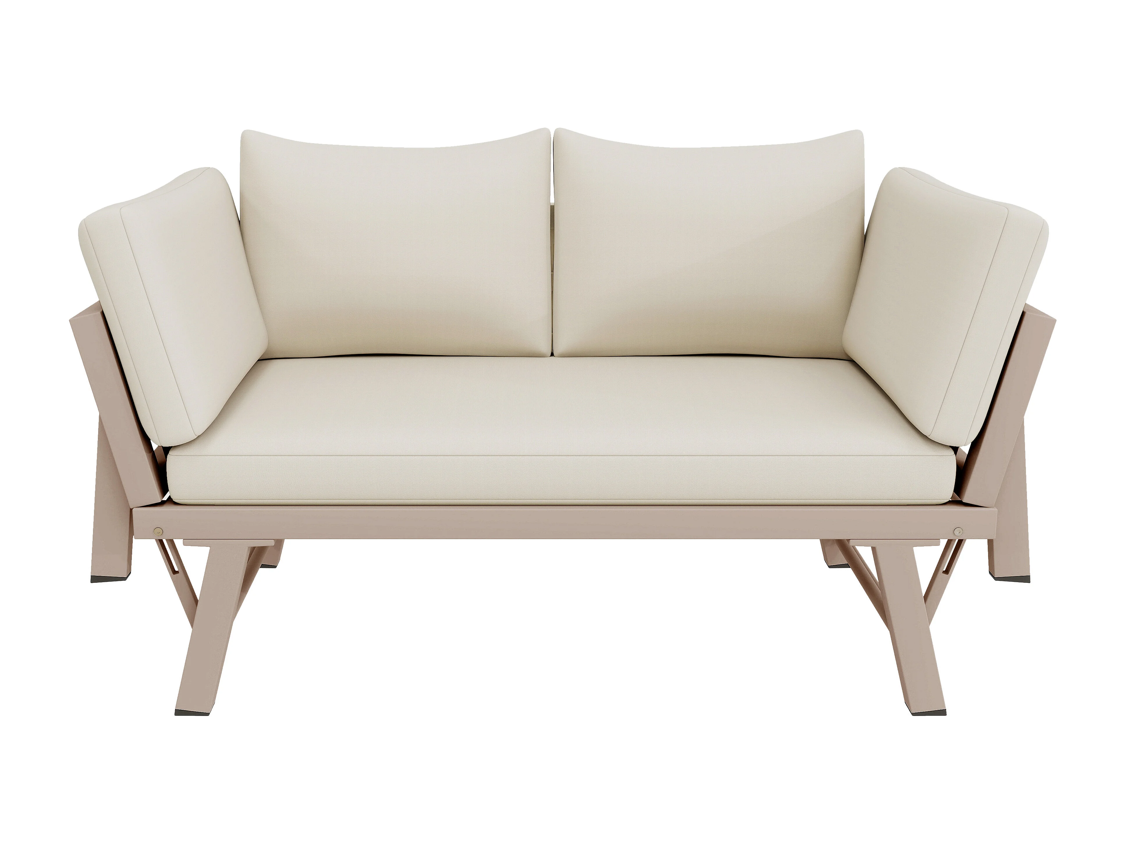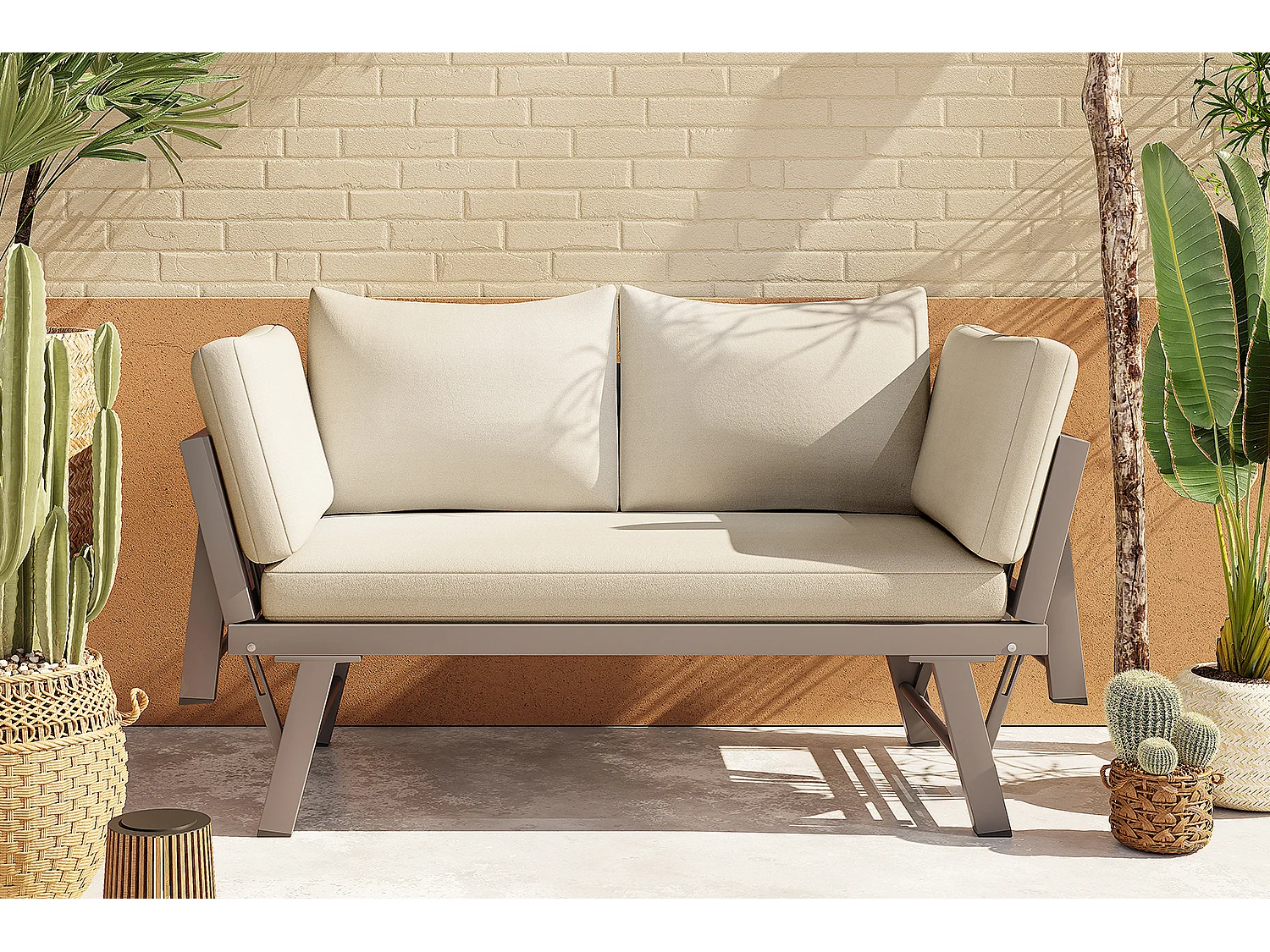 Sofa ogrodowa rozkładana 2-osobowa - 167 x 60,5 x 66 cm - z poduszkami i składanymi podłokietnikami - metalowa - beżowa