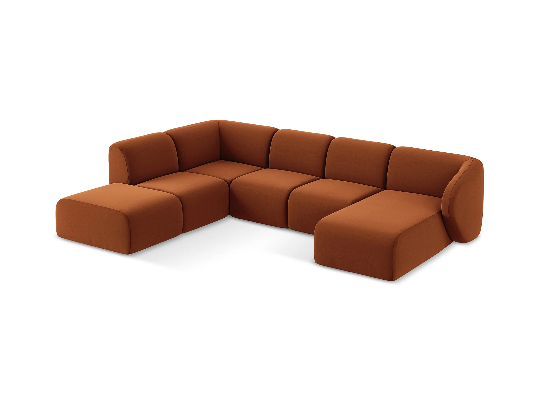 Sofa panoramiczna - z tkaniny welwetowej - terakota - MOKU