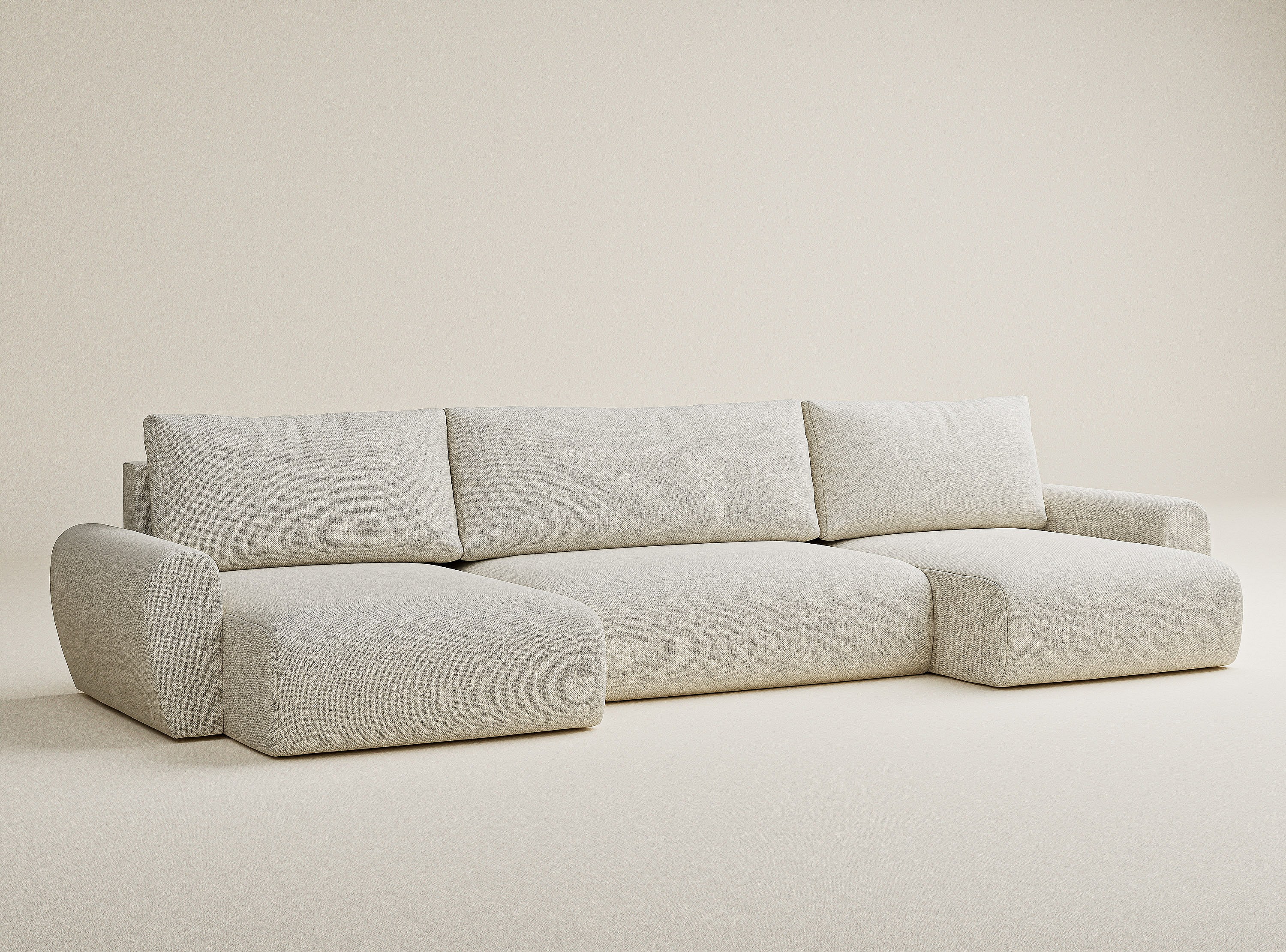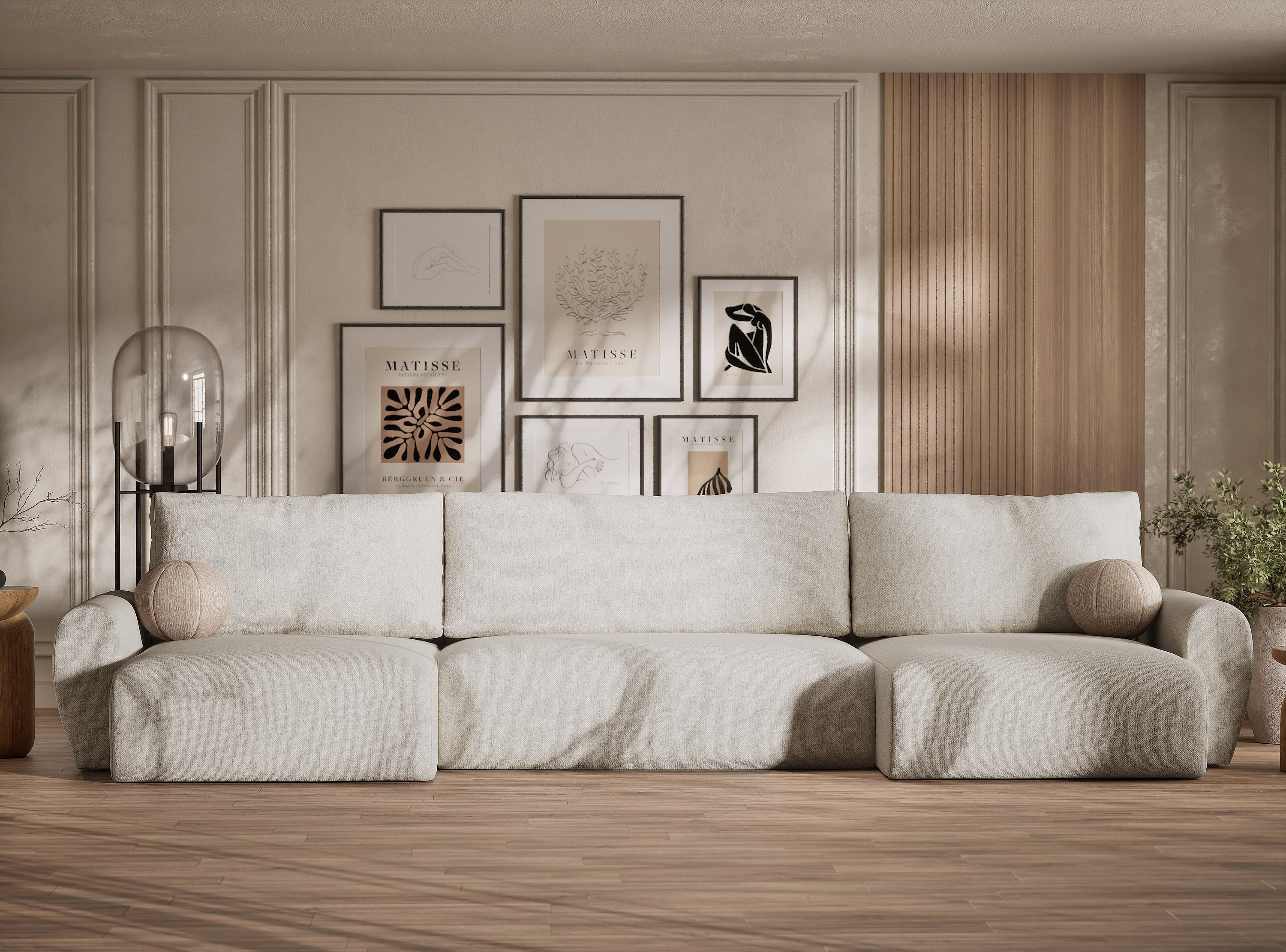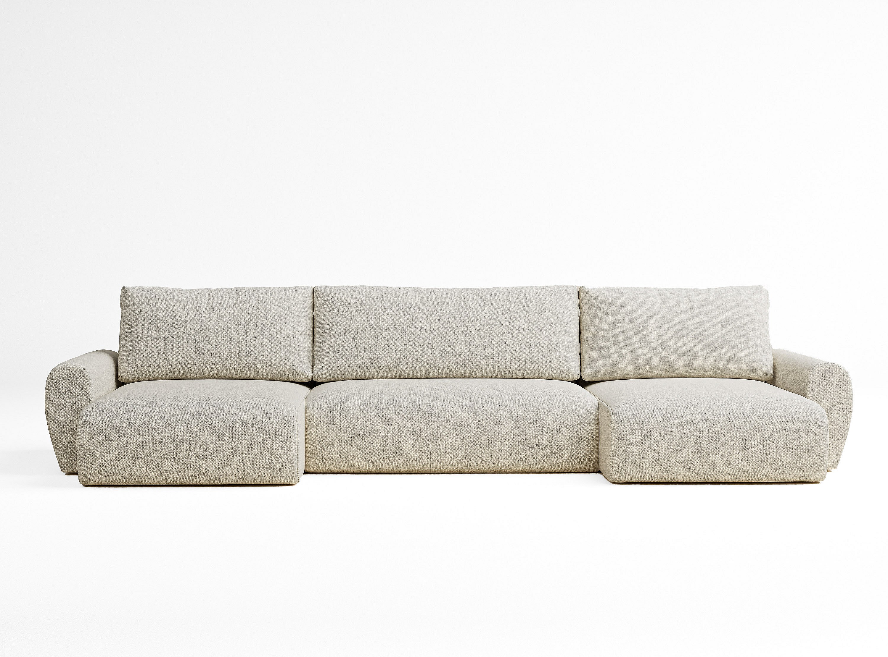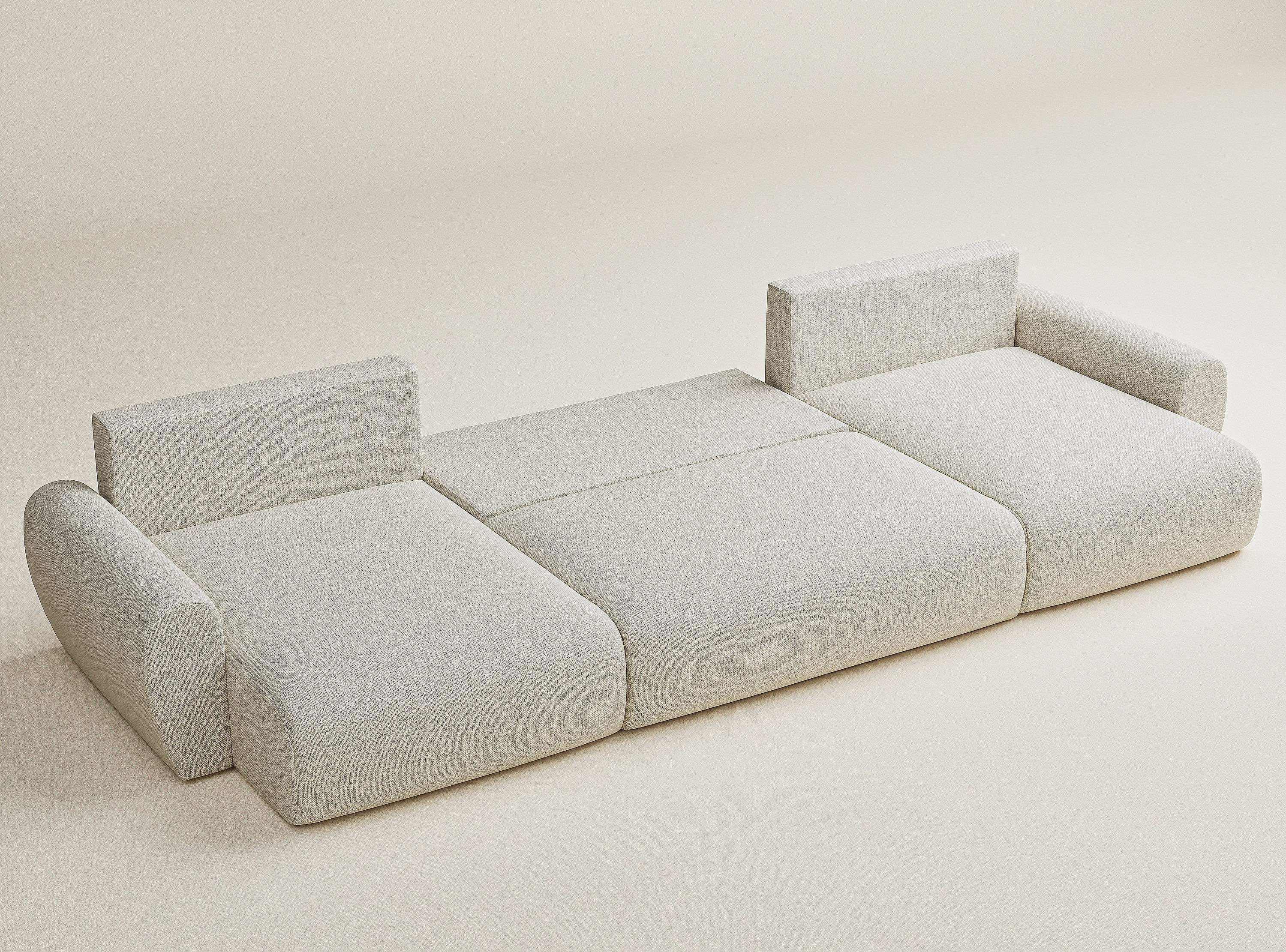 Sofa panoramiczna z funkcją spania Numba w tkaninie plecionej - sześcioosobowa - kremowy