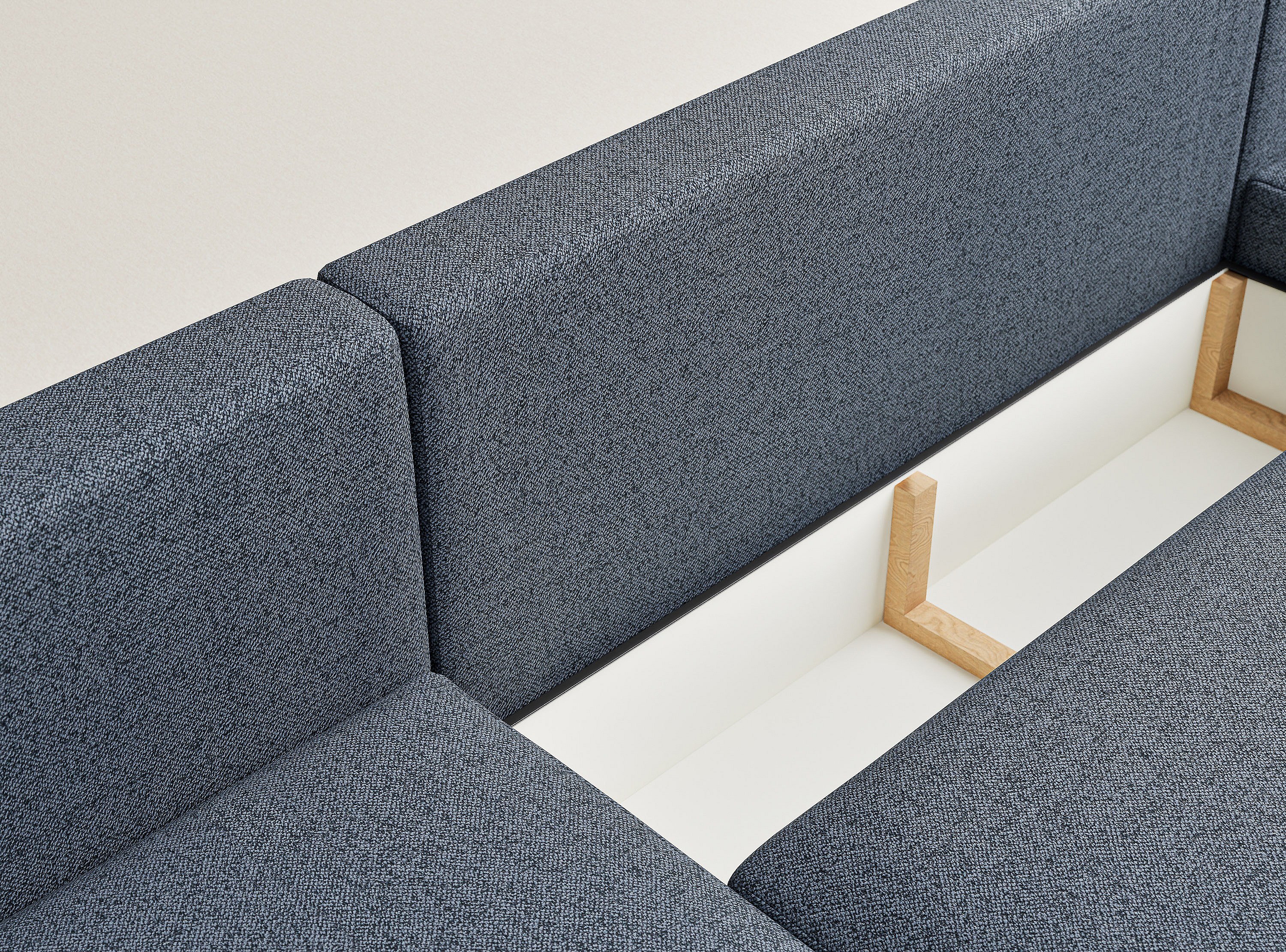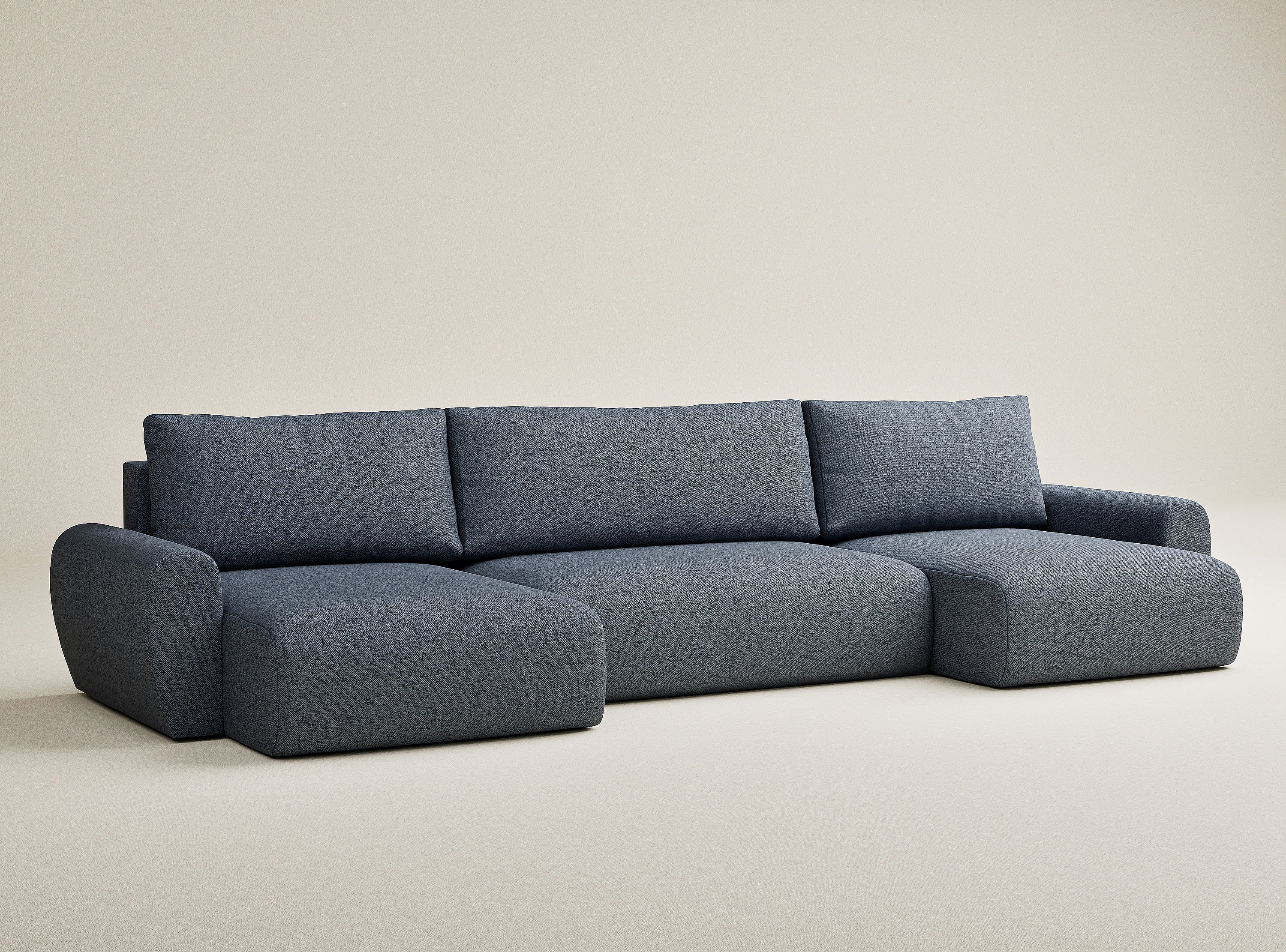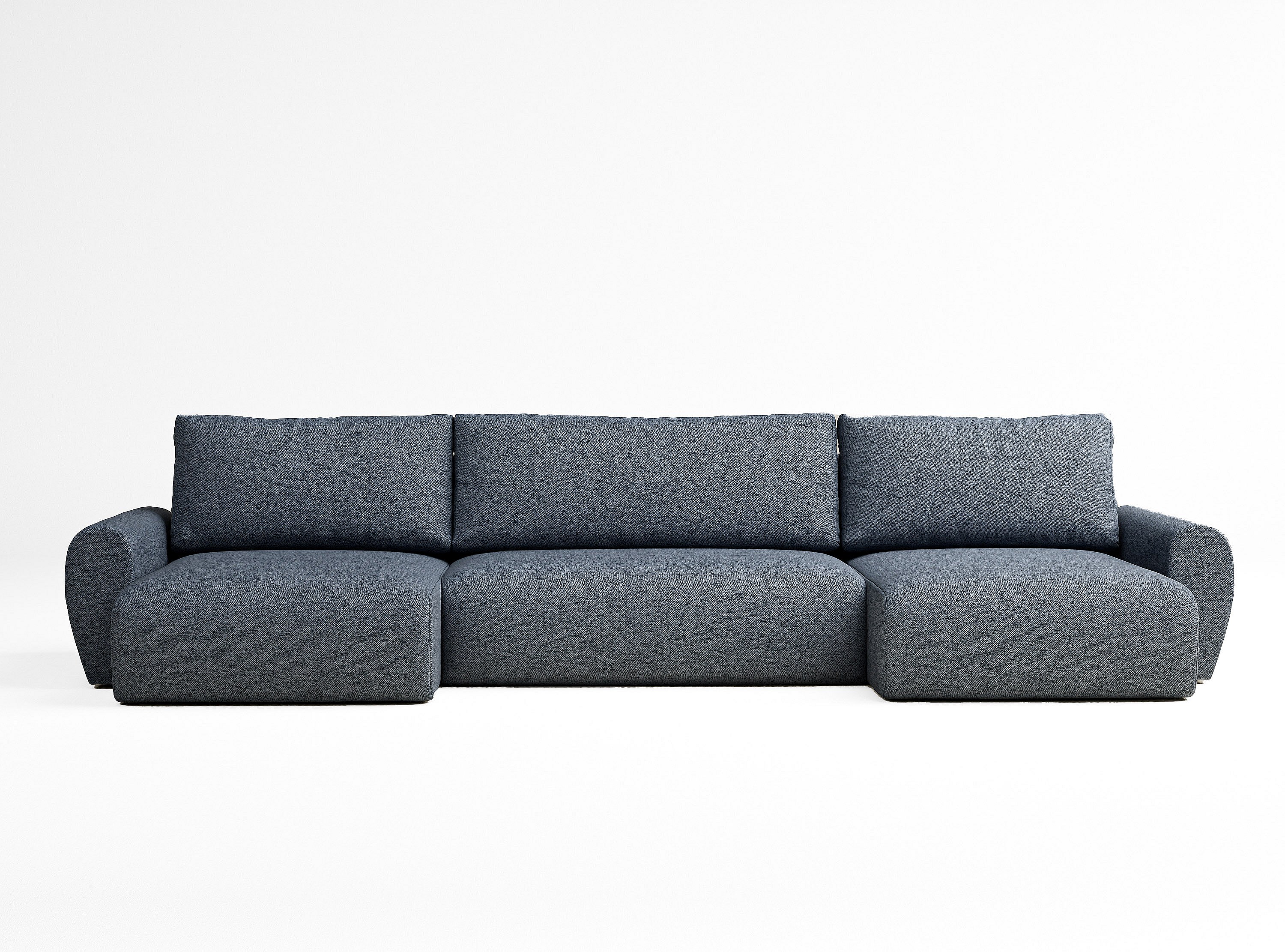 Sofa panoramiczna z funkcją spania Numba w tkaninie plecionej - sześcioosobowa - niebieskoszary