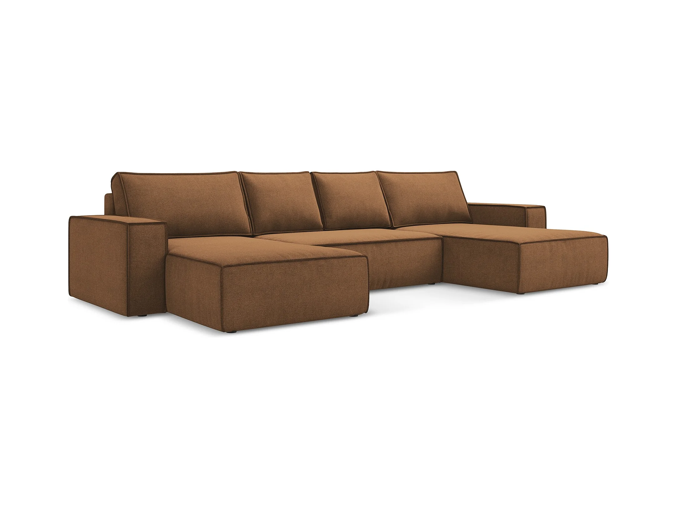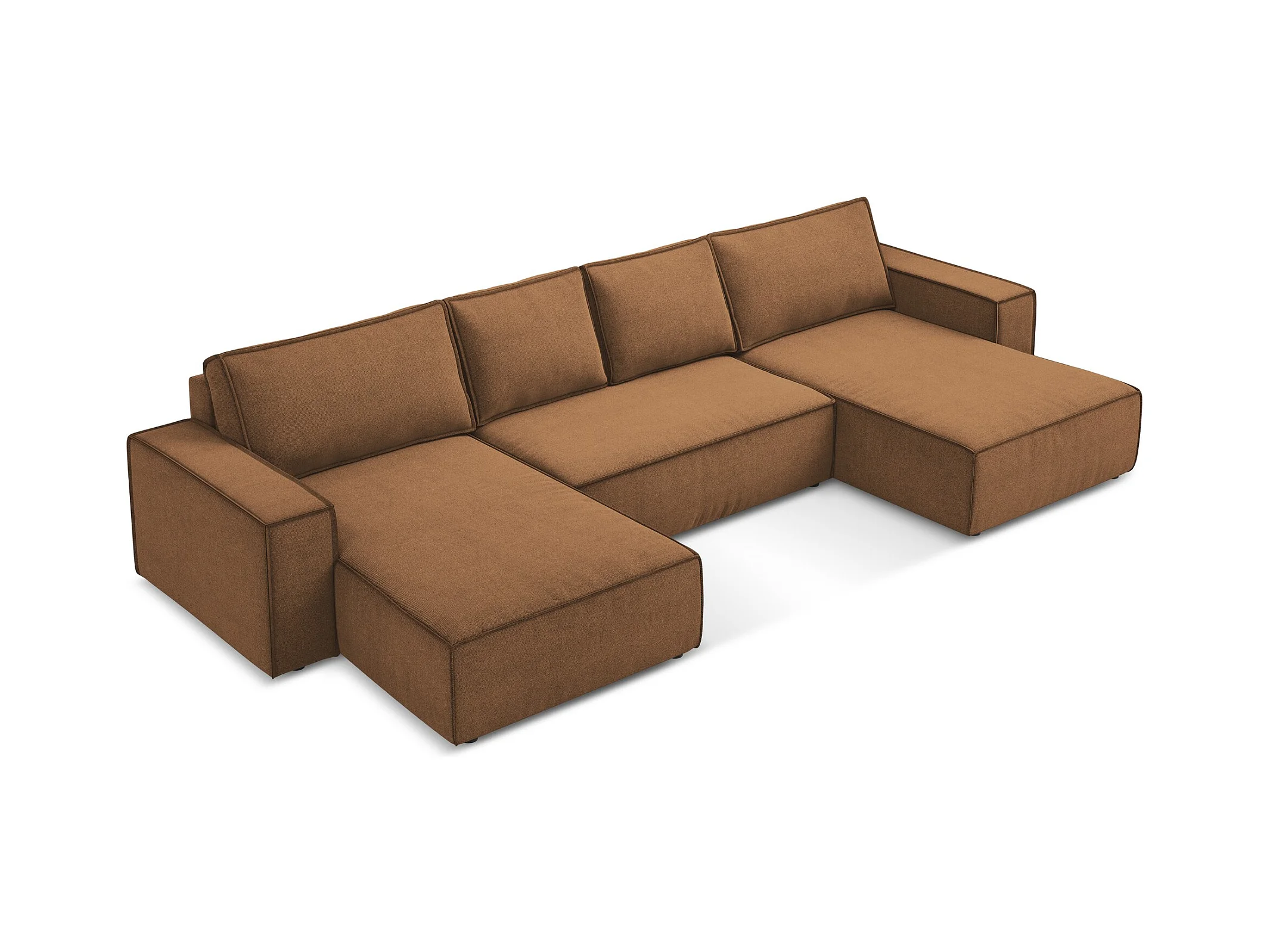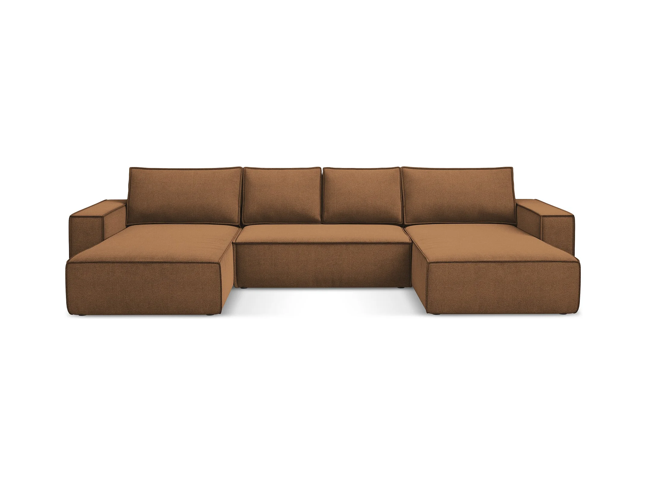 Sofa panoramiczna z funkcją spania - z tkaniny strukturalnej - terakota - KAPUA
