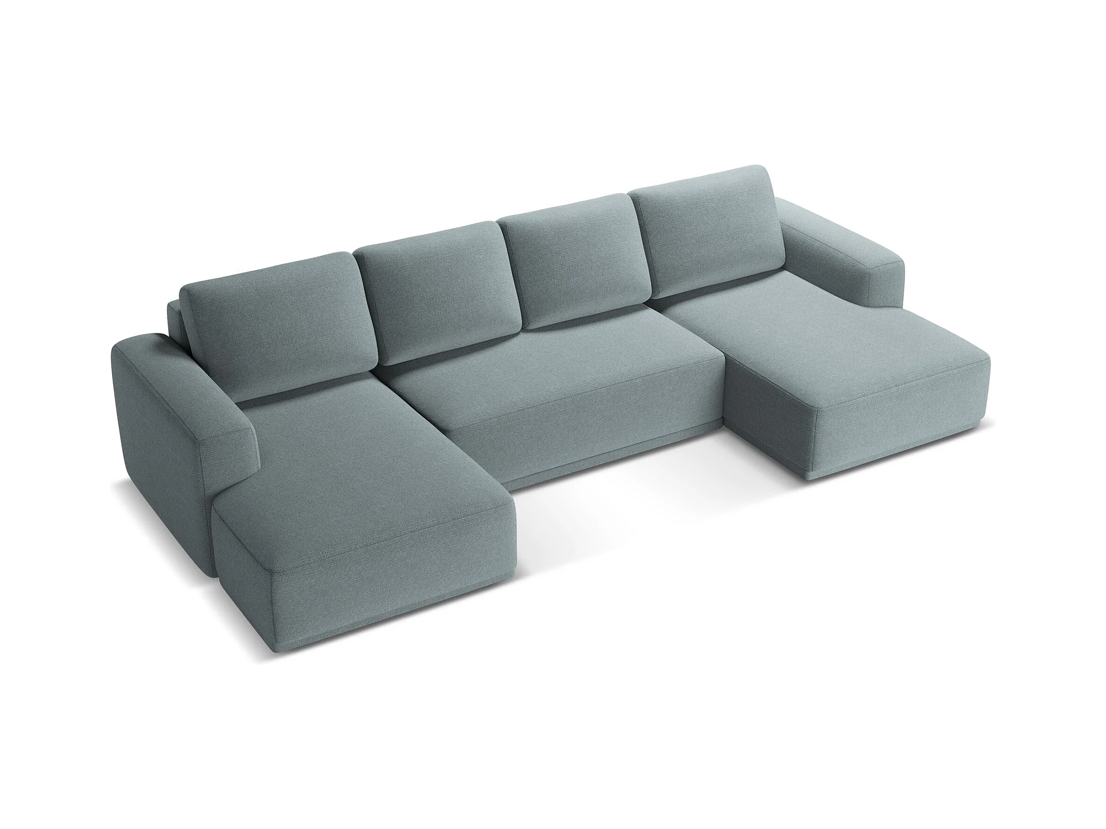 Sofa panoramiczna z funkcją spania - z tkaniny szenilowej - jasny niebieski - MALIE