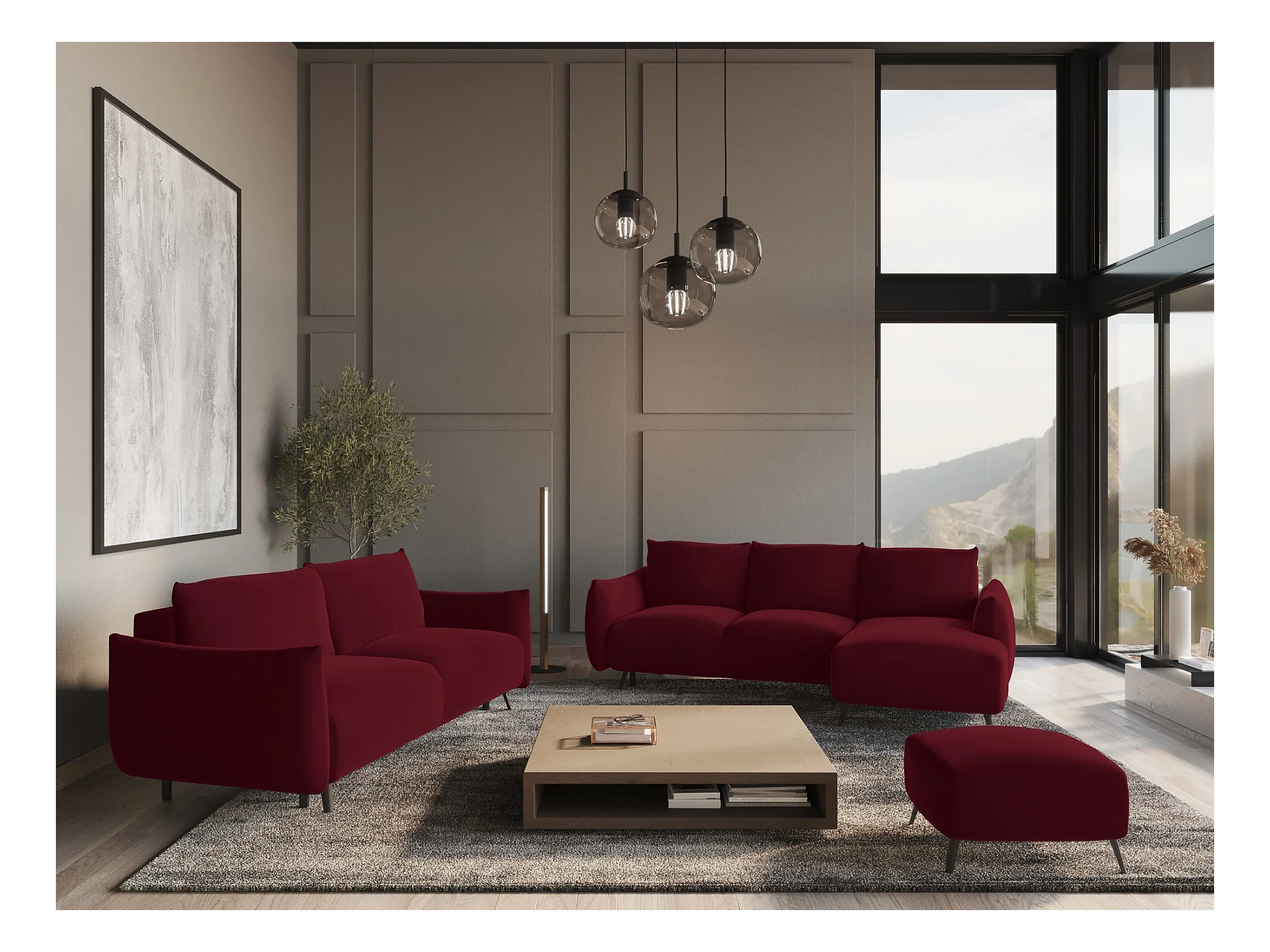 Sofa panoramiczna z funkcją spania - z tkaniny welwetowej - burgundowy - KIMO