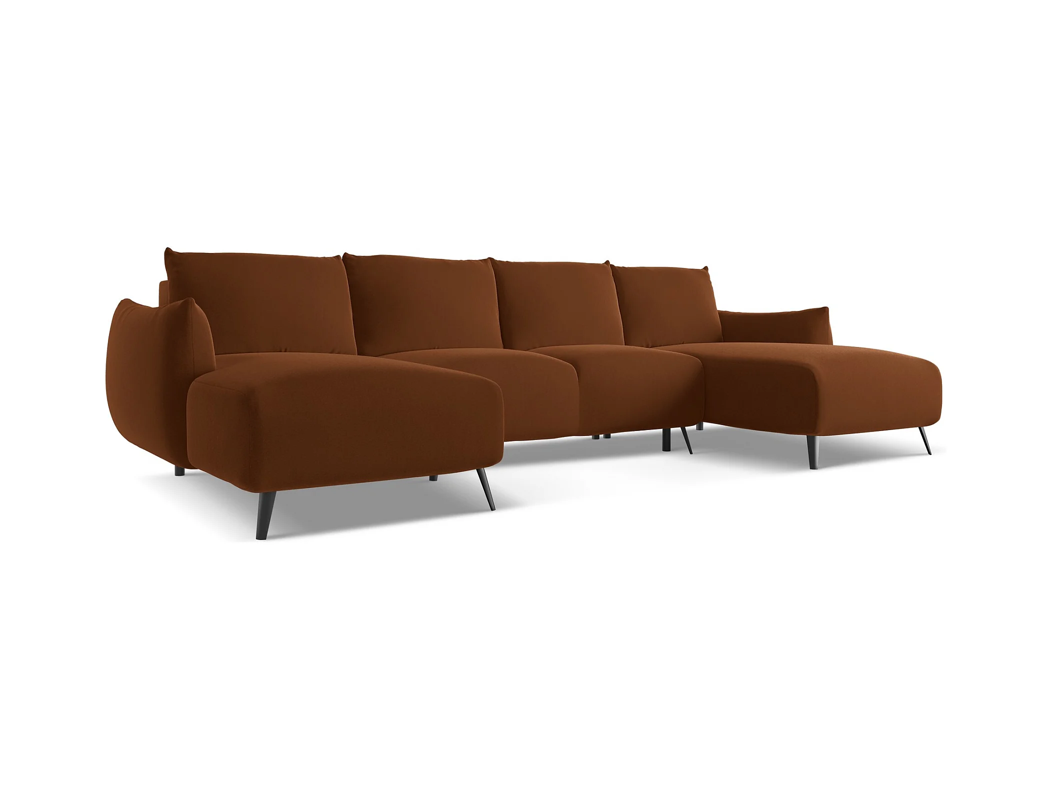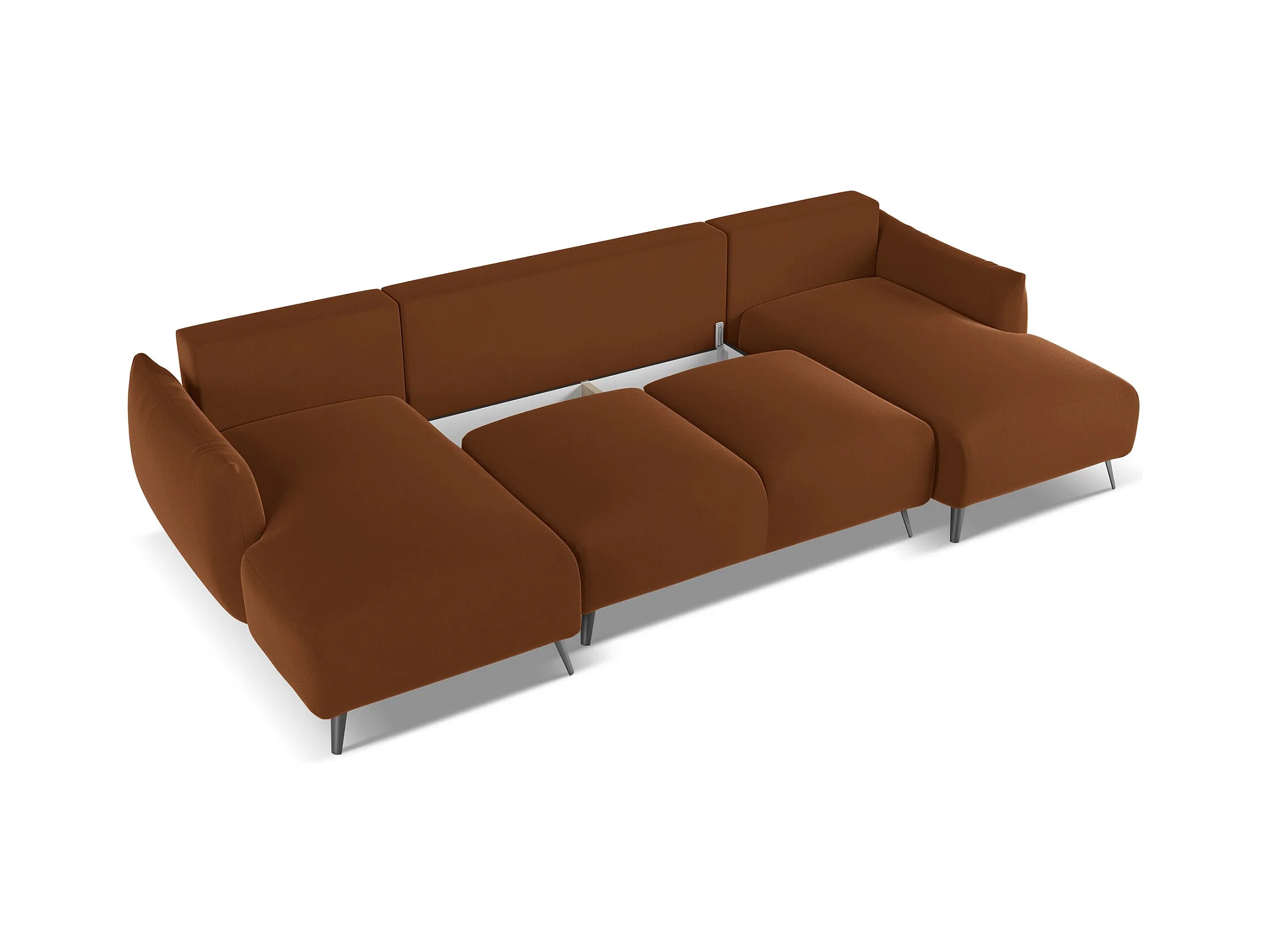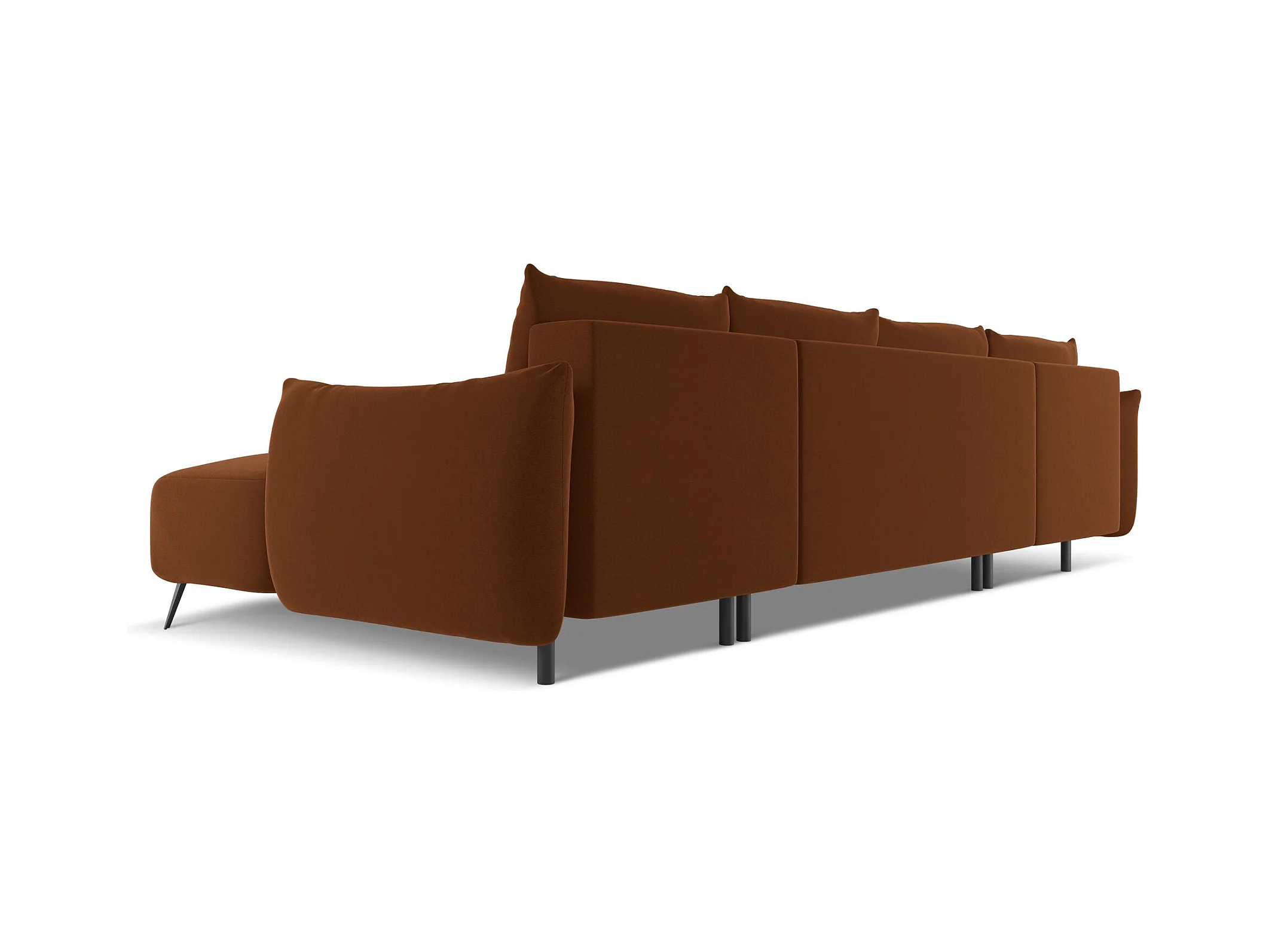 Sofa panoramiczna z funkcją spania - z tkaniny welwetowej - terakota - NANEA