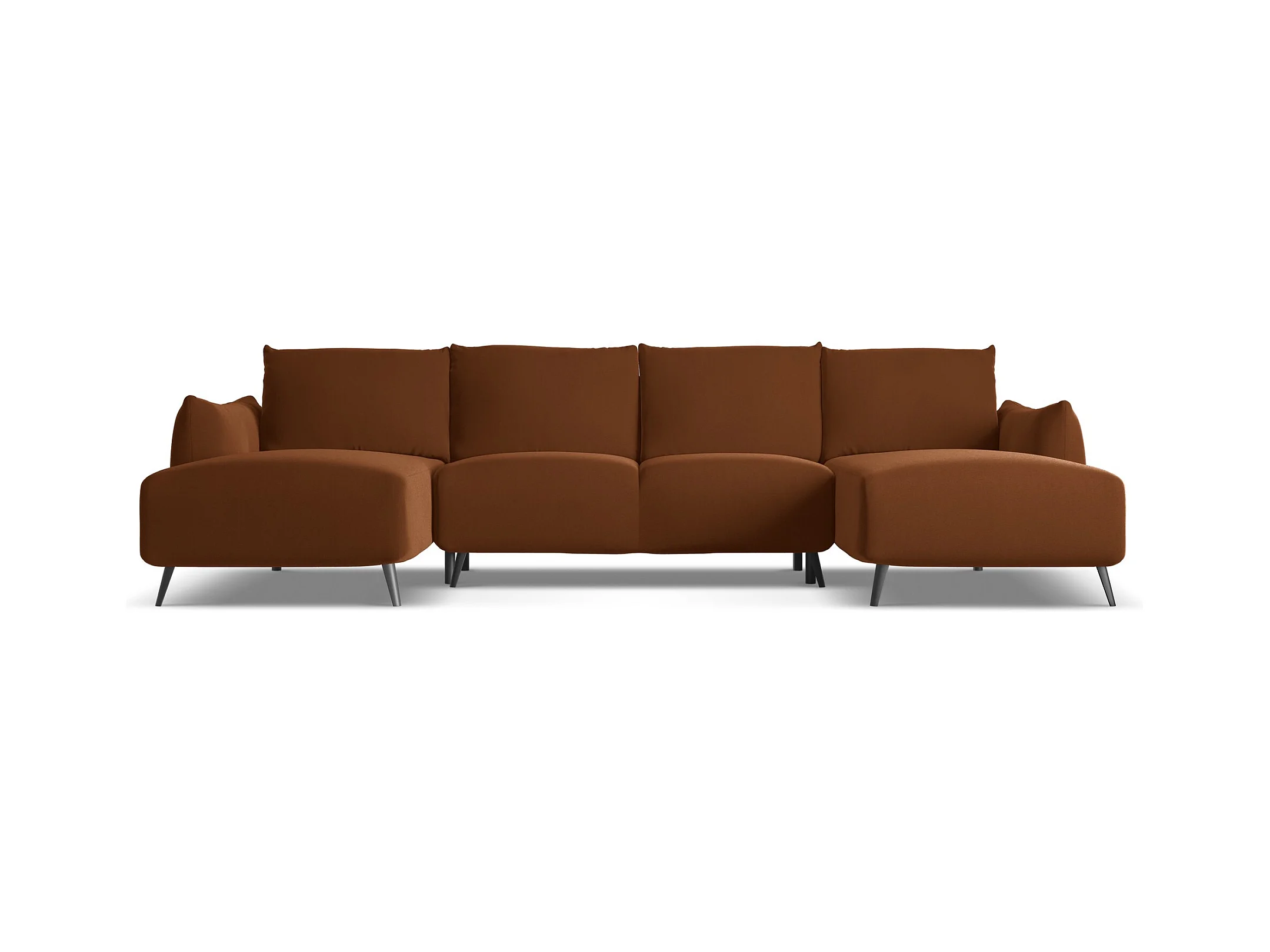 Sofa panoramiczna z funkcją spania - z tkaniny strukturalnej - terakota - NANEA