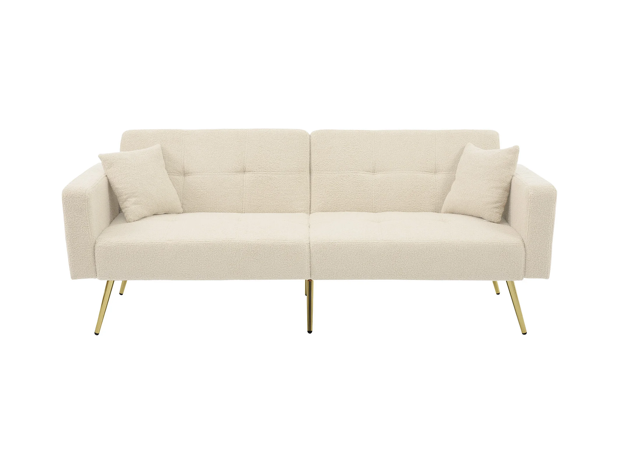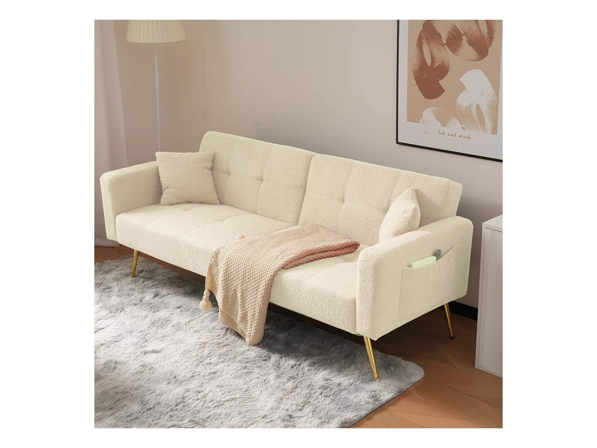 Sofa rozkładana 2-osobowa z tkaniny Sherpa - 175 x 64 x 72 cm - Złote metalowe nogi - Beżowa