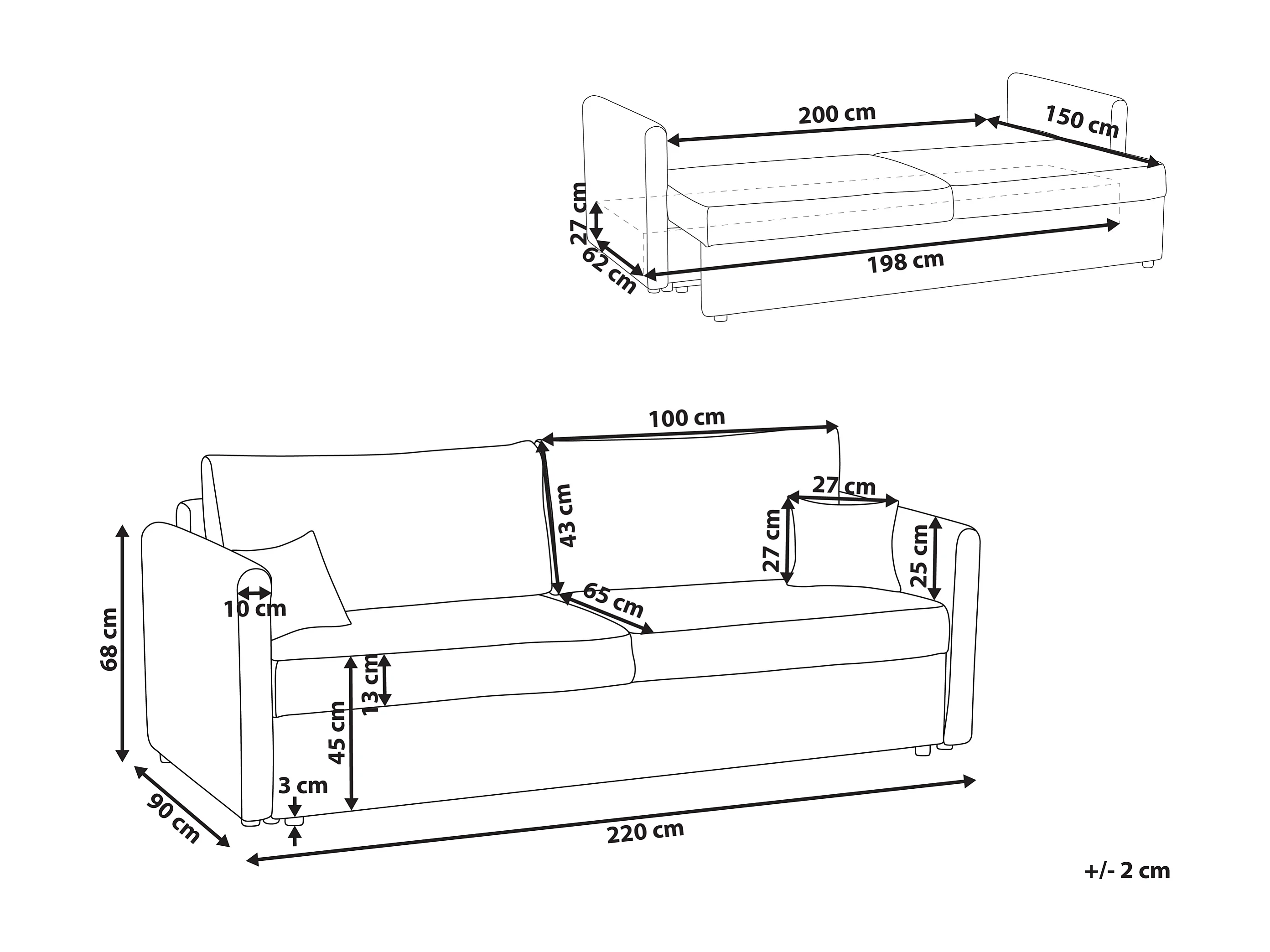 Kanapa rozkładana 2-osobowa Czarny