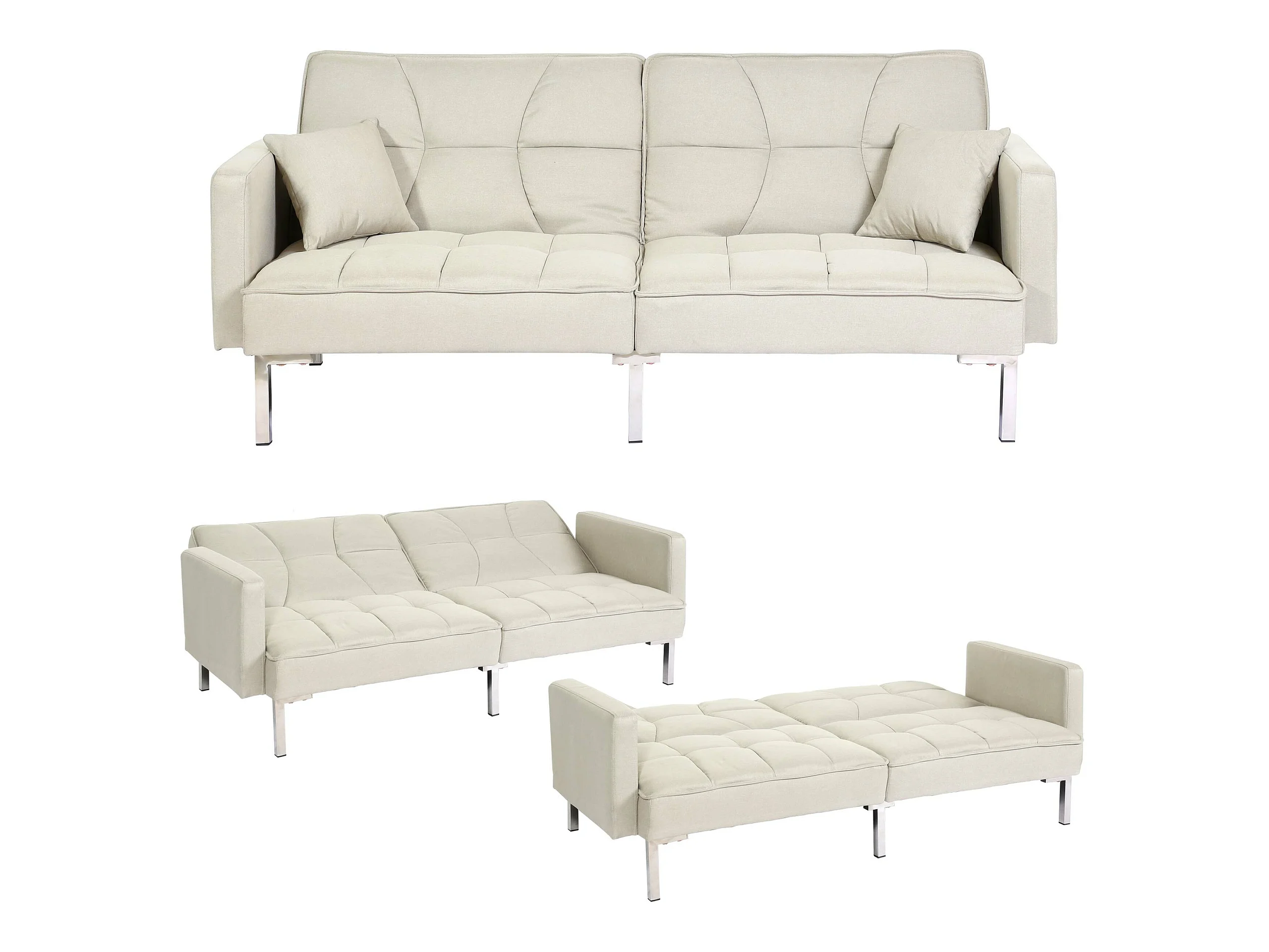 Sofa rozkładana MCW-K65, tkanina/tekstylia kremowo-beżowy