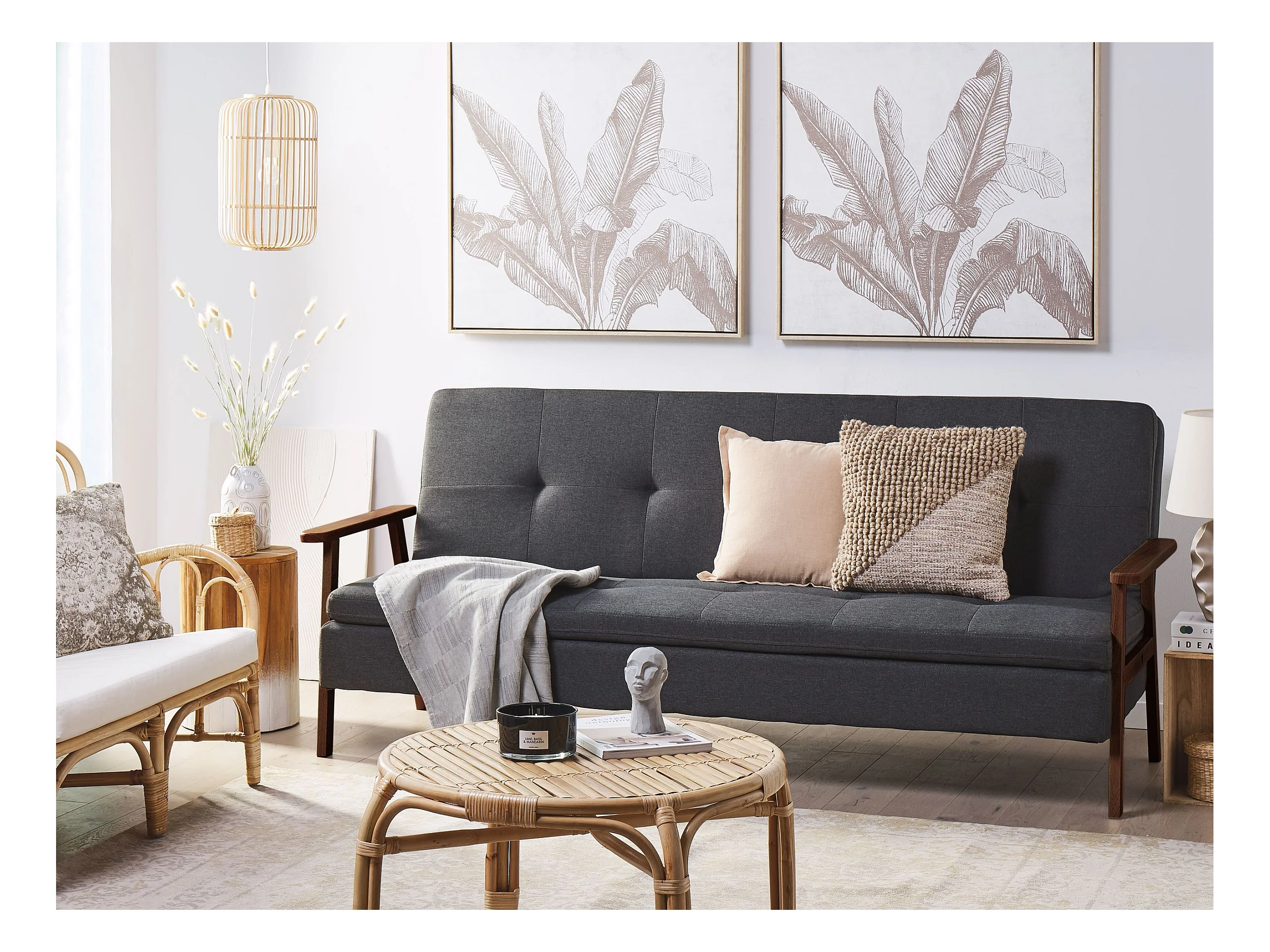 Sofa rozkładana RONNE Jasnoszary dla 3 osób