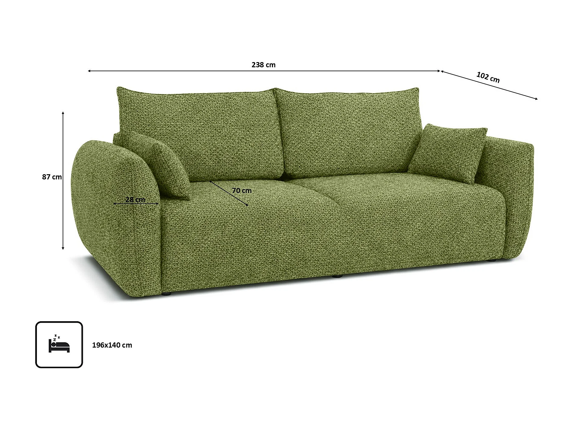 Sofa z funkcją spania i pojemnikiem, tkanina szenilowa Artico, Moss, Zephira