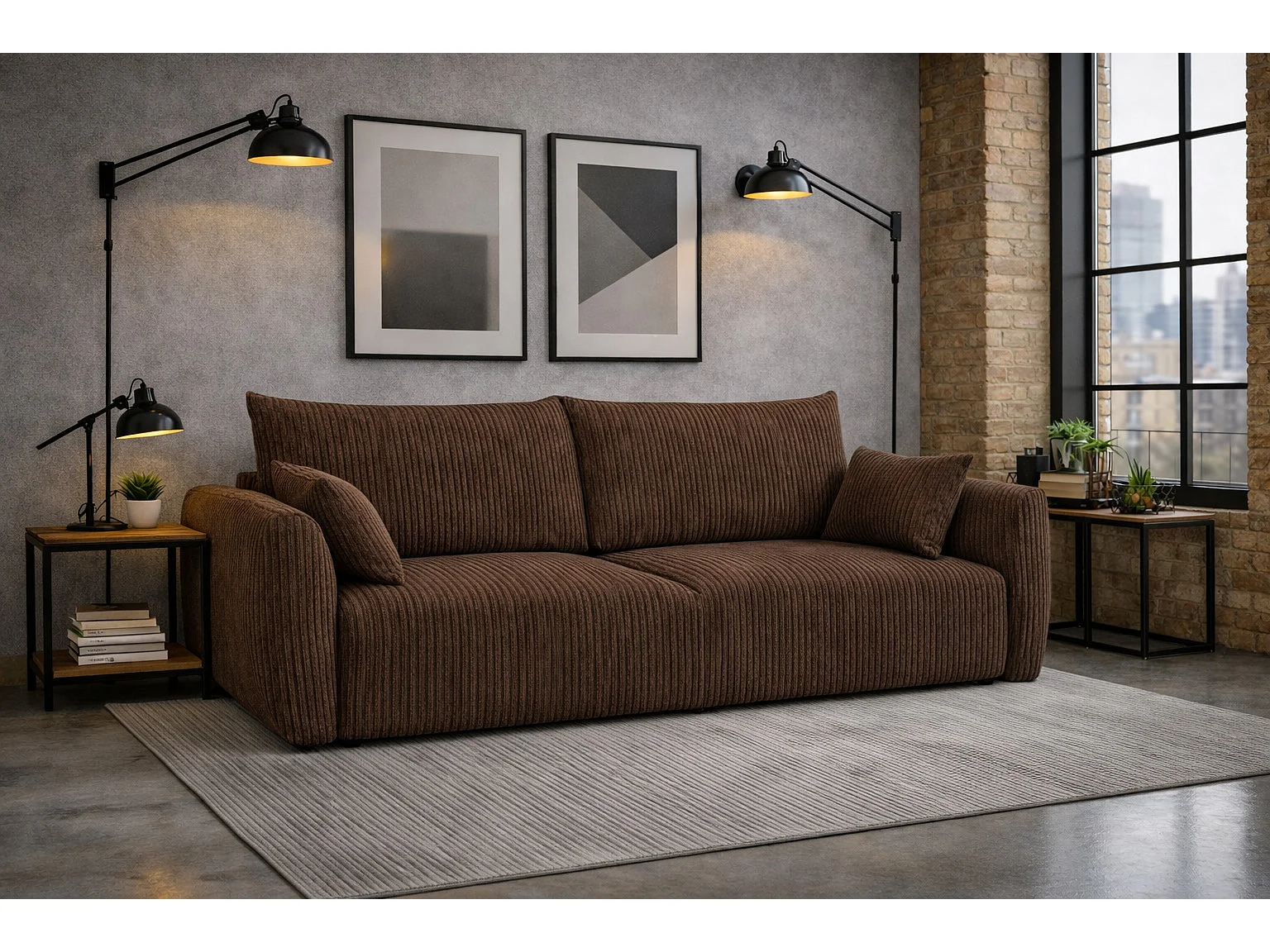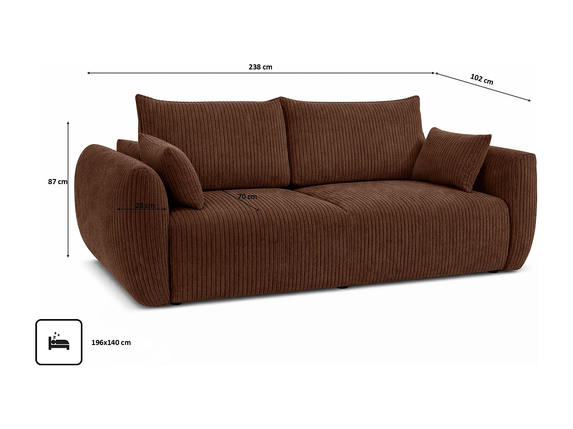 Sofa z funkcją spania i pojemnikiem, tkanina sztruksowa Poso, Brązowy, Zephira