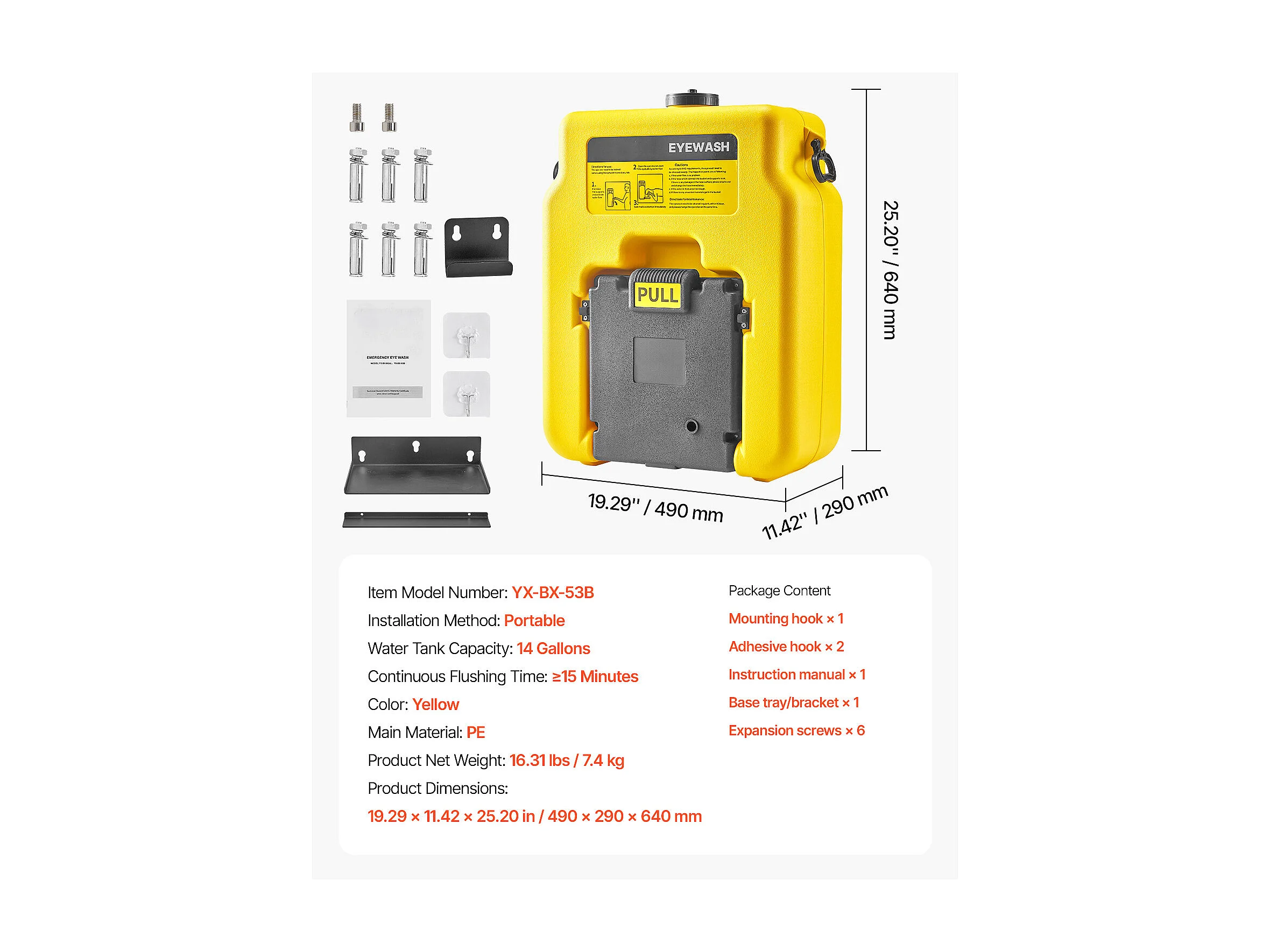 Stacja do Płukania Oczu SucceBuy 53 L, Stacja do Płukania Oczu Zgodna z Normą OSHA do Montażu na Ścianie lub Samodzielnego Użytku,Jednostka dla Szkół