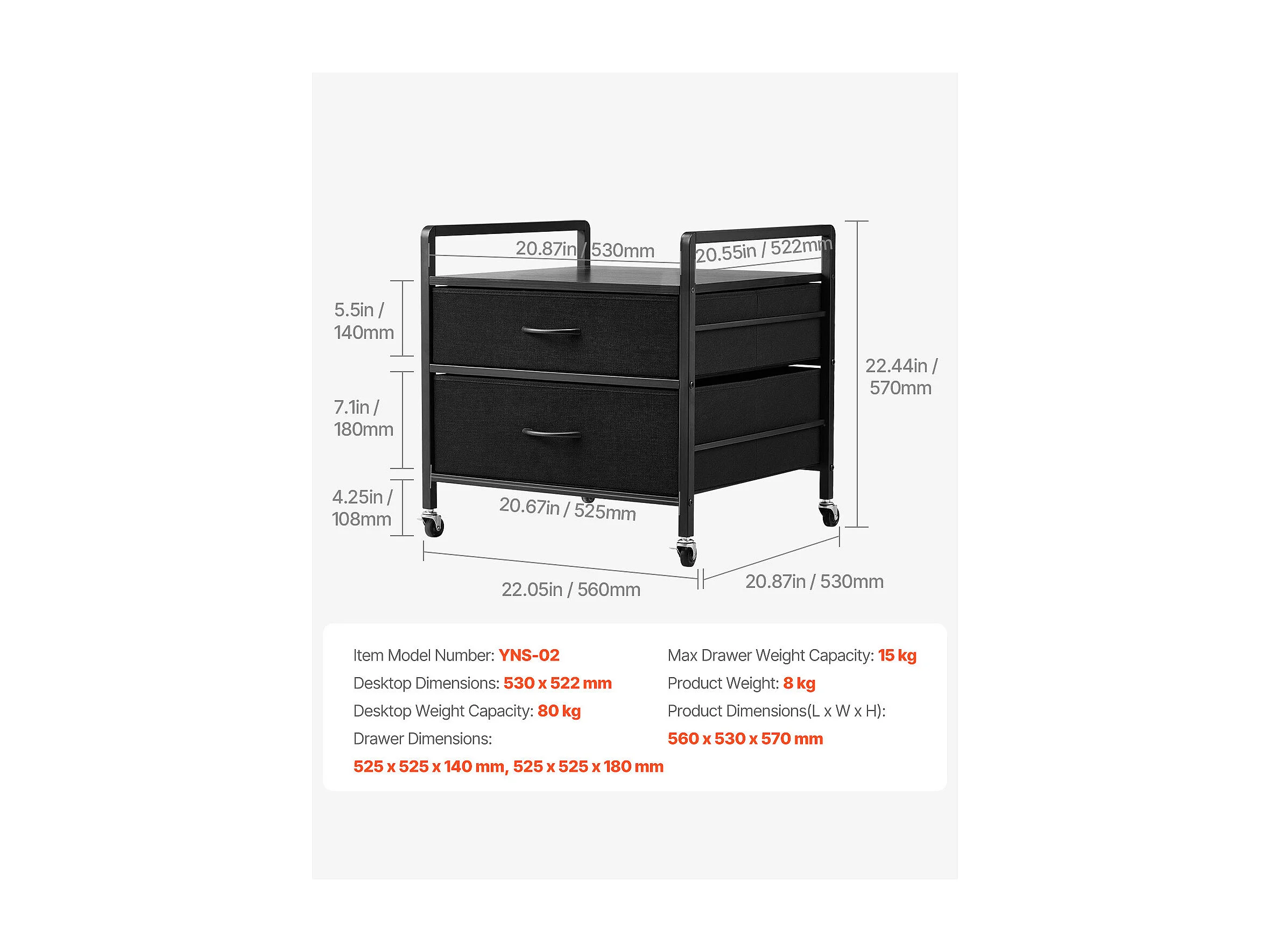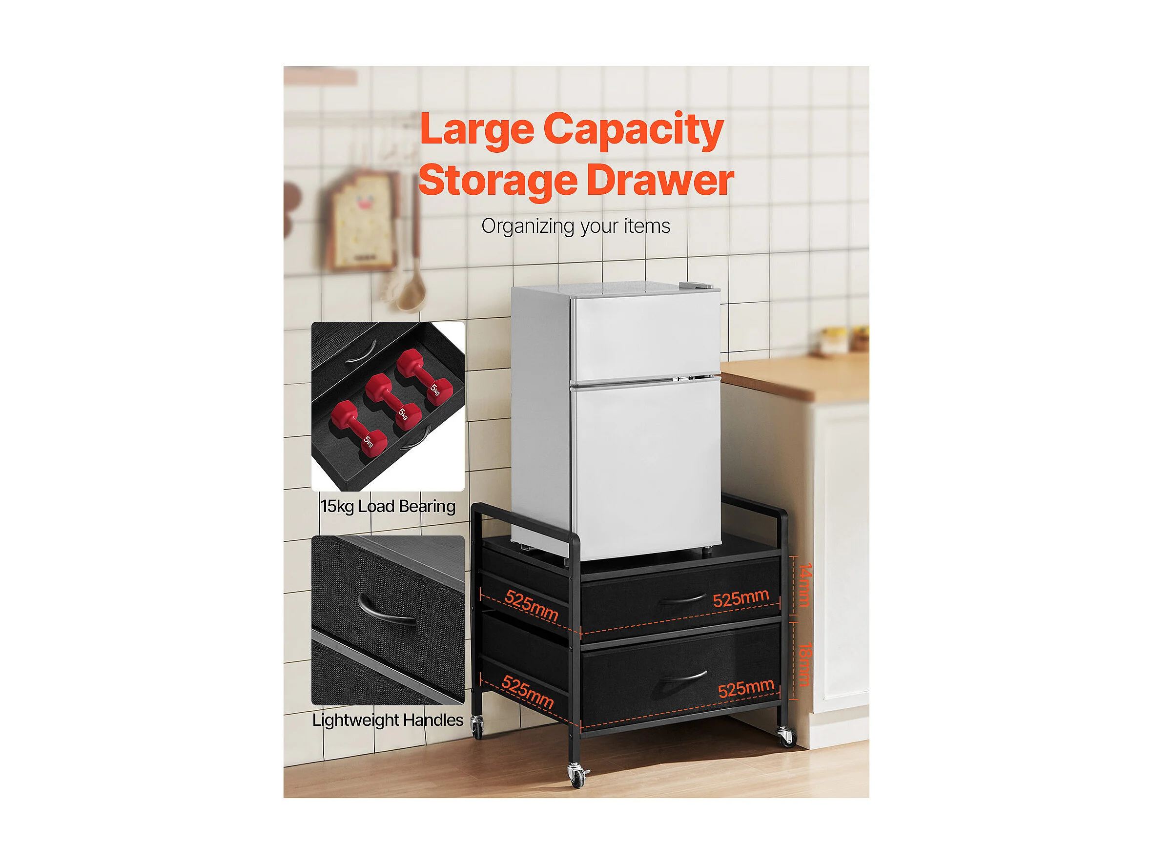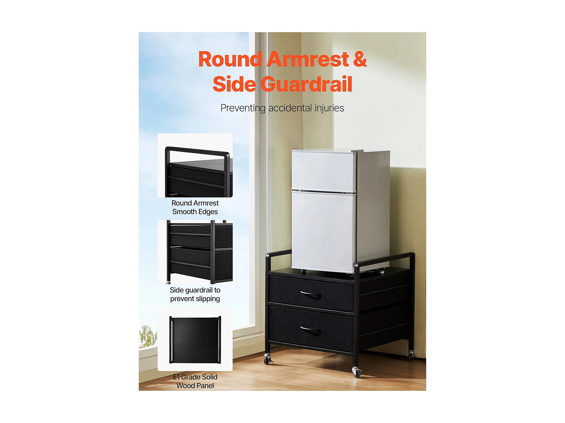 Stojak na Mini Lodówkę SucceBuy, z Miejscem do Przechowywania, Nośność 80 kg, Czarny, Mini Stolik pod Lodówkę z 2 Szufladami