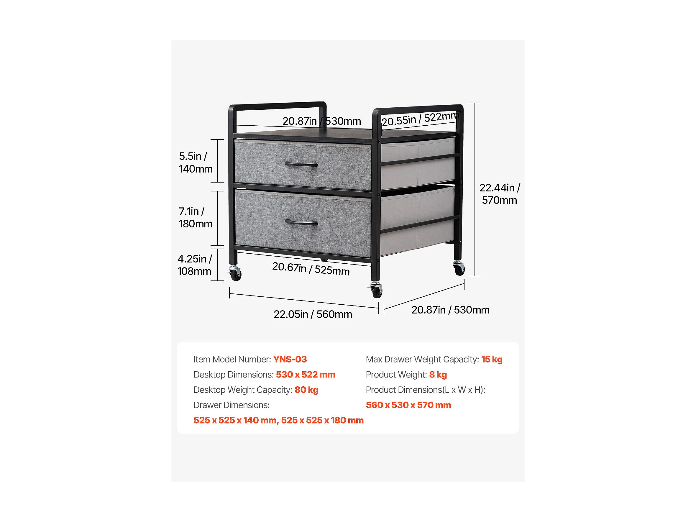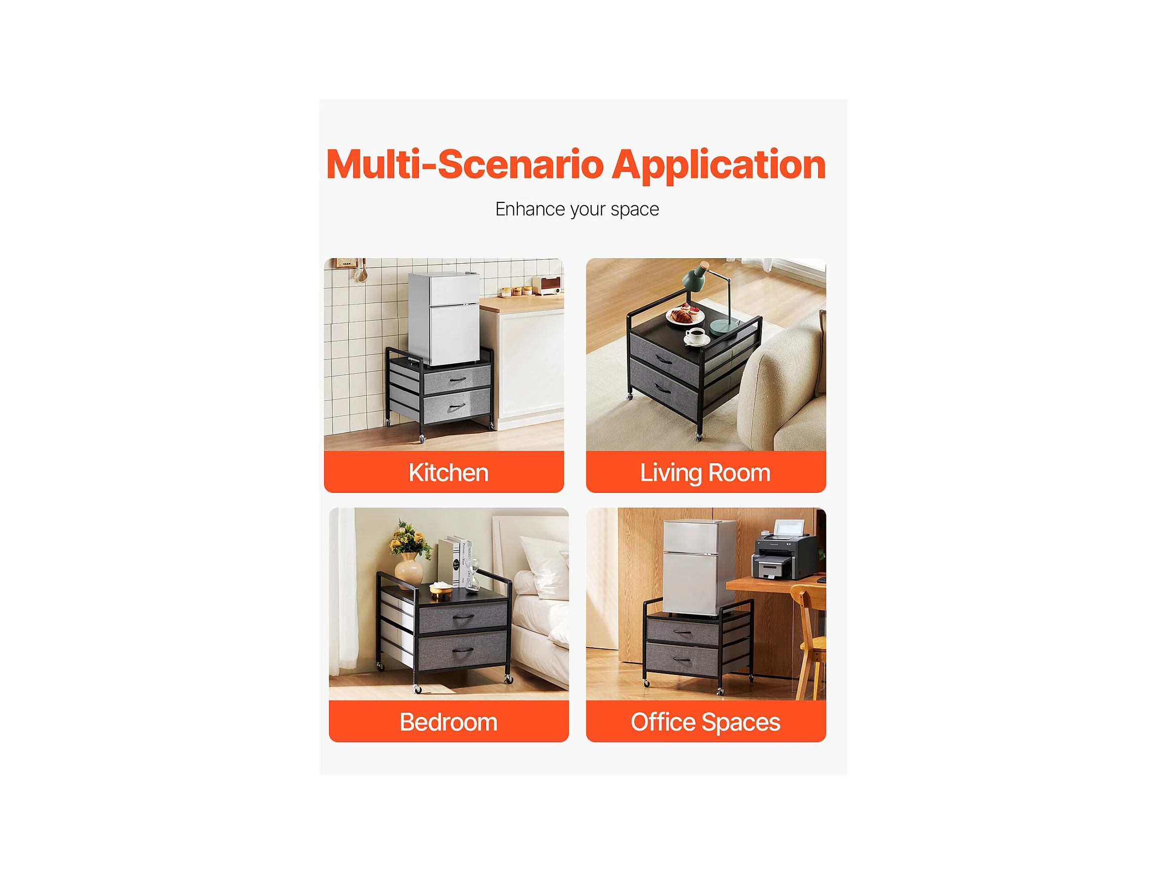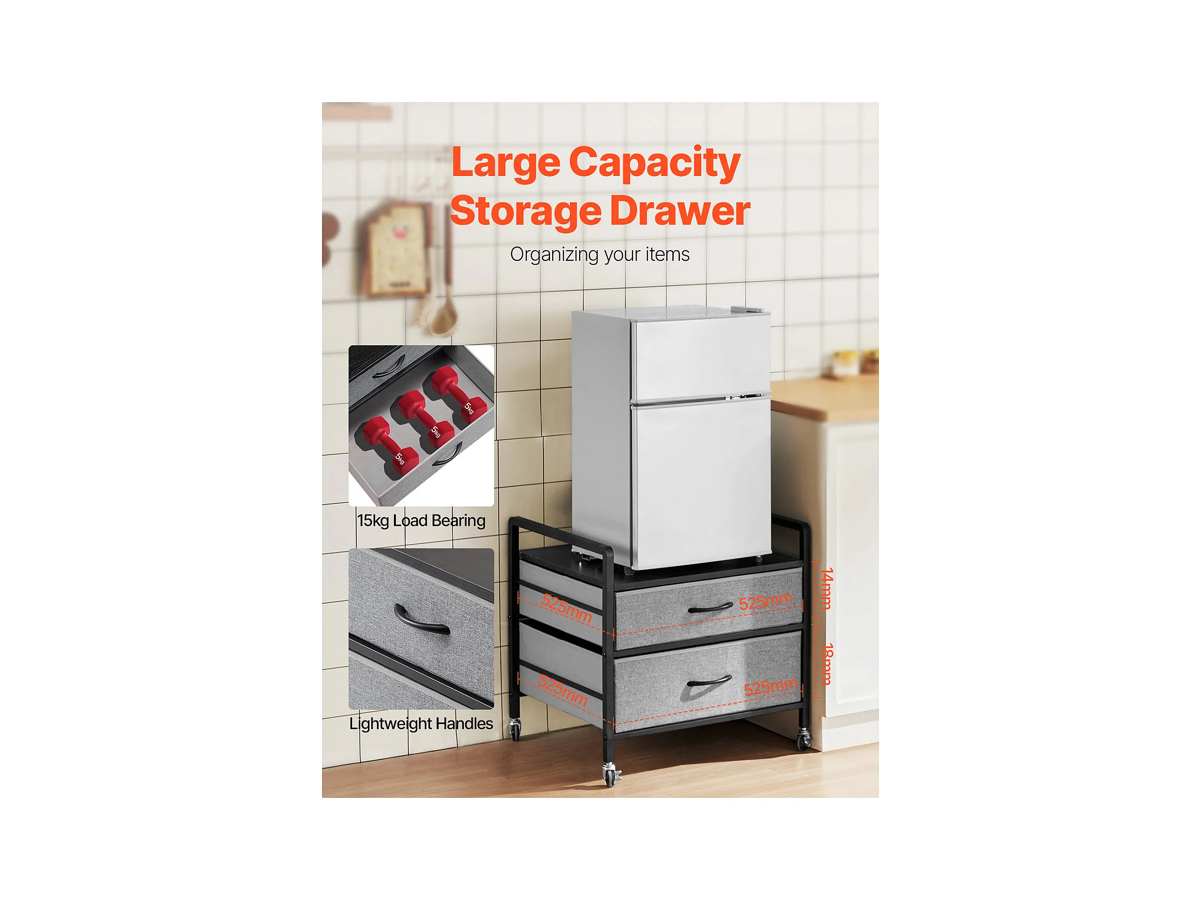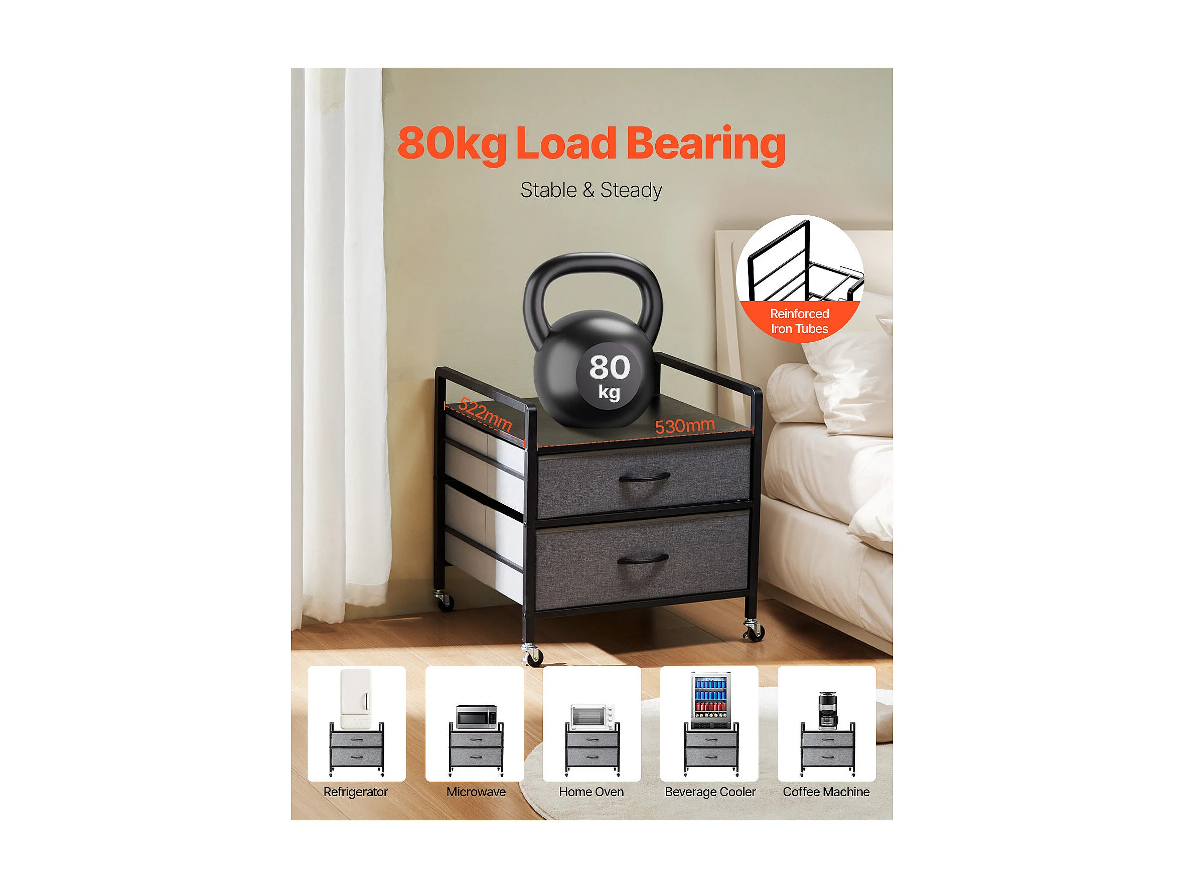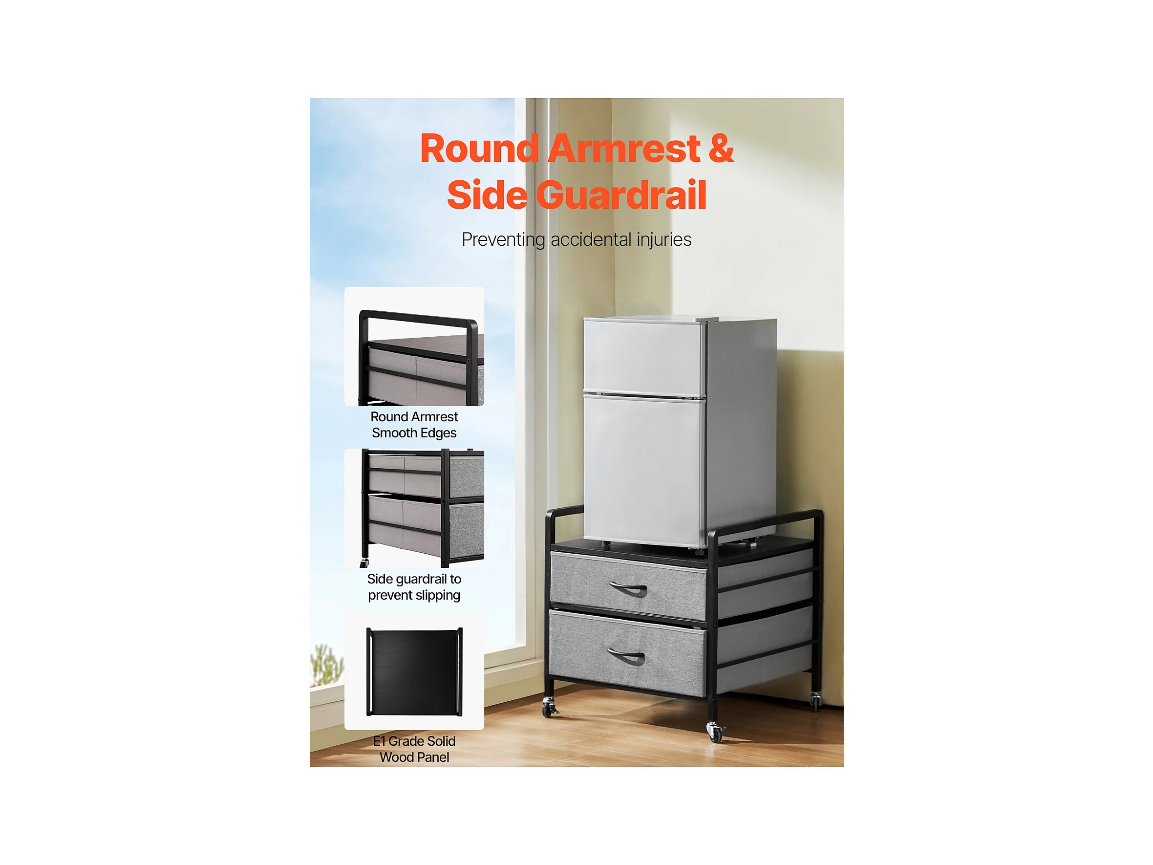 Stojak na Mini Lodówkę SucceBuy, z Miejscem do Przechowywania, Nośność 80 kg, Szary, Mini Stolik pod Lodówkę z 2 Szufladami