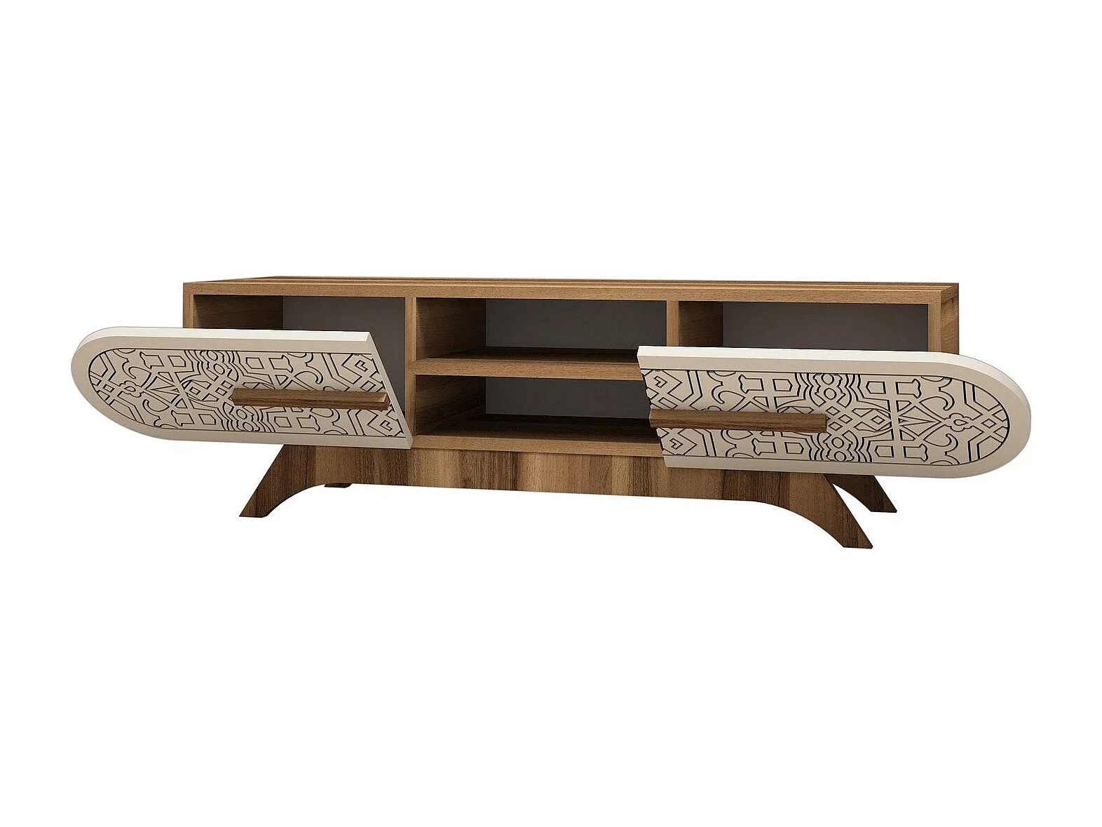 Nowoczesna szafka pod telewizor – 180 x 143 x 30 cm – Kolor biały i orzechowy – Płyta wiórowa pokryta melaminą
