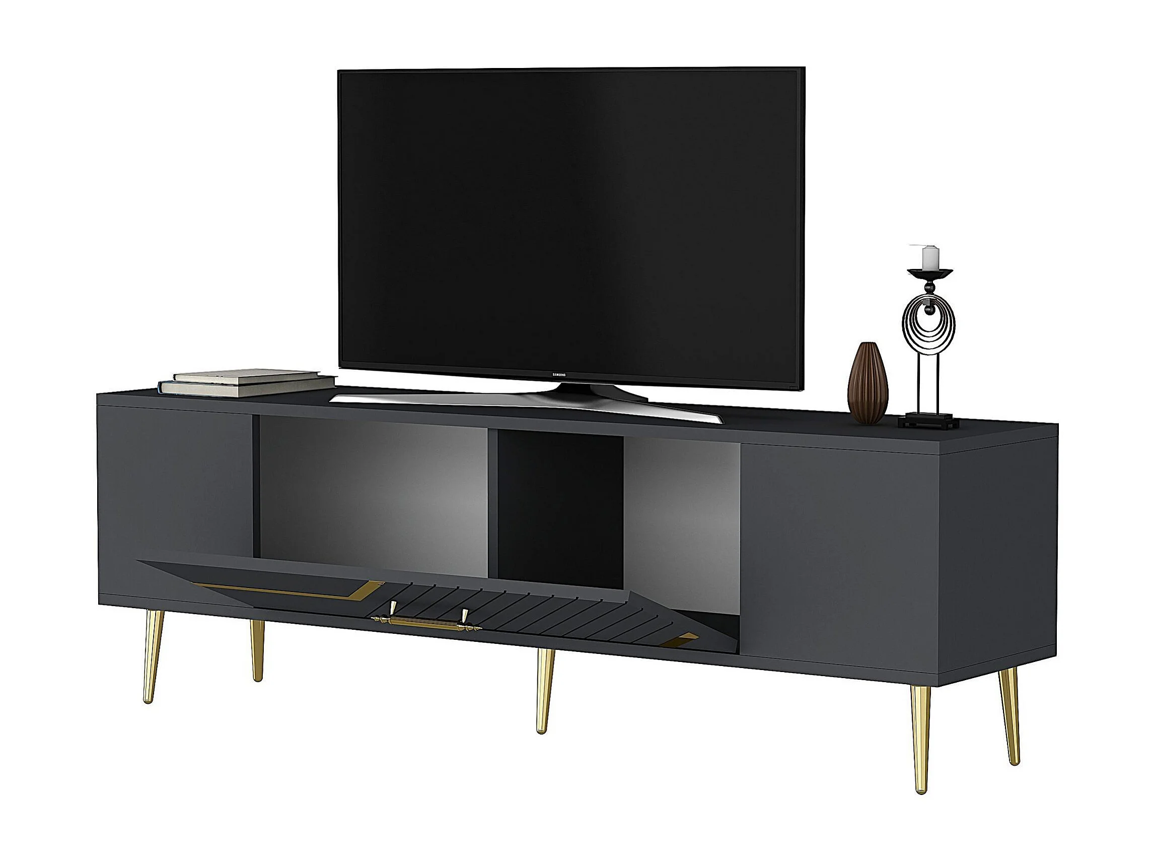 Szafka pod telewizor – 150 cm x 44,6 cm x 29,6 cm – antracyt i złoto – płyta wiórowa pokryta melaminą