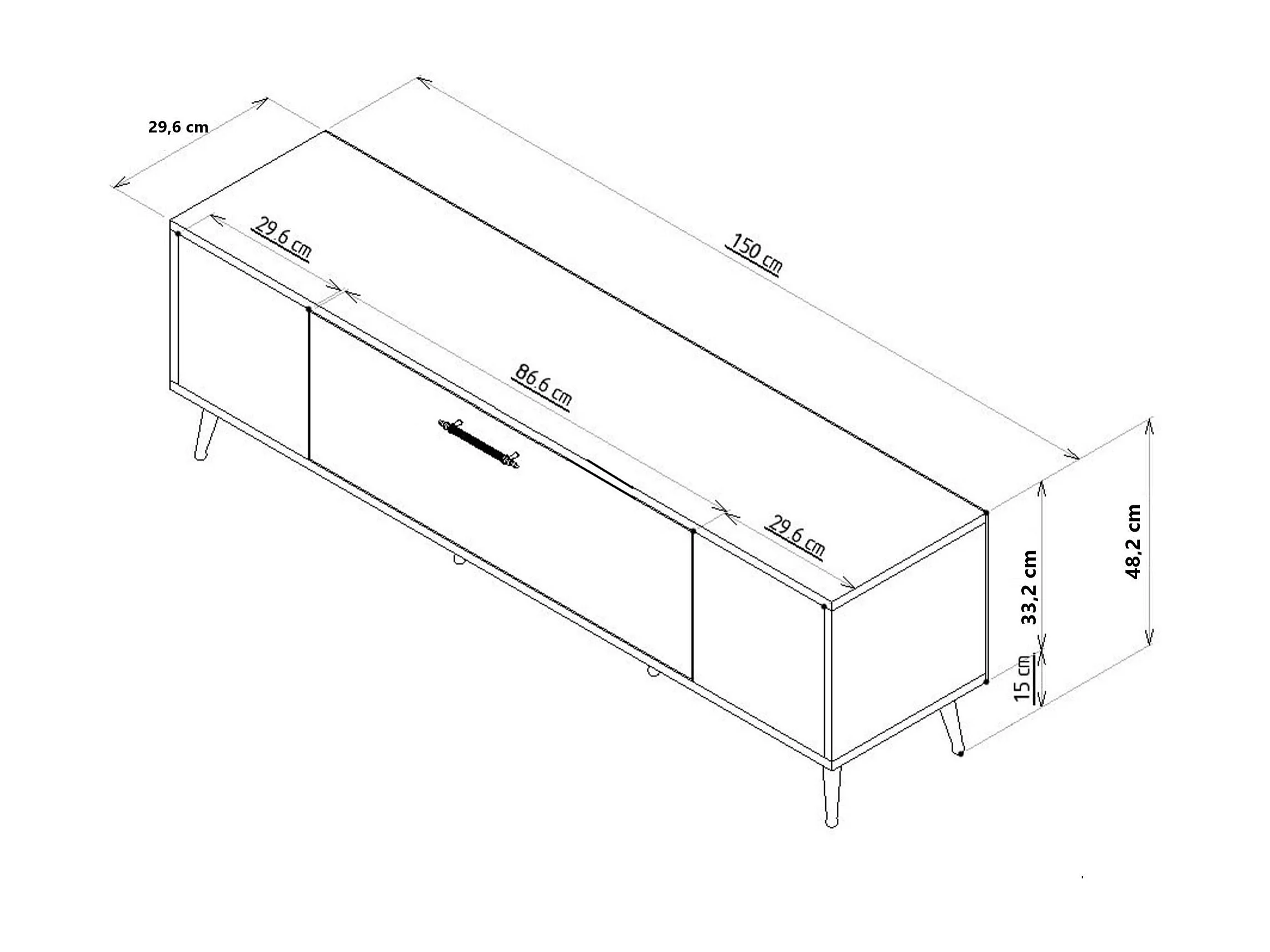 Stojak pod telewizor – 150 cm x 44,6 cm x 29,6 cm – Antracyt i biel – Płyta wiórowa pokryta melaminą