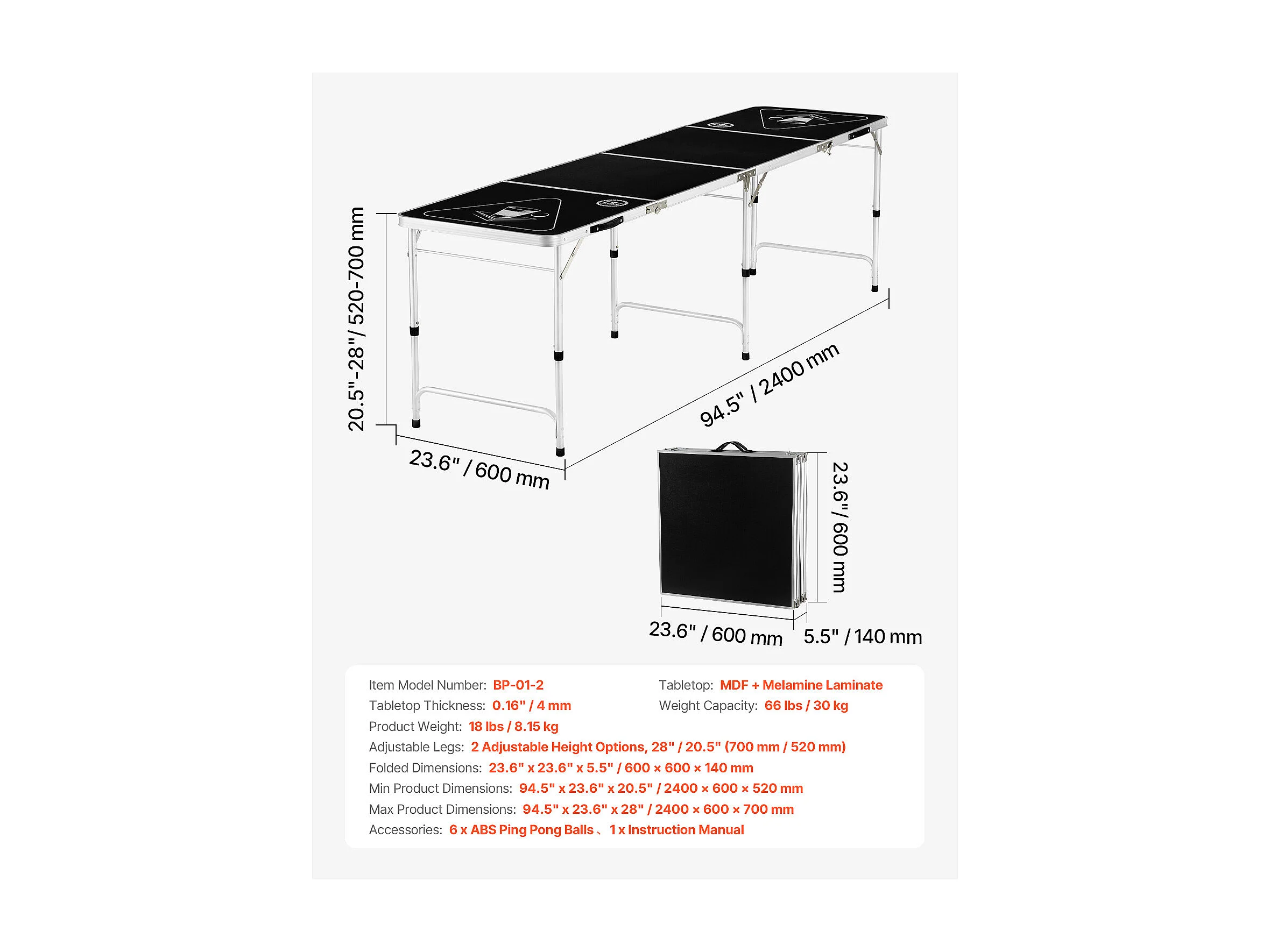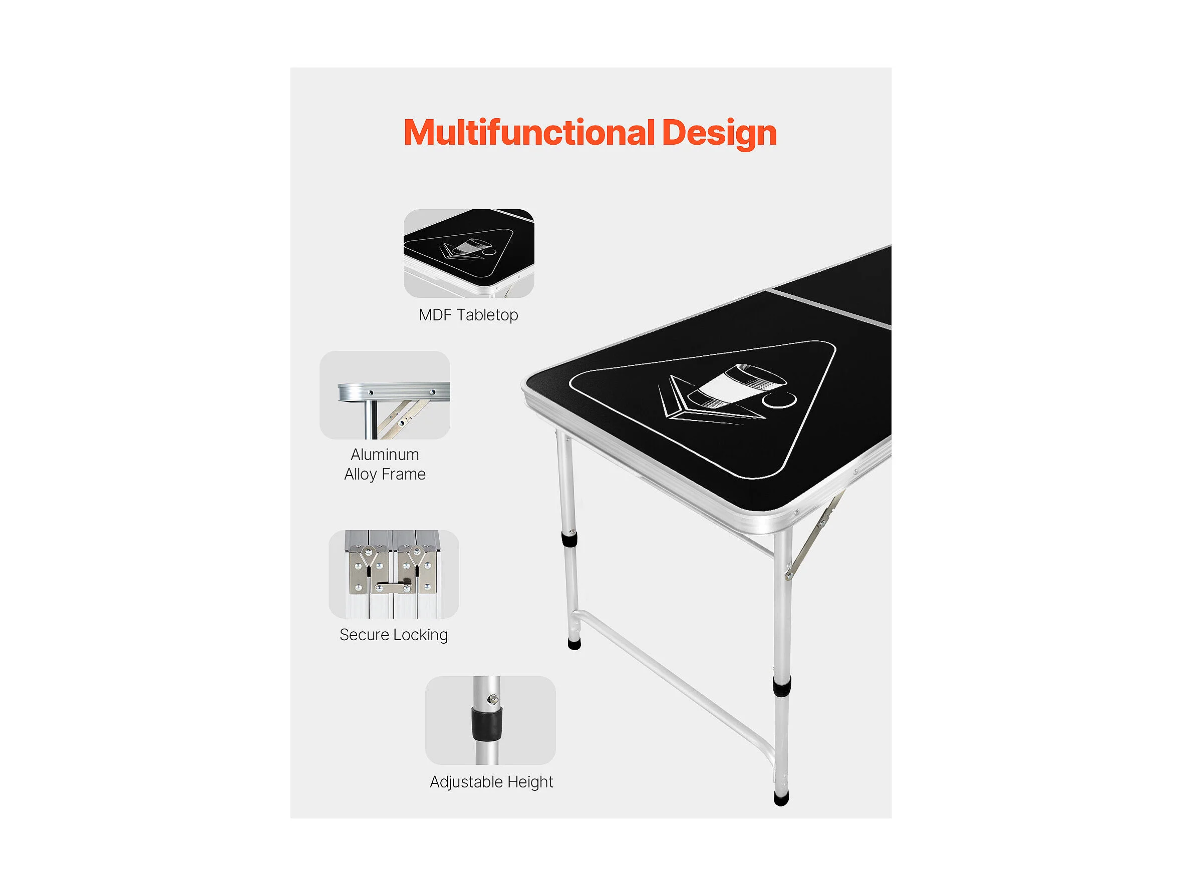 Stół do Beer-Pong Zwijany SucceBuy, 2,4 m, Przenośna Gra na Imprezę z Ręczką, do Biura, na Imprezę, w Podróż i na Kemping